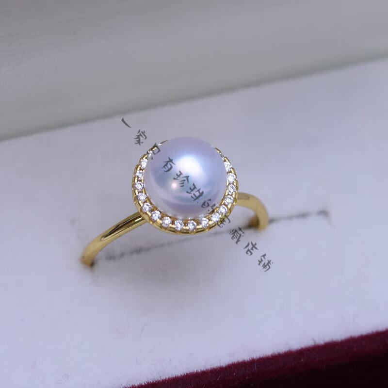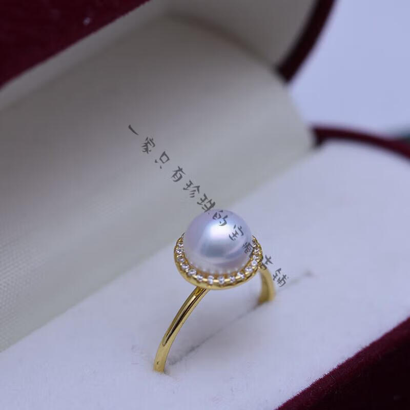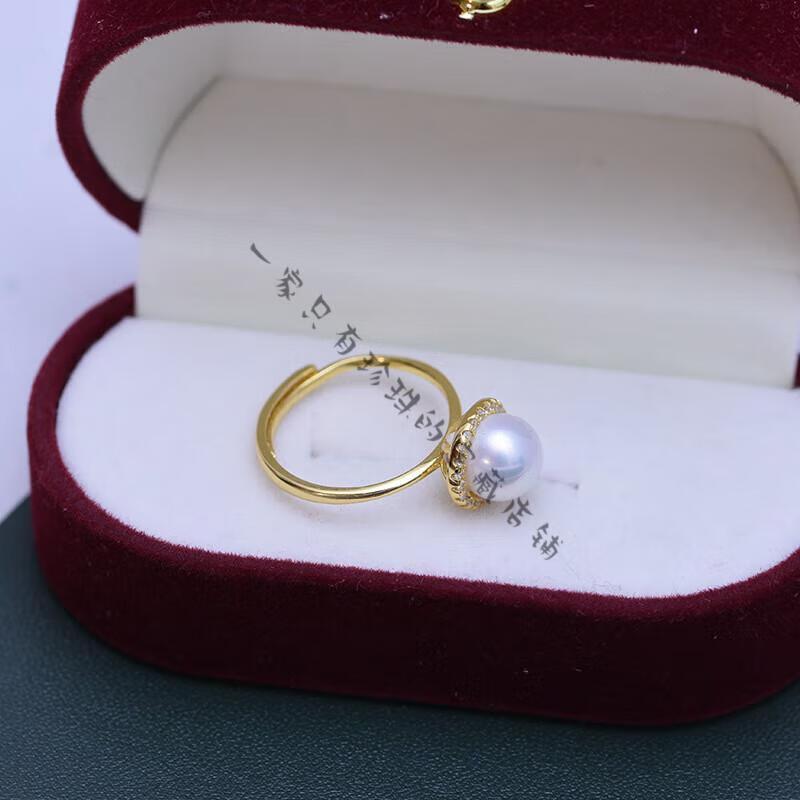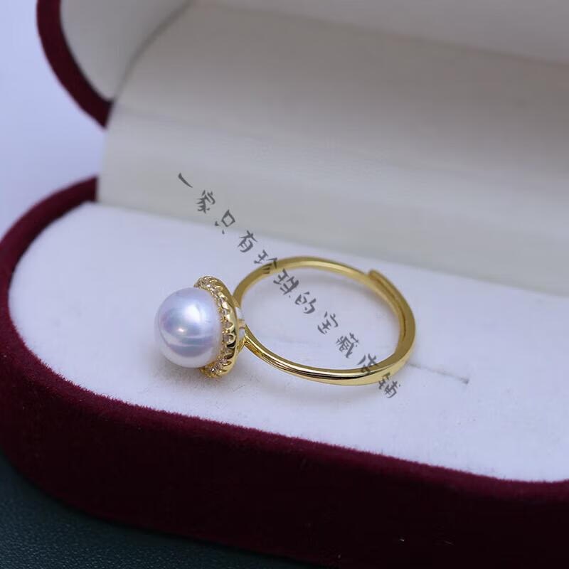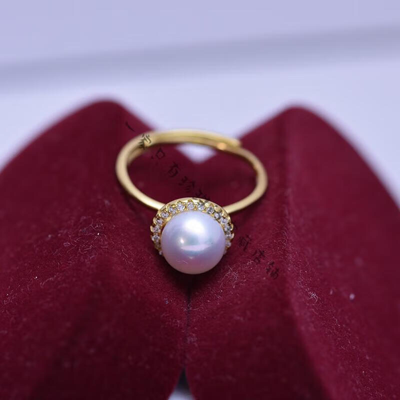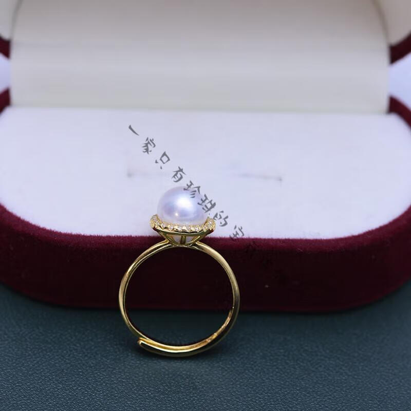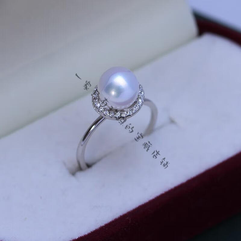 Zhuji natural freshwater pearls, strong light, nearly round beads, almost flawless, S925 silver women's adjustable ring, silver accessories + white pearls, opening adjustable
