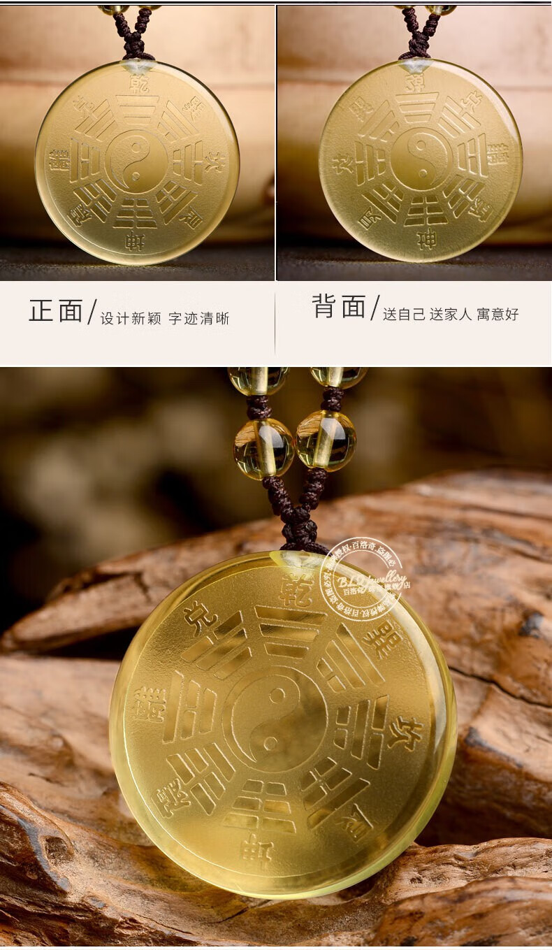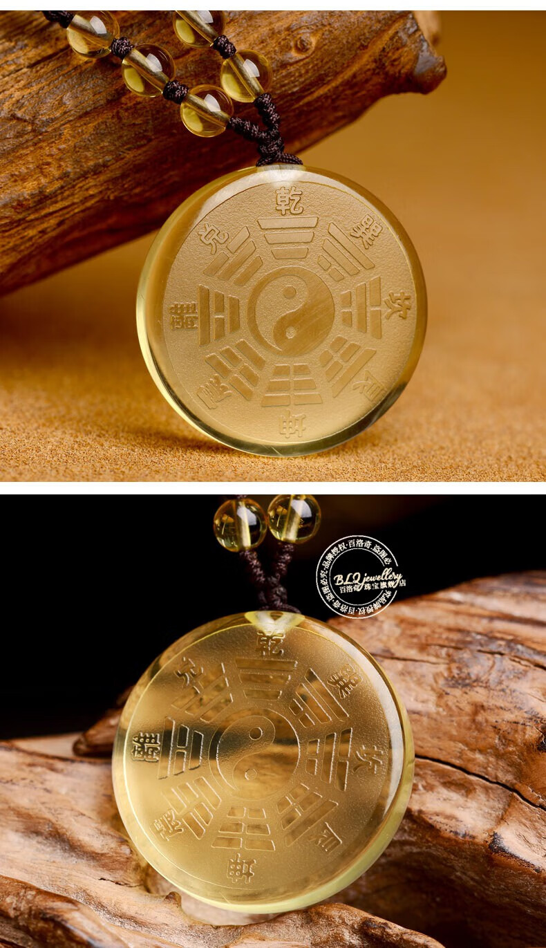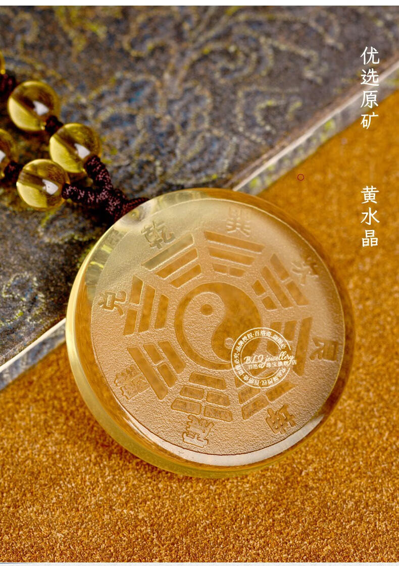 Banach Citrine Yin Yang Five Elements Bagua Pendant Taoist Pendant Amulet Necklace Jewelry Citrine Bagua Chain