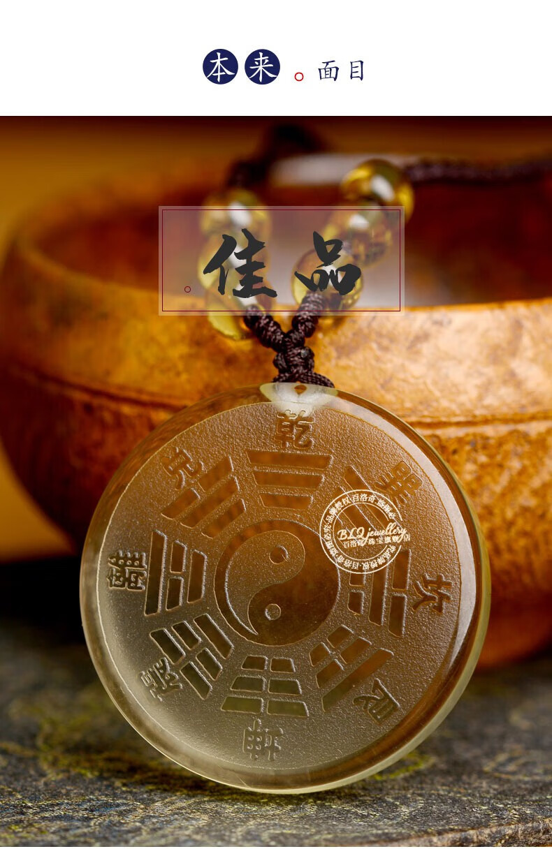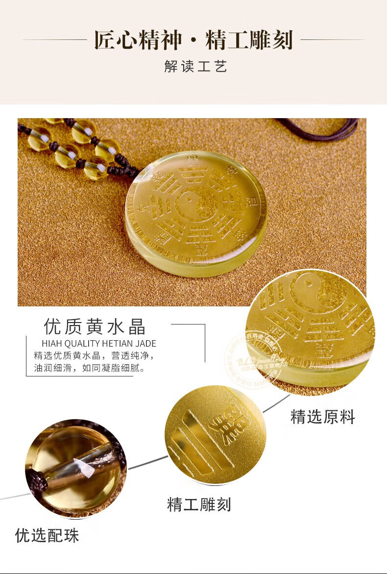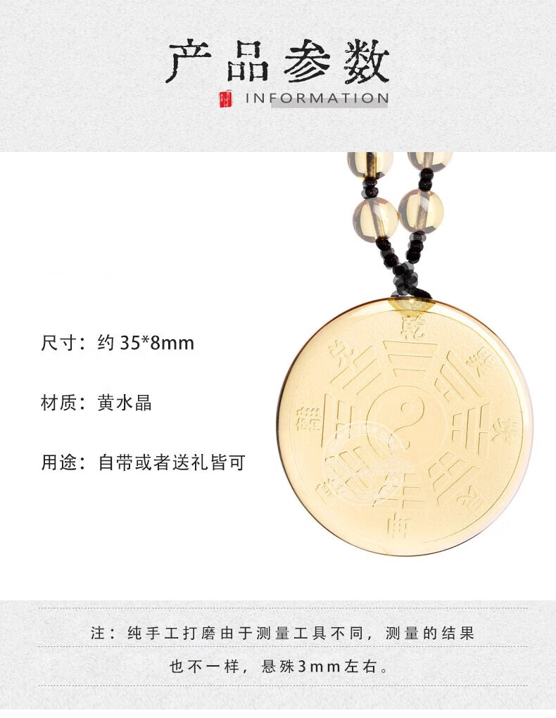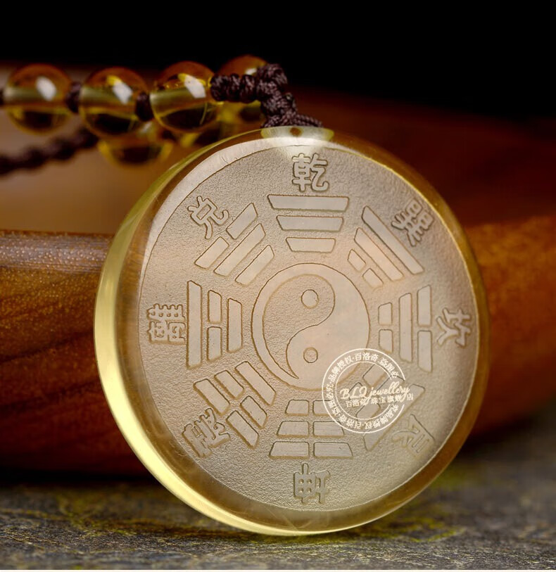 Banach Citrine Yin Yang Five Elements Bagua Pendant Taoist Pendant Amulet Necklace Jewelry Citrine Bagua Chain
