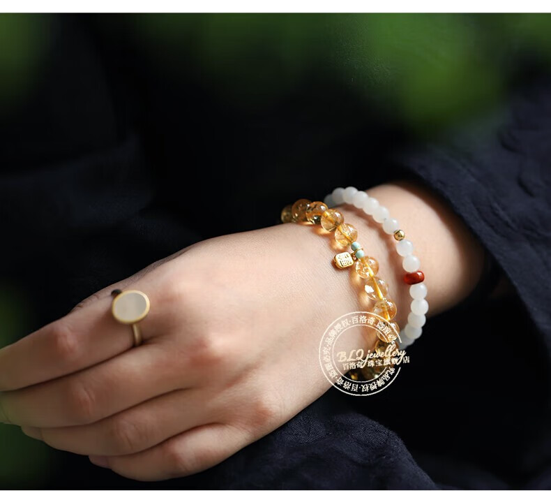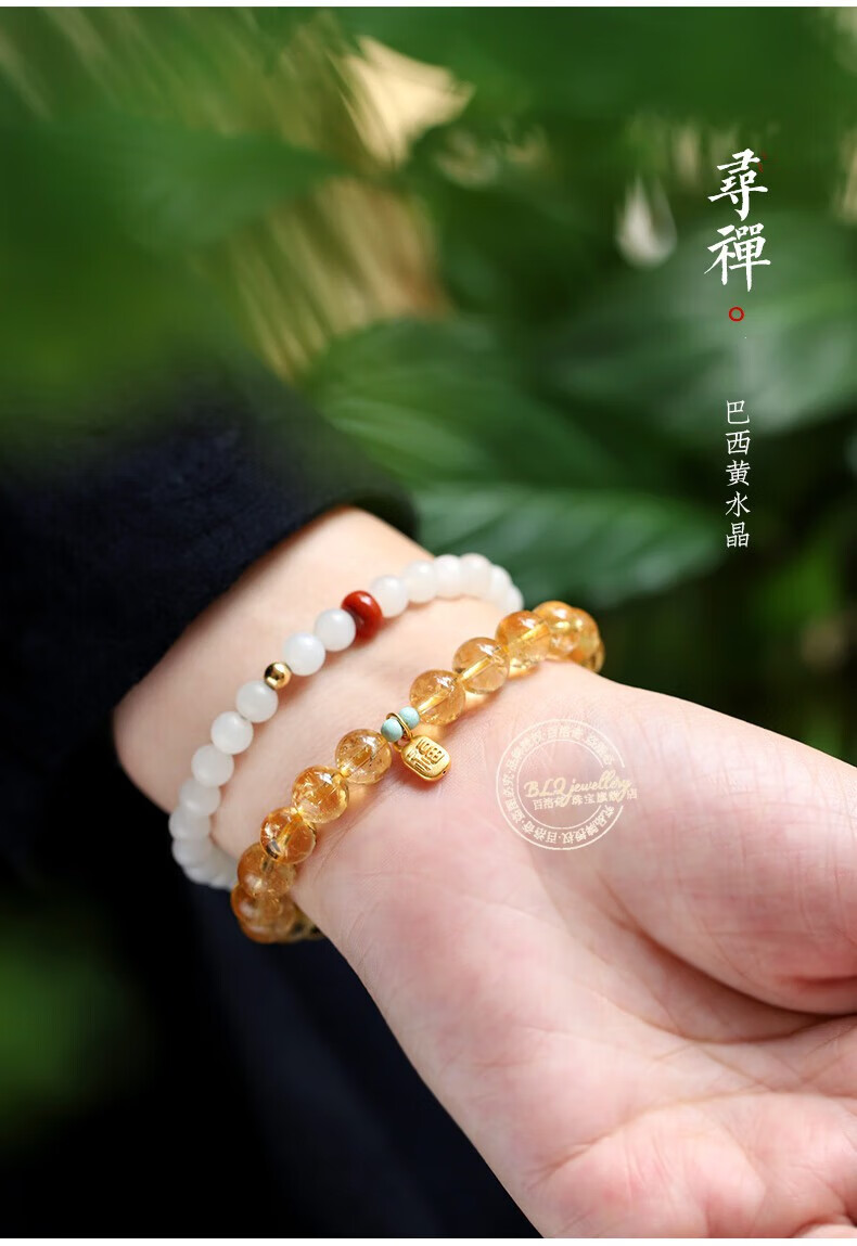 Banach Zenyuan Citrine Bracelet Women's 999 Gold Fortune Tag Bracelet Citrine Beads 8mm