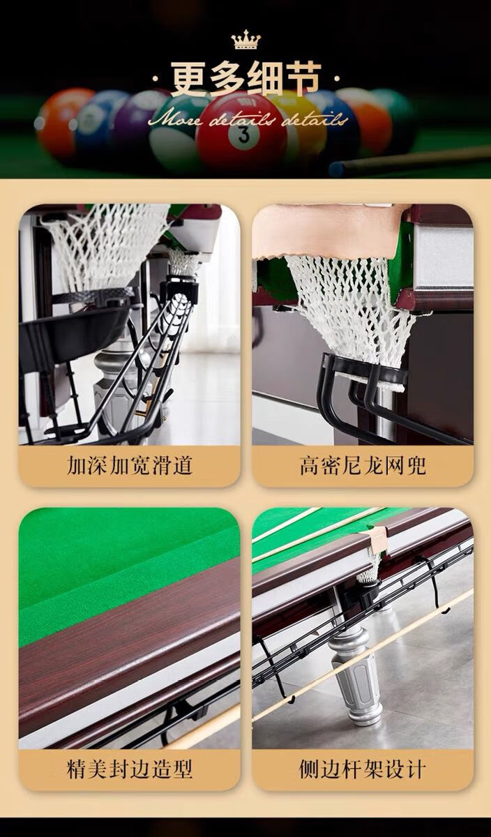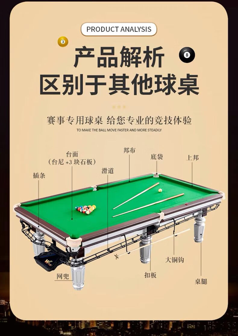 Commercial Qiao style billiard table standard adult household indoor steel warehouse flat slate Chinese style wood warehouse black eight billiard table 9 feet - commercial table C type 1.2 steel warehouse bluestone complete set free delivery