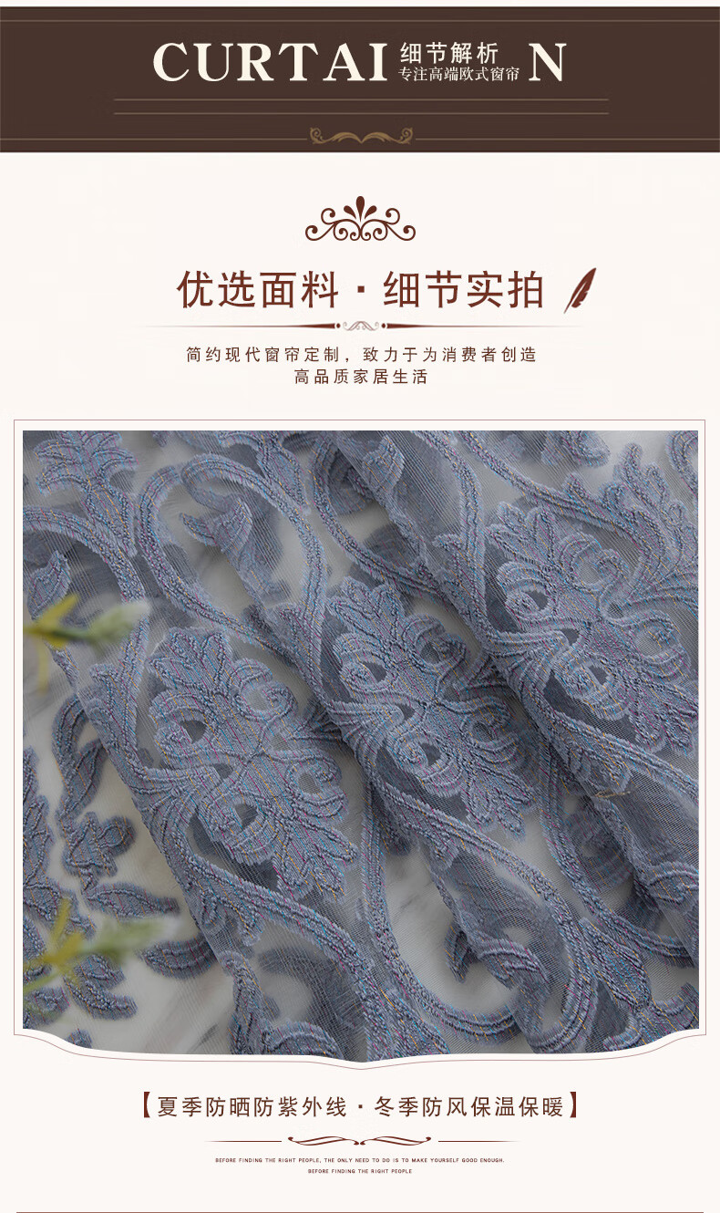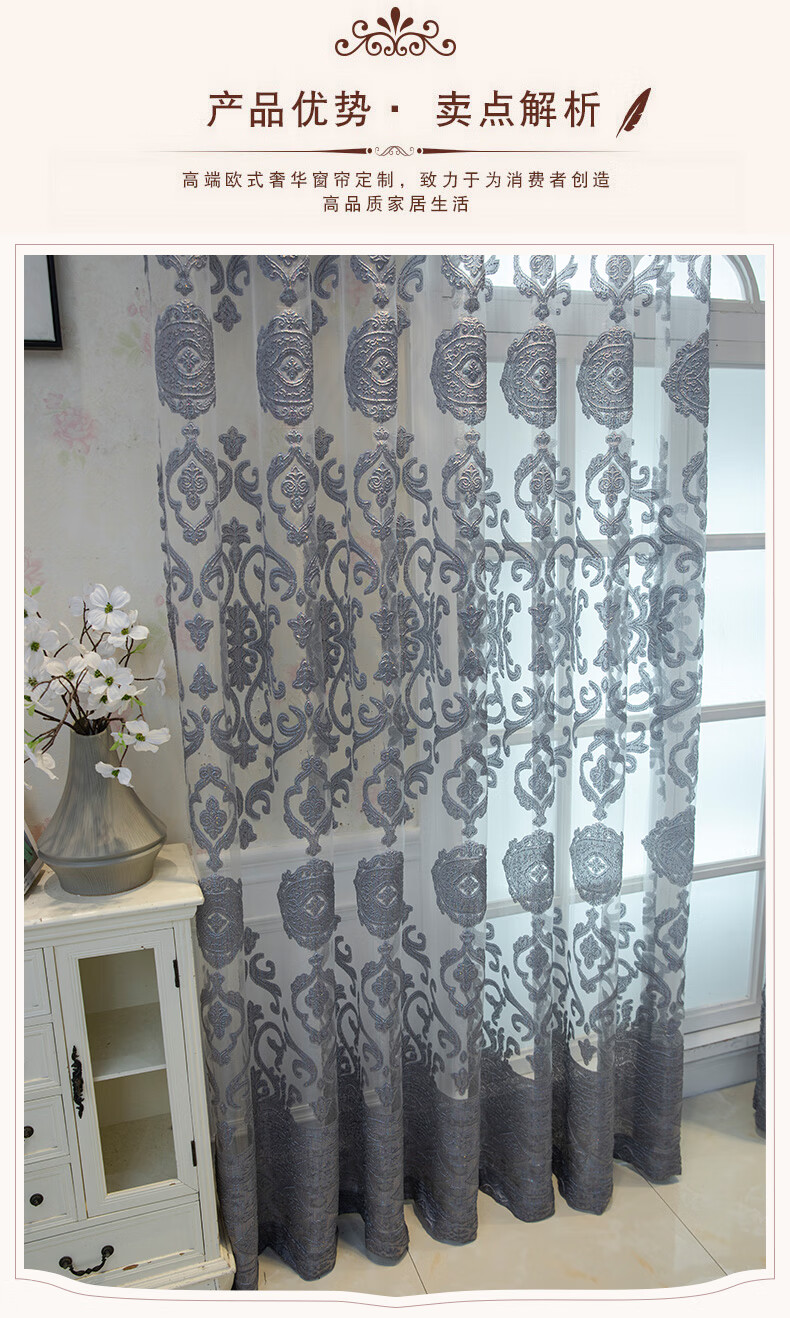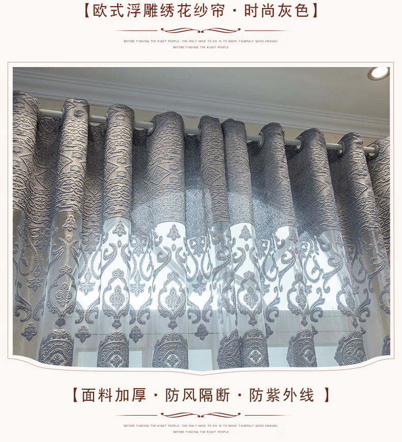 European high-end luxury window screen living room balcony sunshade and sunscreen gauze curtain bedroom blackout window screen light-proof and opaque Gray Years-Hook Width 30 Height 20 pieces