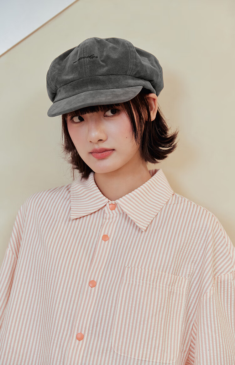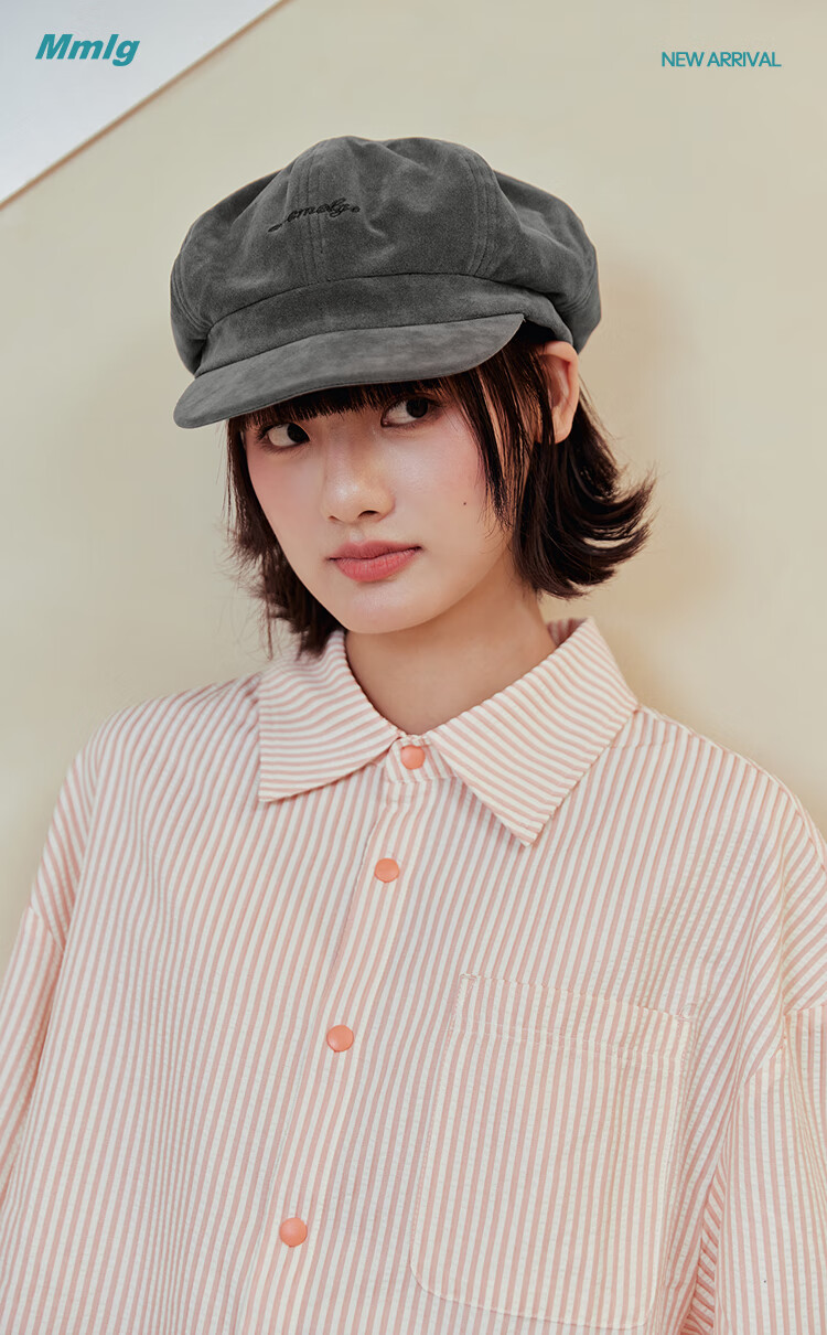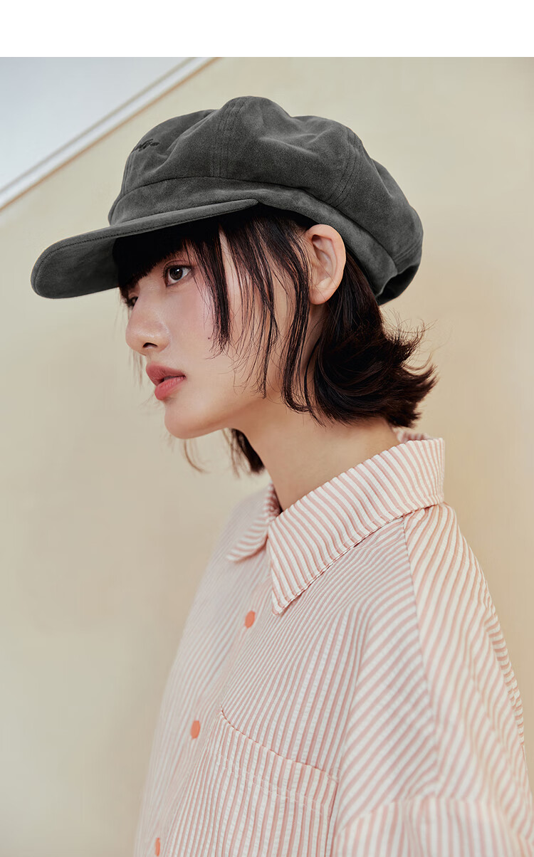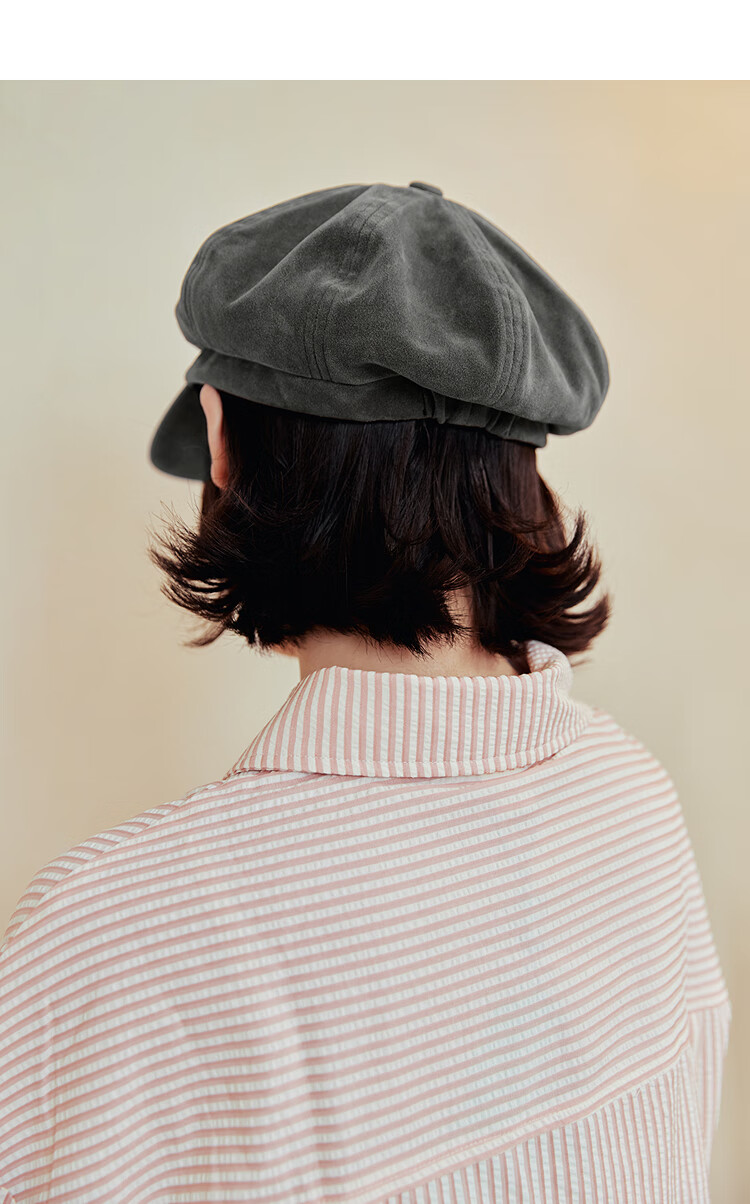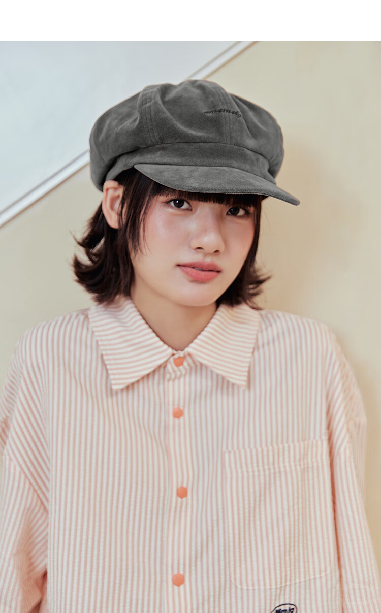 Mmlg British Bailey Hat 2026 New Retro Washed Duck Bill Octagonal Hat Korean Versatile Face-Showing Little Couple Hat Black Gray One Size