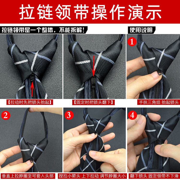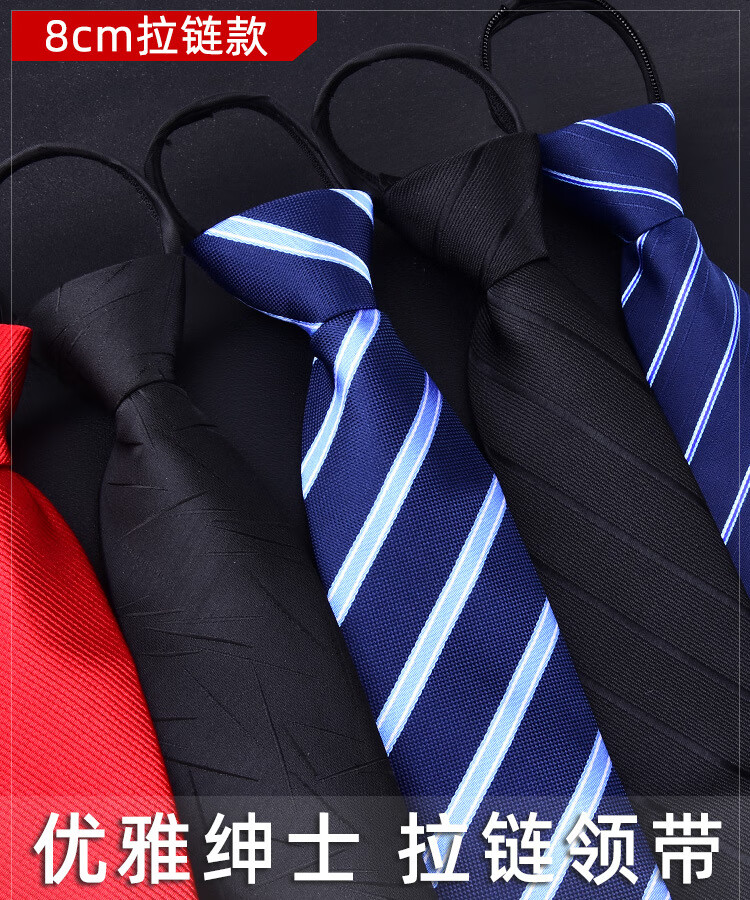 Shuye tie for men, knot-free zipper, easy-to-pull workplace tie, business suit, wedding groom, best man, lazy man, knot-free tie, glossy black