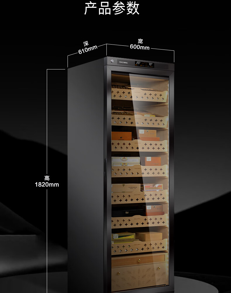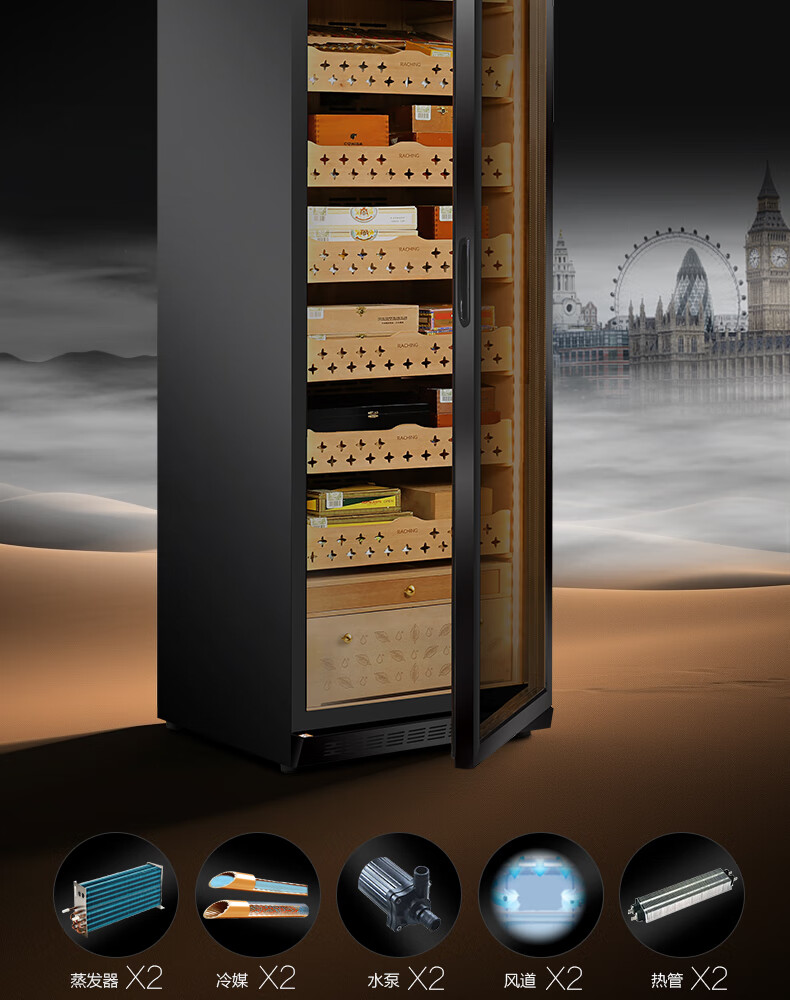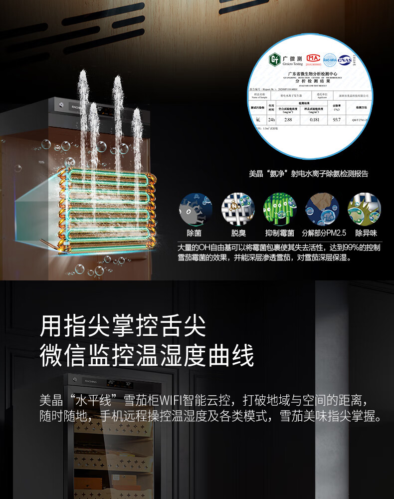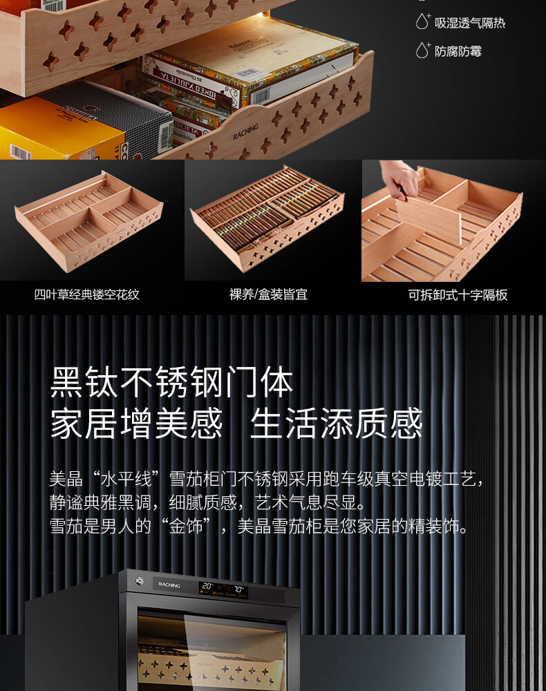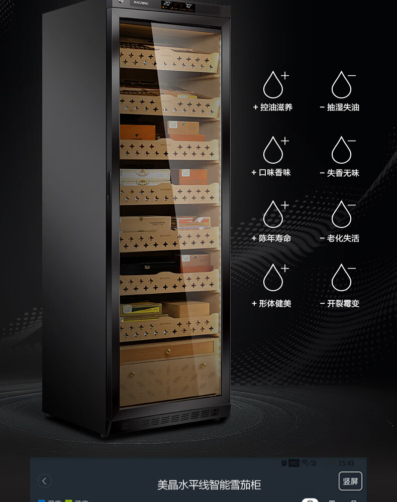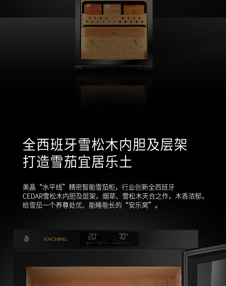 Meijing (raching) MON3800A WIFI smart solid wood horizontal line constant temperature constant temperature cigar cabinet temperature control humidity cigar humidifier home burl gold (Spanish cedar wood shelf) + ammonia net 380L