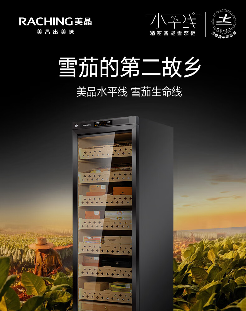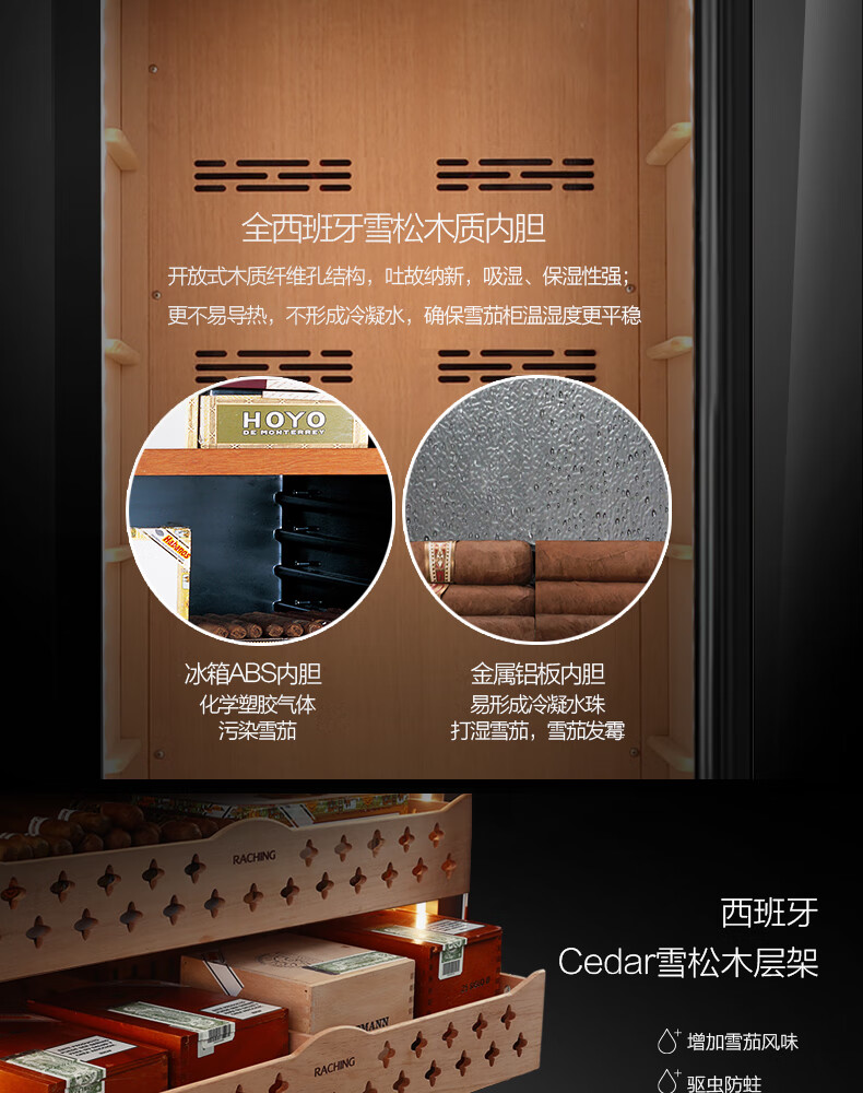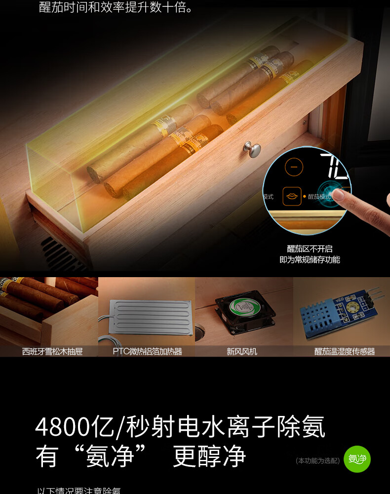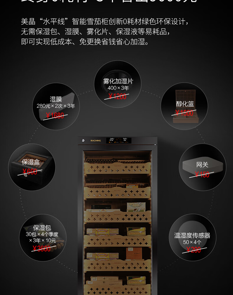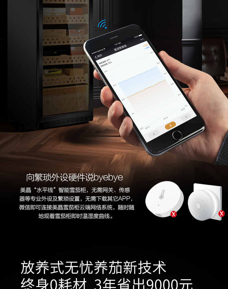 Meijing (raching) MON3800A WIFI smart solid wood horizontal line constant temperature constant temperature cigar cabinet temperature control humidity cigar humidifier home burl gold (Spanish cedar wood shelf) + ammonia net 380L