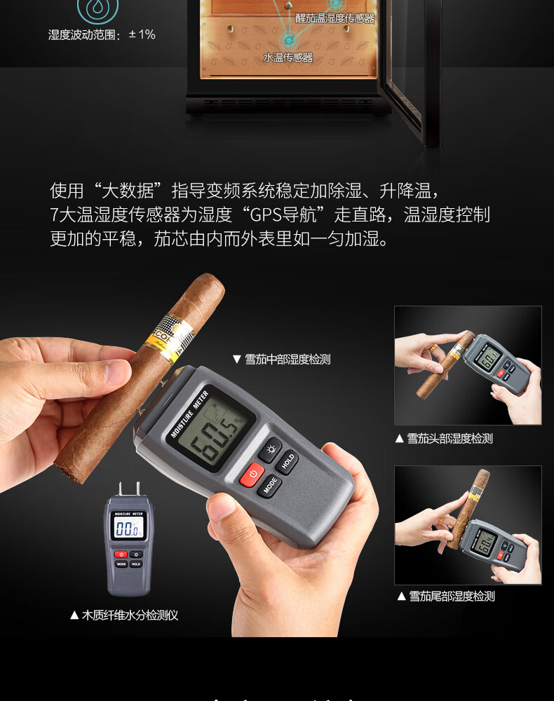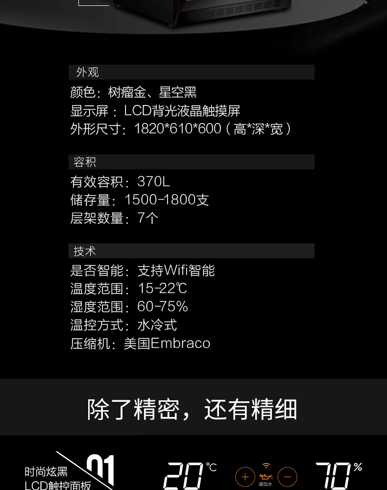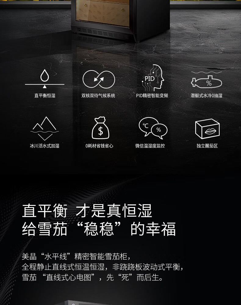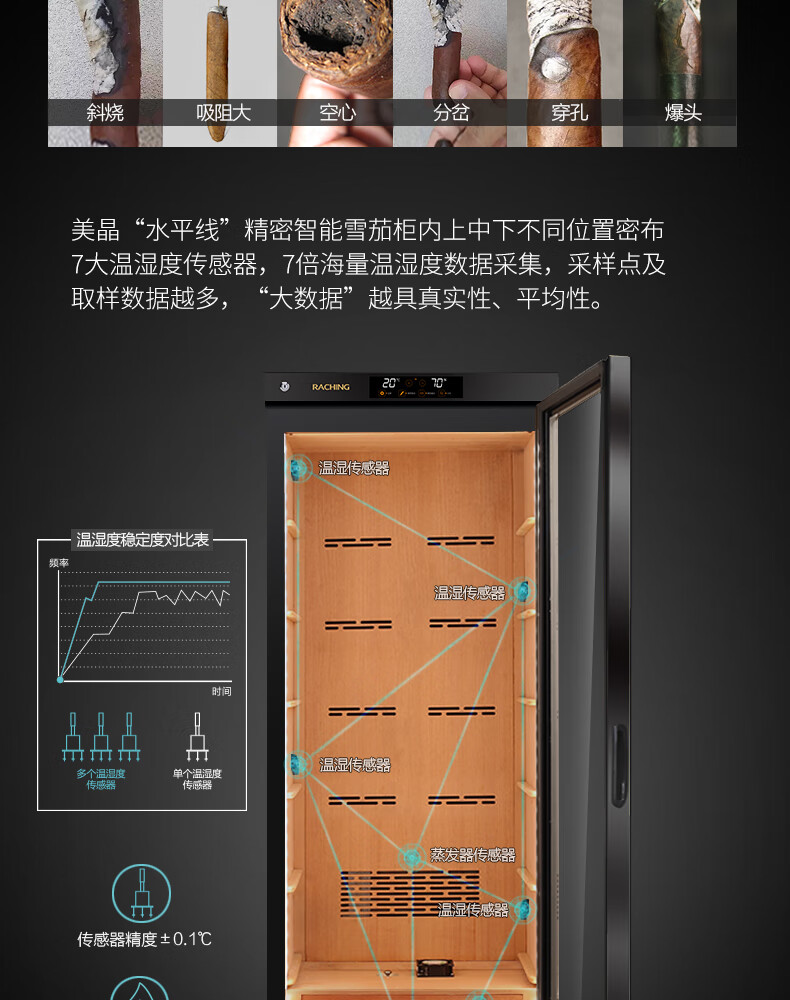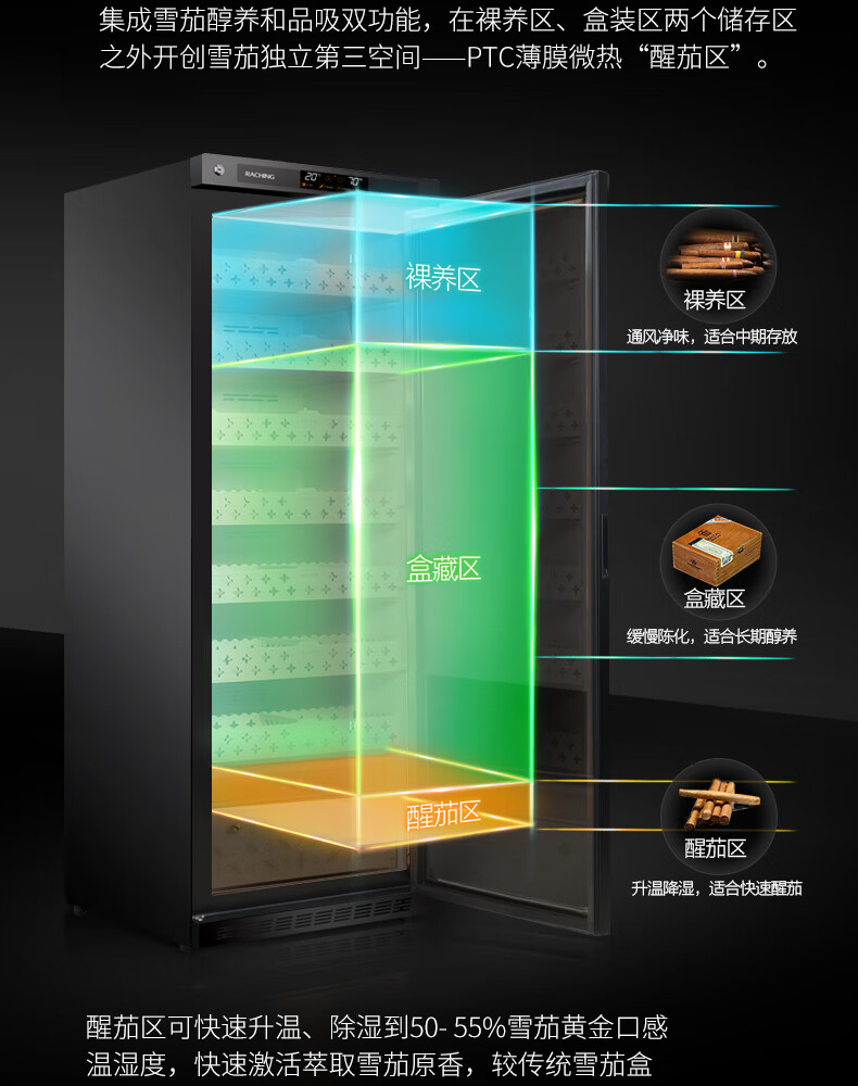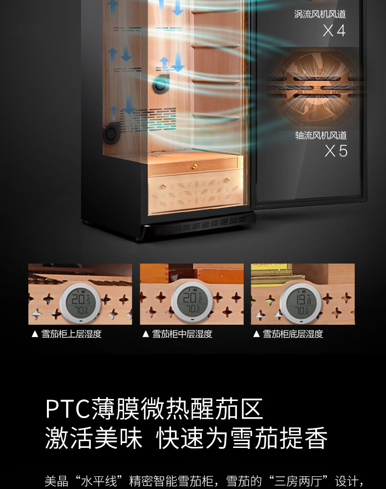 Meijing (raching) MON3800A WIFI smart solid wood horizontal line constant temperature constant temperature cigar cabinet temperature control humidity cigar humidifier home burl gold (Spanish cedar wood shelf) + ammonia net 380L