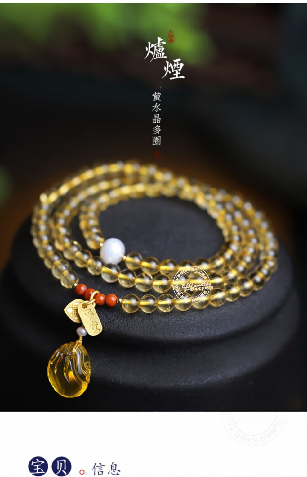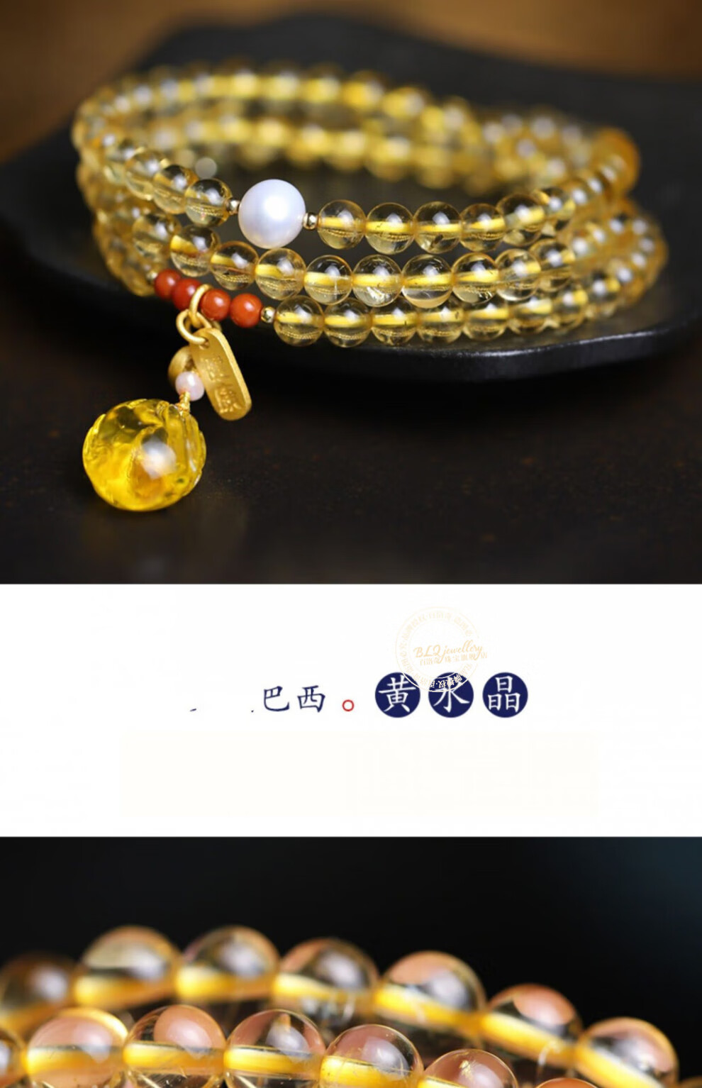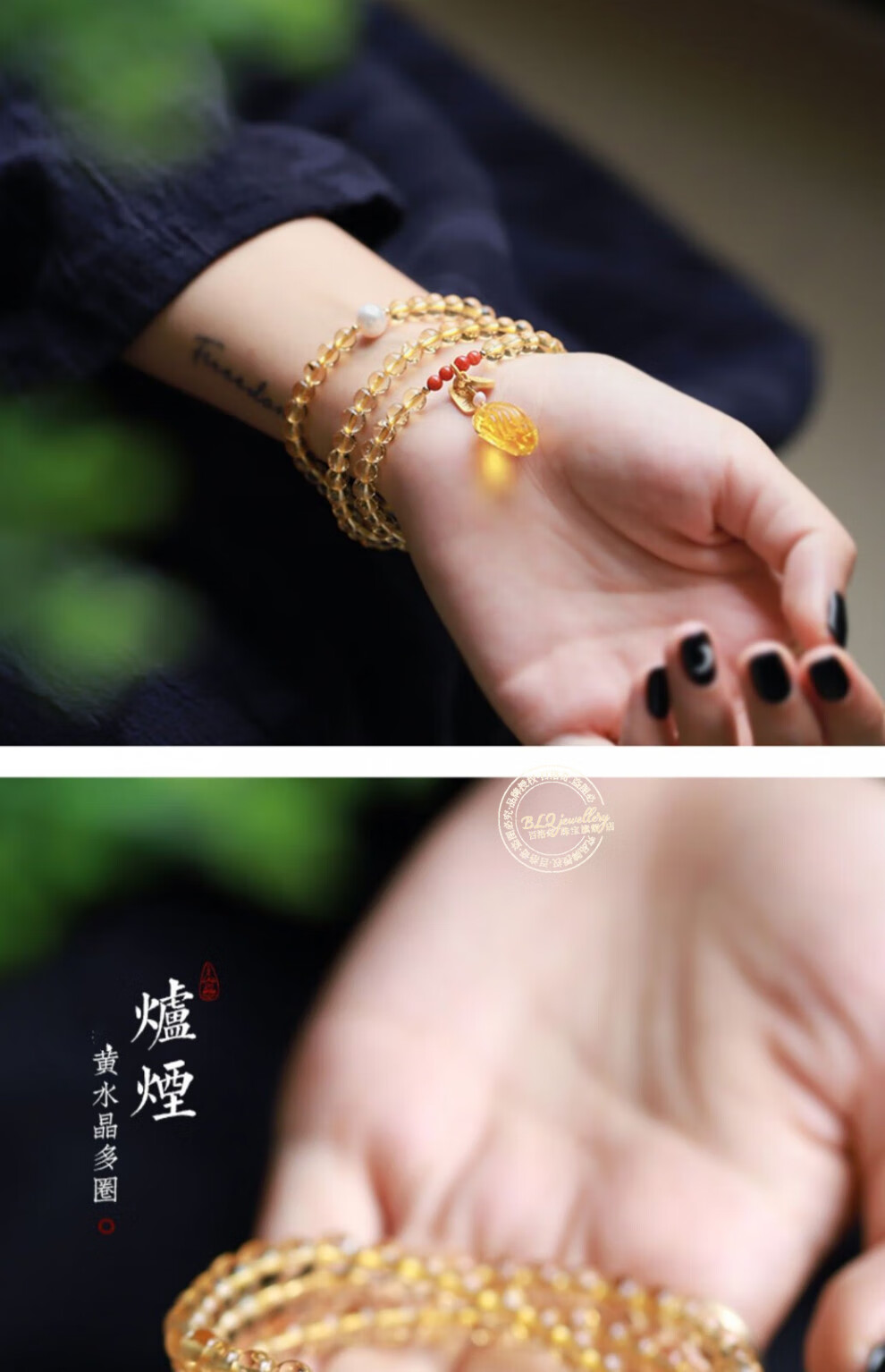 Banach Pure Body Citrine Bracelet 108 beads multi-circle money bag gift for women beads 6mm three-circle