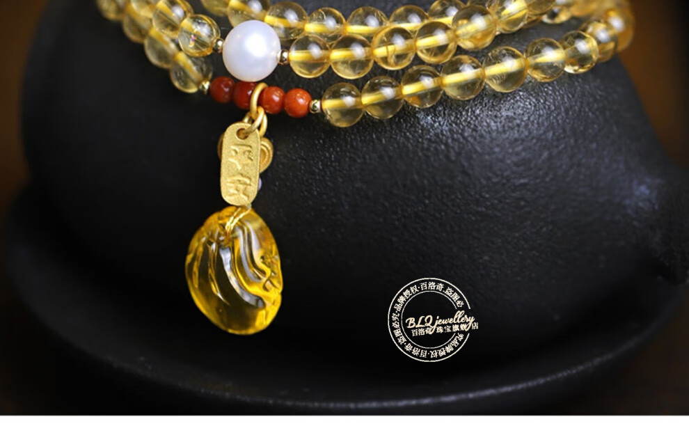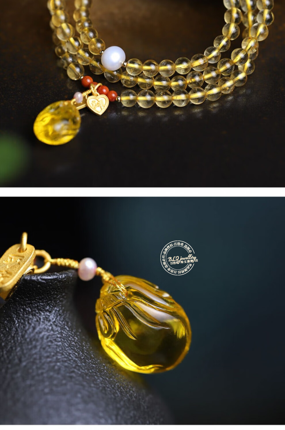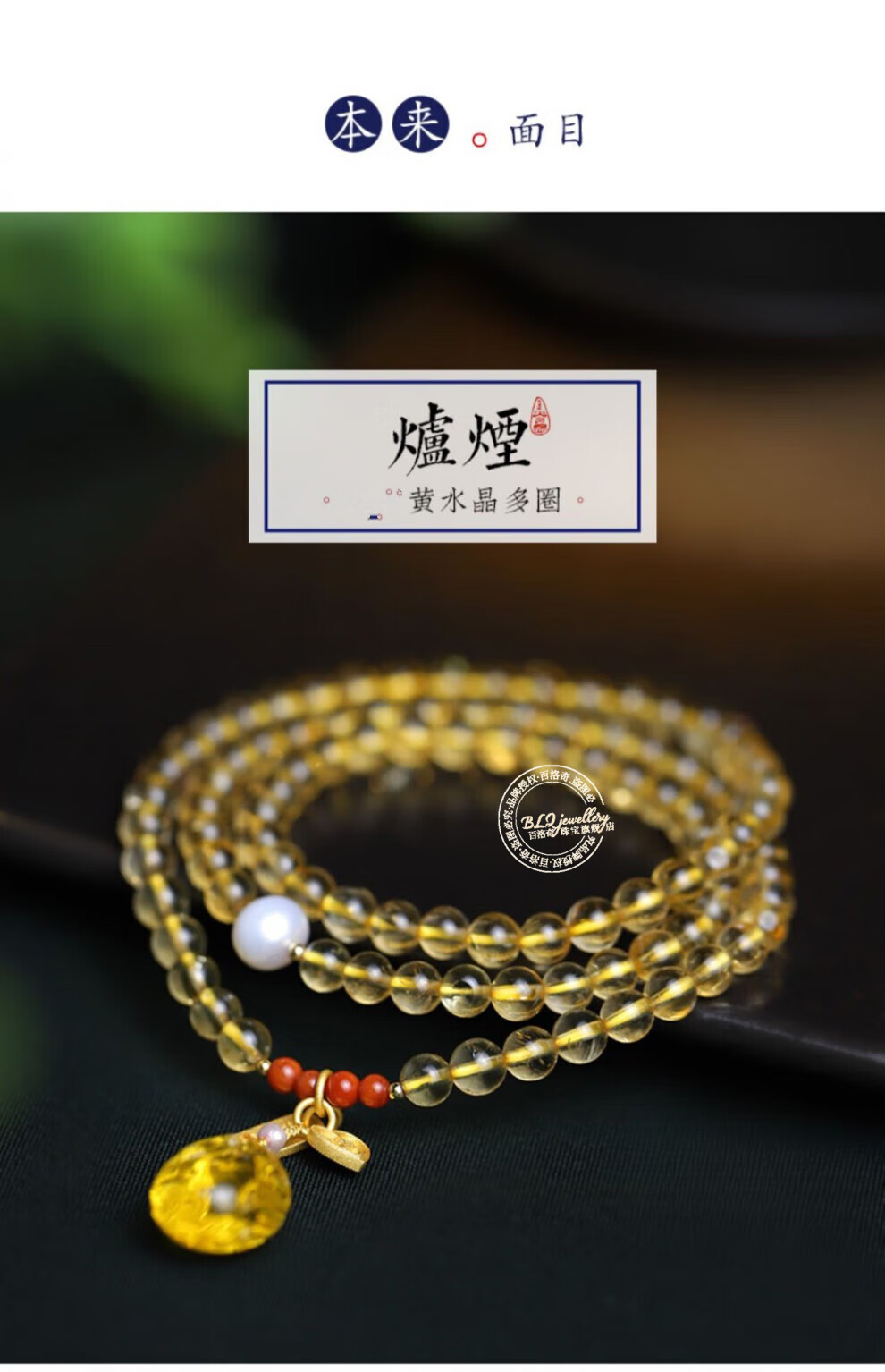 Banach Pure Body Citrine Bracelet 108 beads multi-circle money bag gift for women beads 6mm three-circle