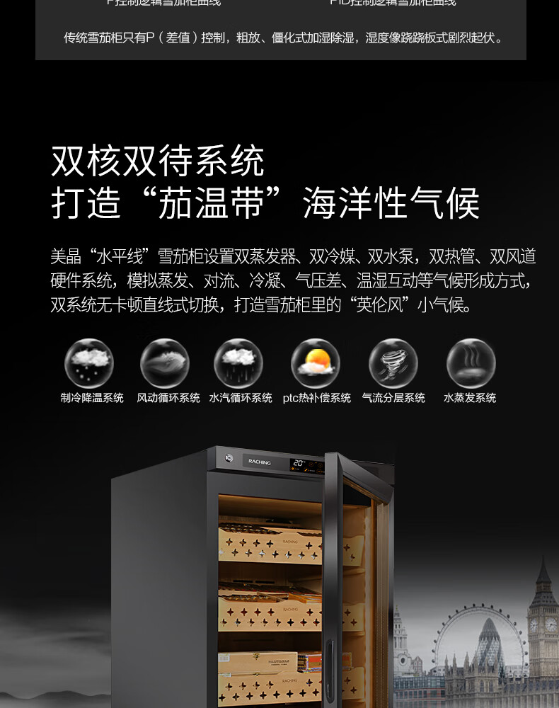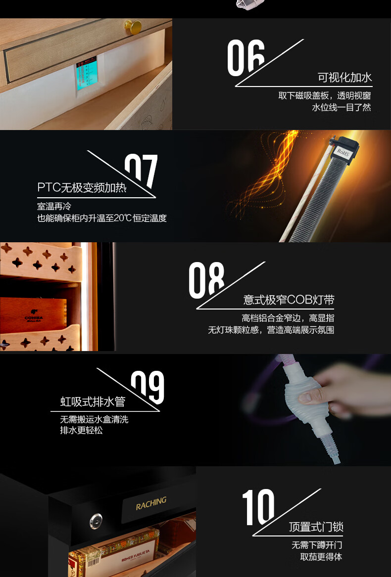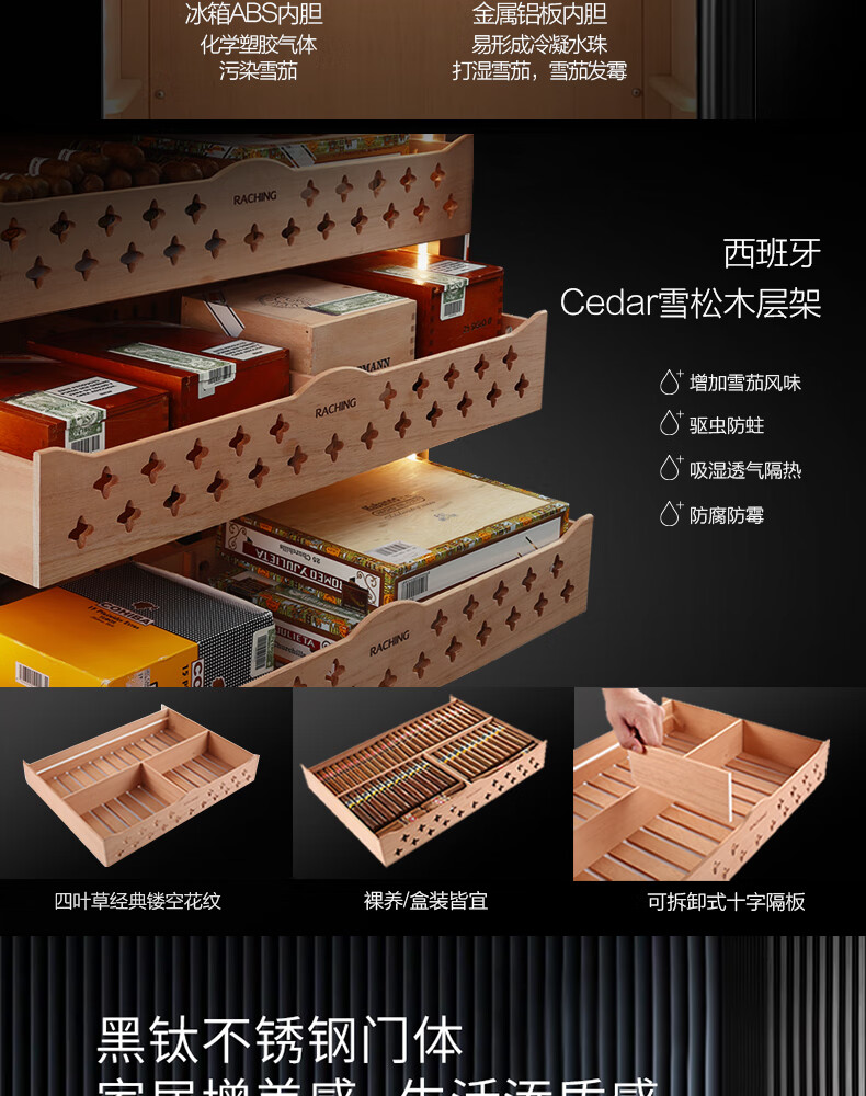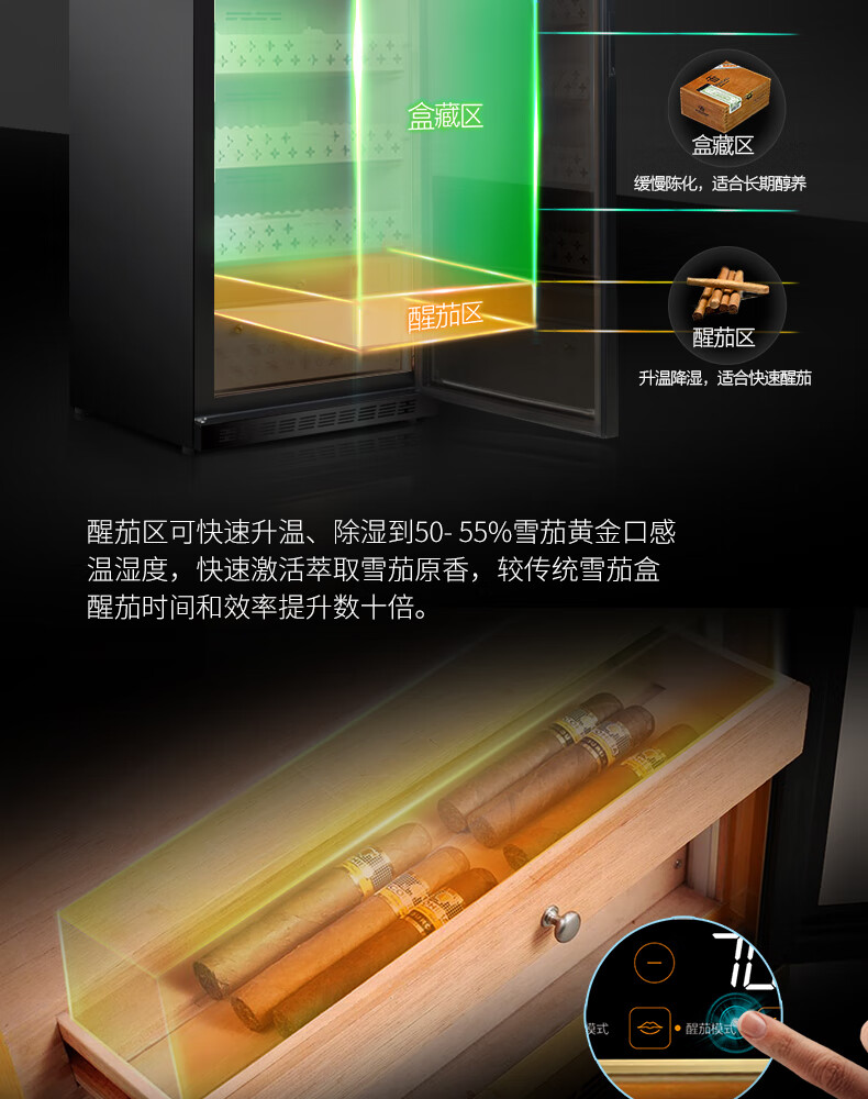 Meijing (raching) MON1800A WIFI smart solid wood horizontal line constant temperature constant temperature cigar cabinet temperature control humidity cigar humidifier home burl gold (Spanish cedar wood shelf) + ammonia net 230L