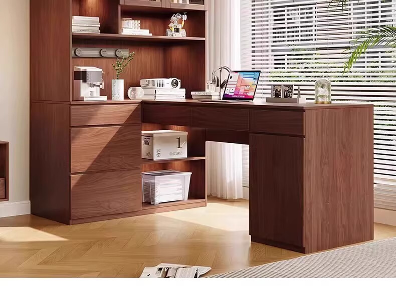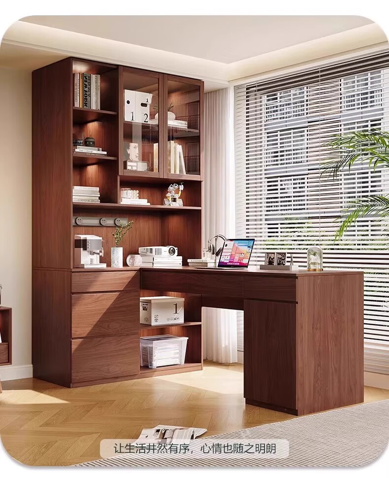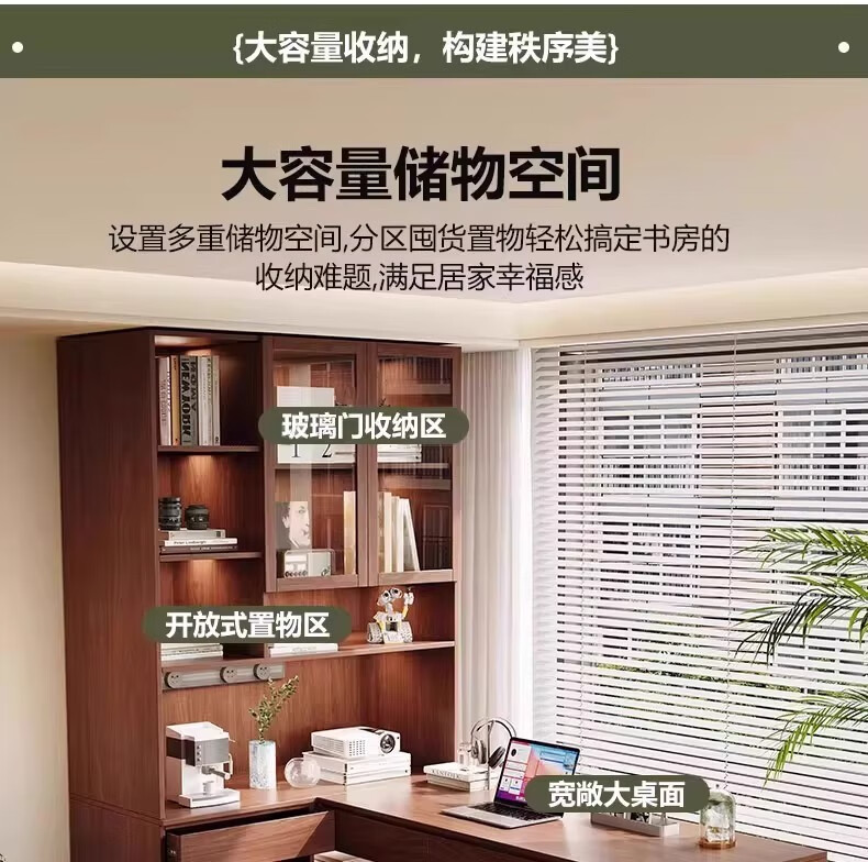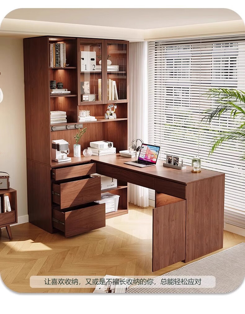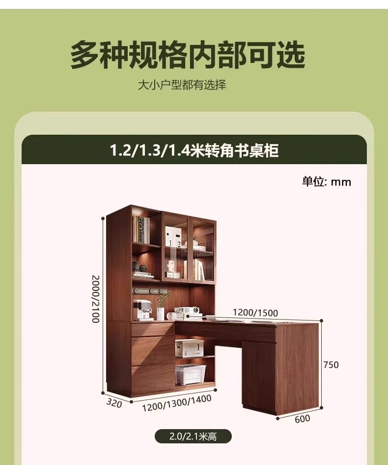 Aluminum alloy corner desk bookcase integrated floor-standing side storage student home living room bedroom desk customization 1.2*1.5*2.1 corner desk cabinet