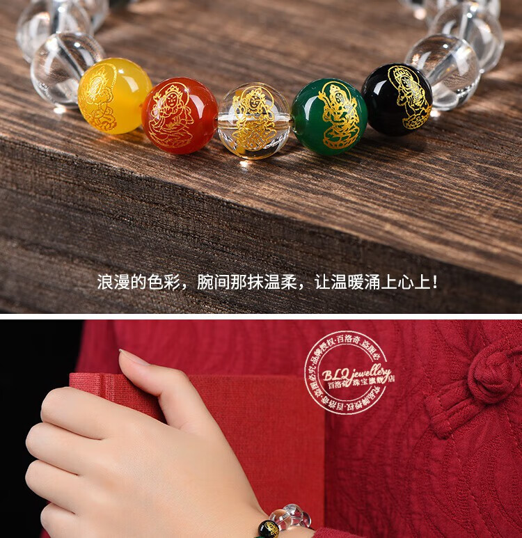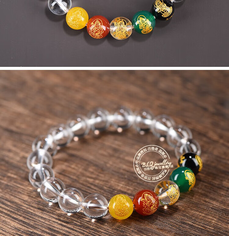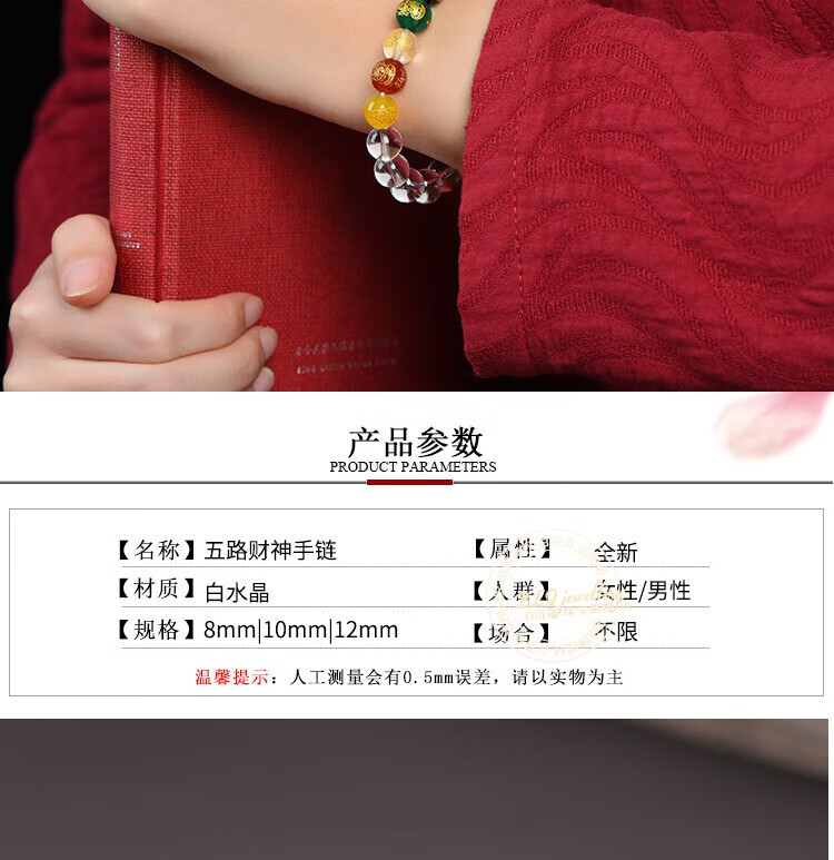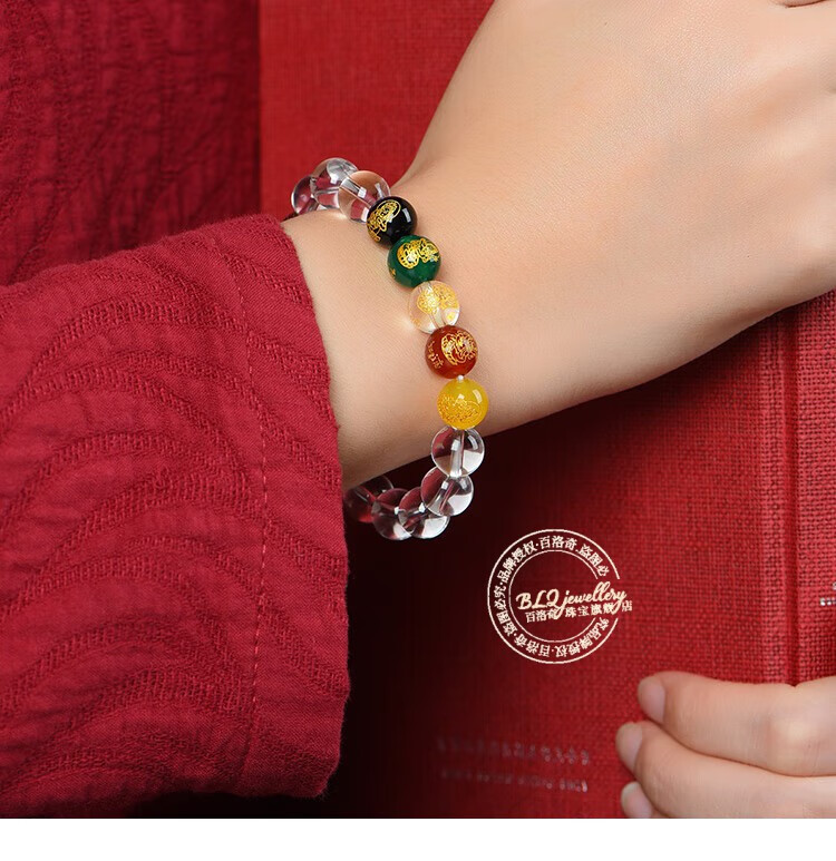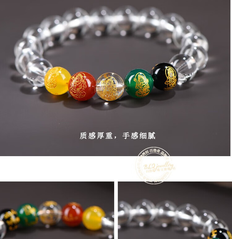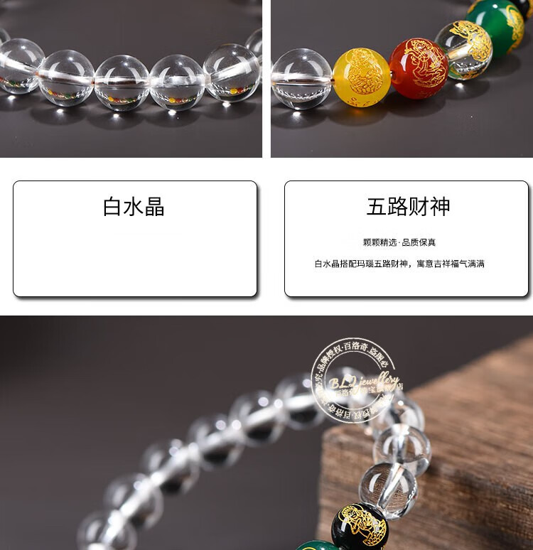Banach white crystal bracelet for women, five-way wealth god white crystal bracelet for men, white crystal beads 14mm