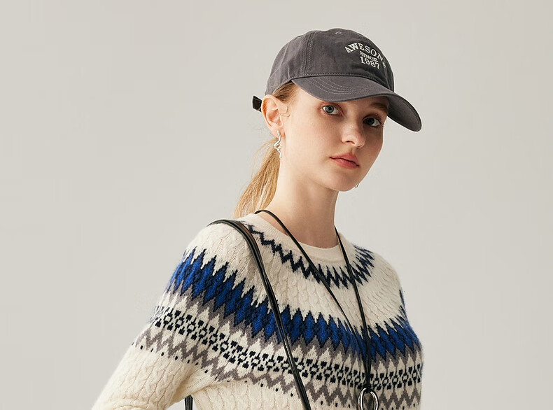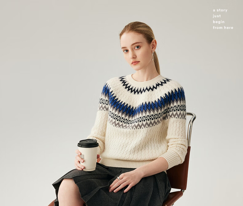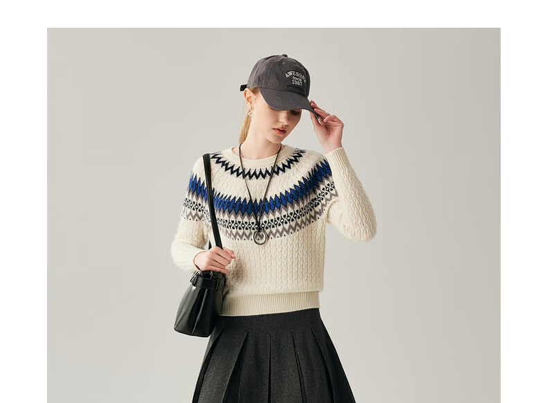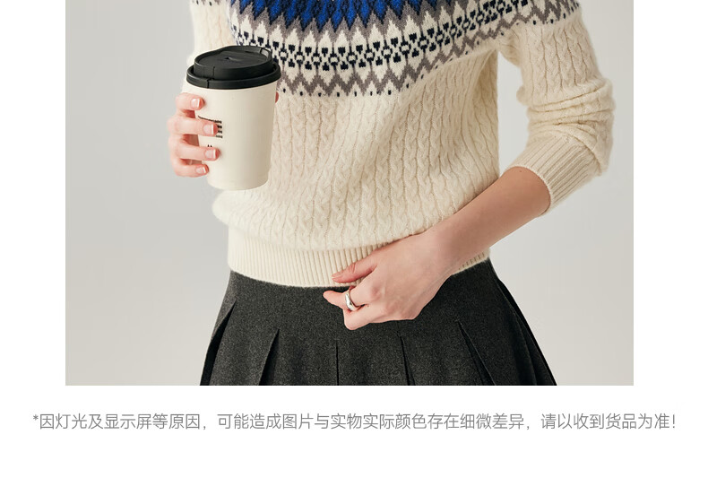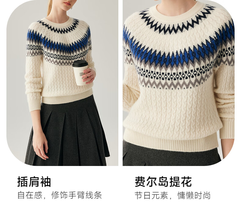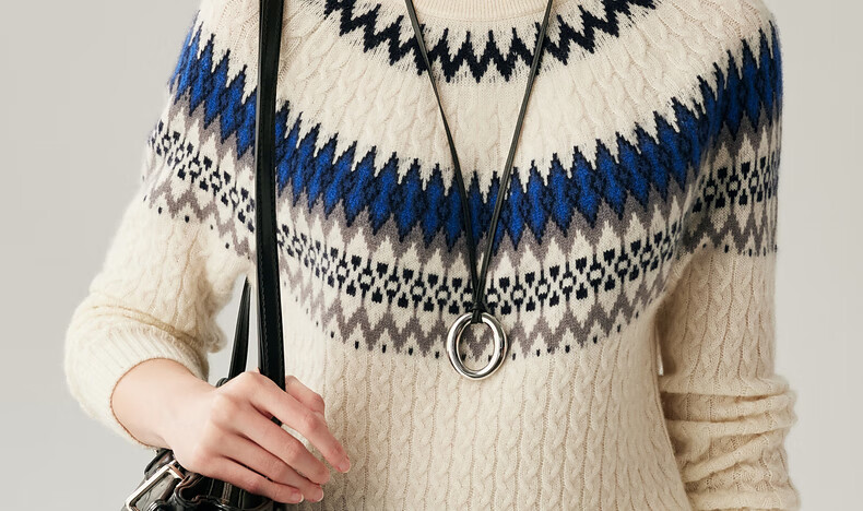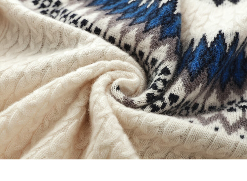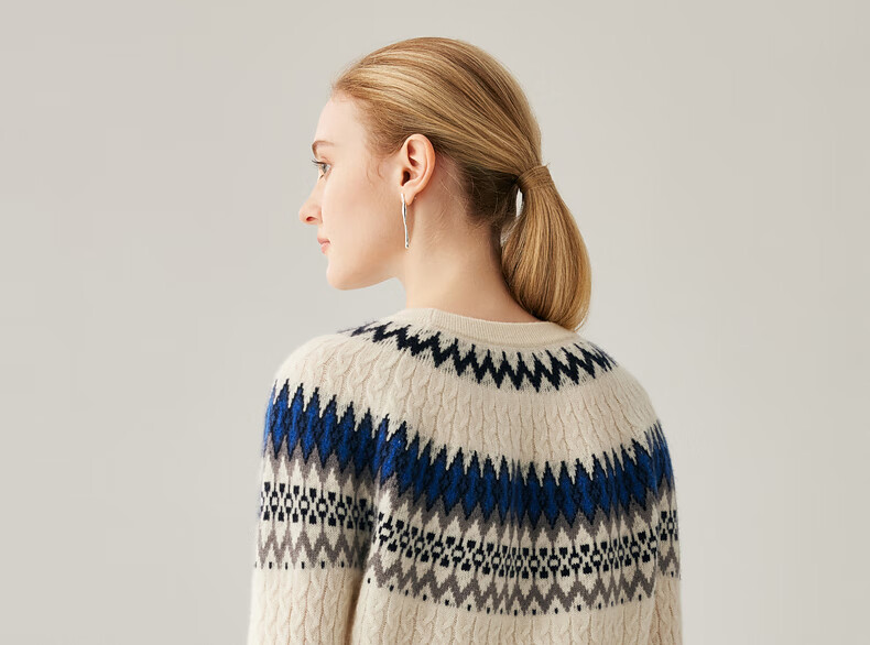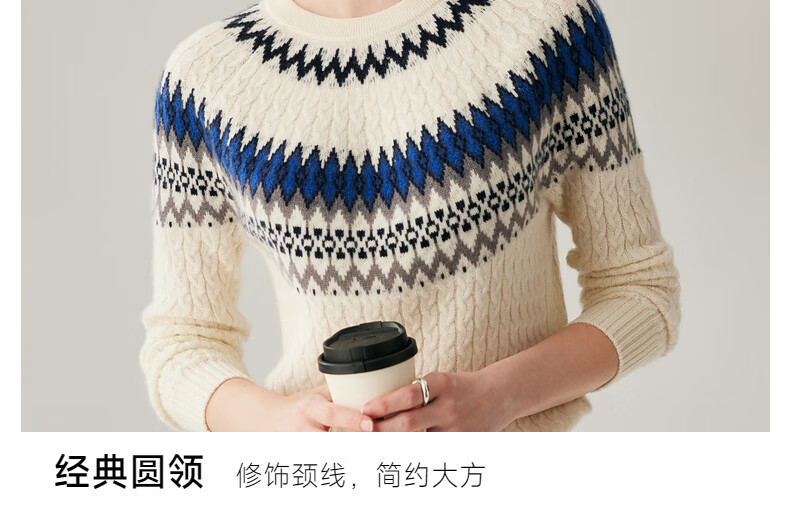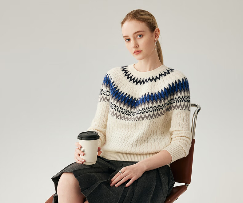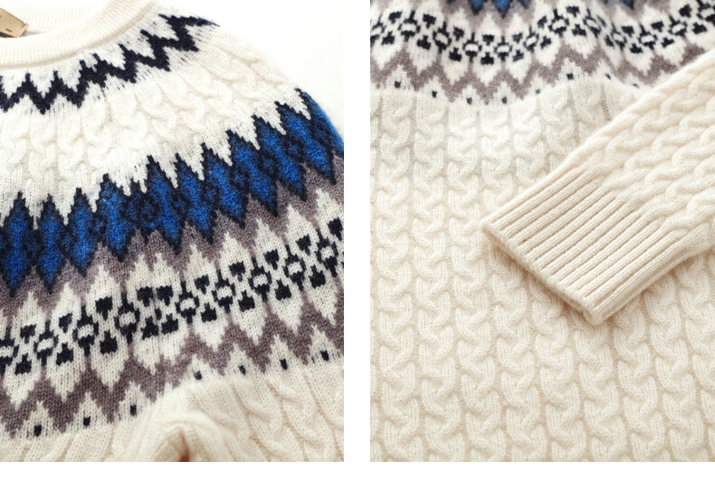 Zhaojun 2025 Autumn and Winter New Fair Isle Jacquard Cashmere Sweater Women's Round Neck Long Sleeve Knit Sweater Thickened Bottoming Sweater Cloud White XL