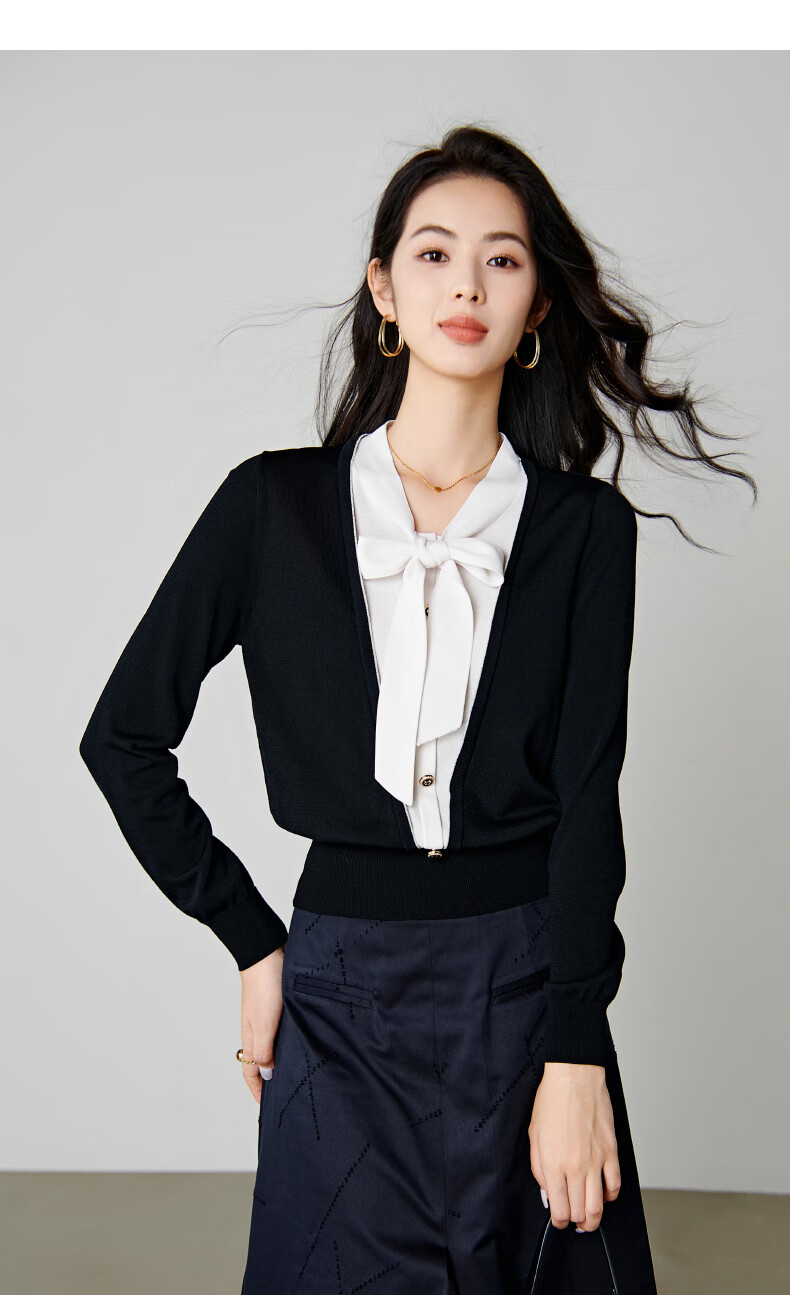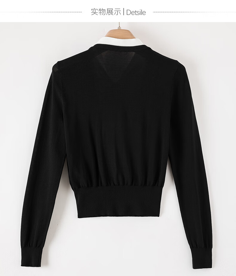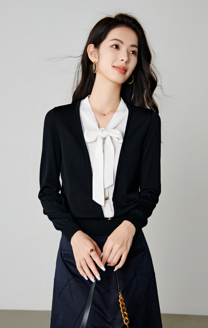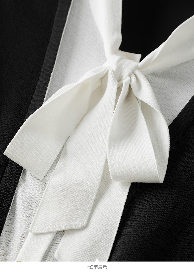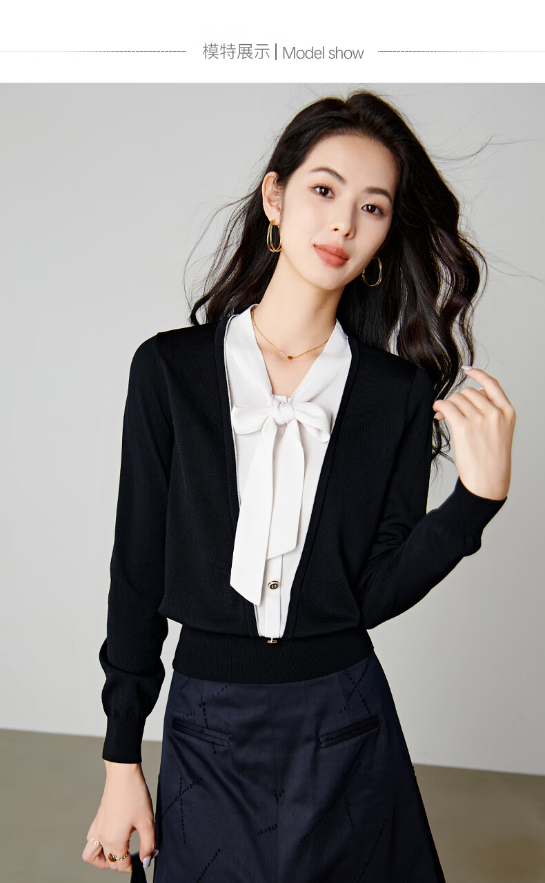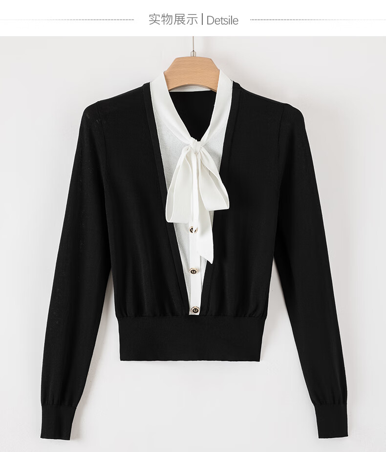 Late White New Product 2025 Autumn Style Elegant Stretch Sweater Age-Reducing Lace-up Fake Two-piece Knitted Sweater Women Black L