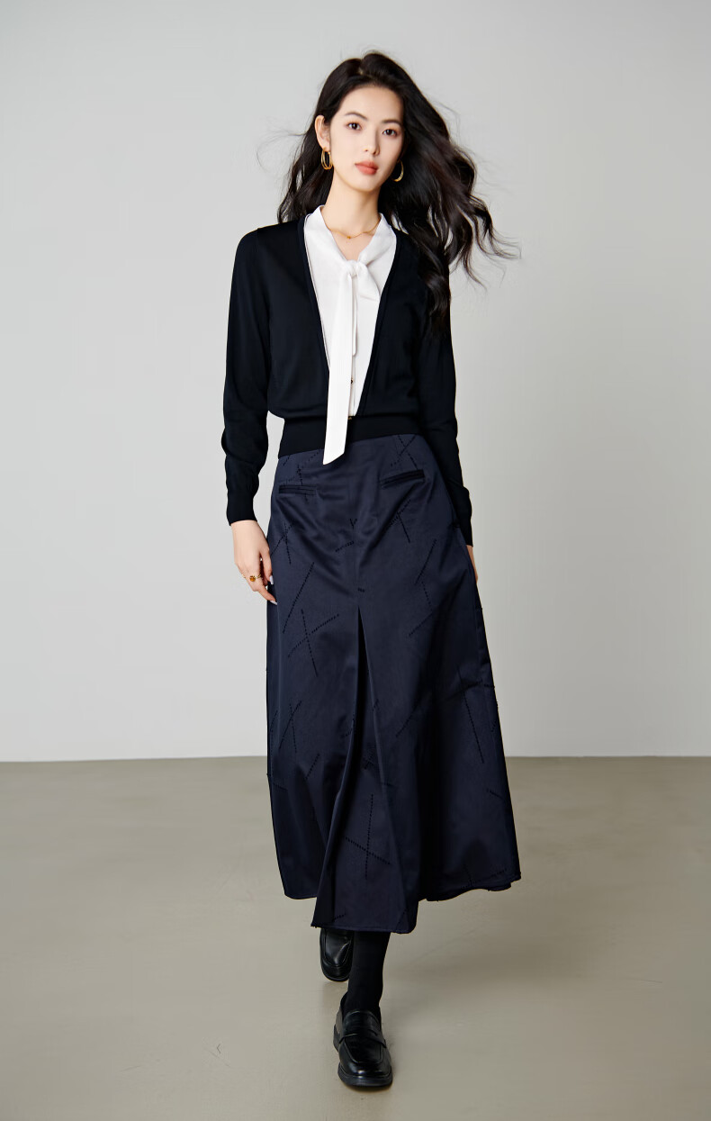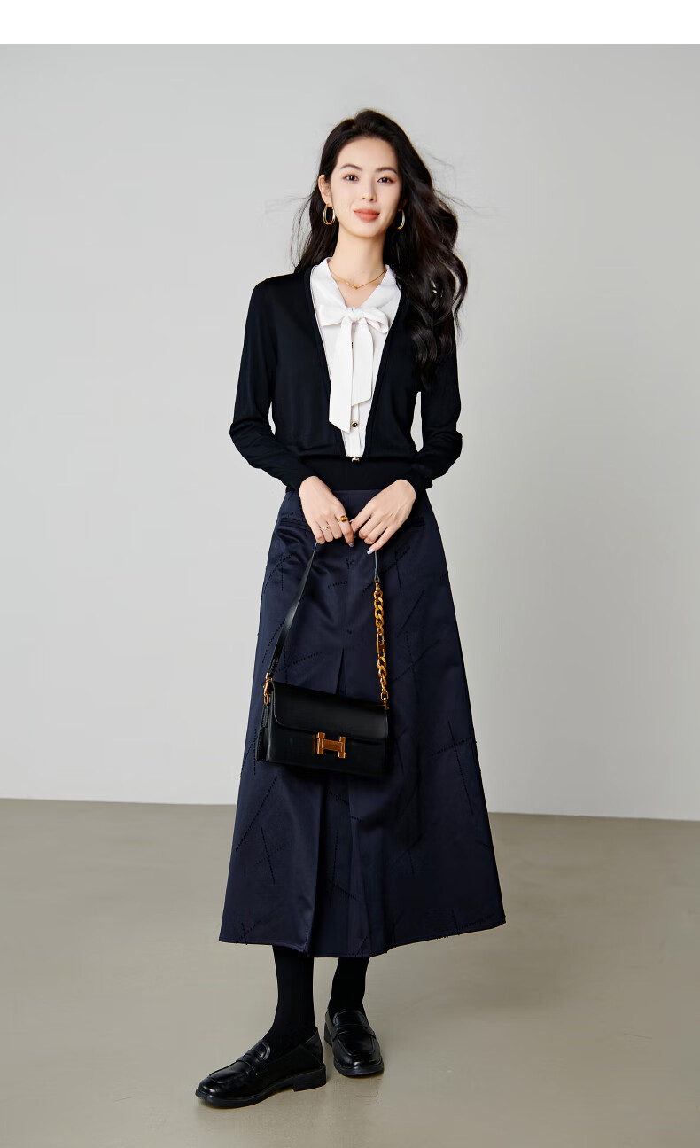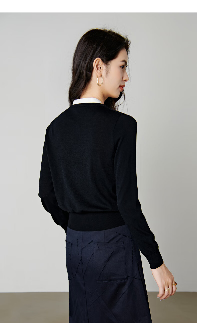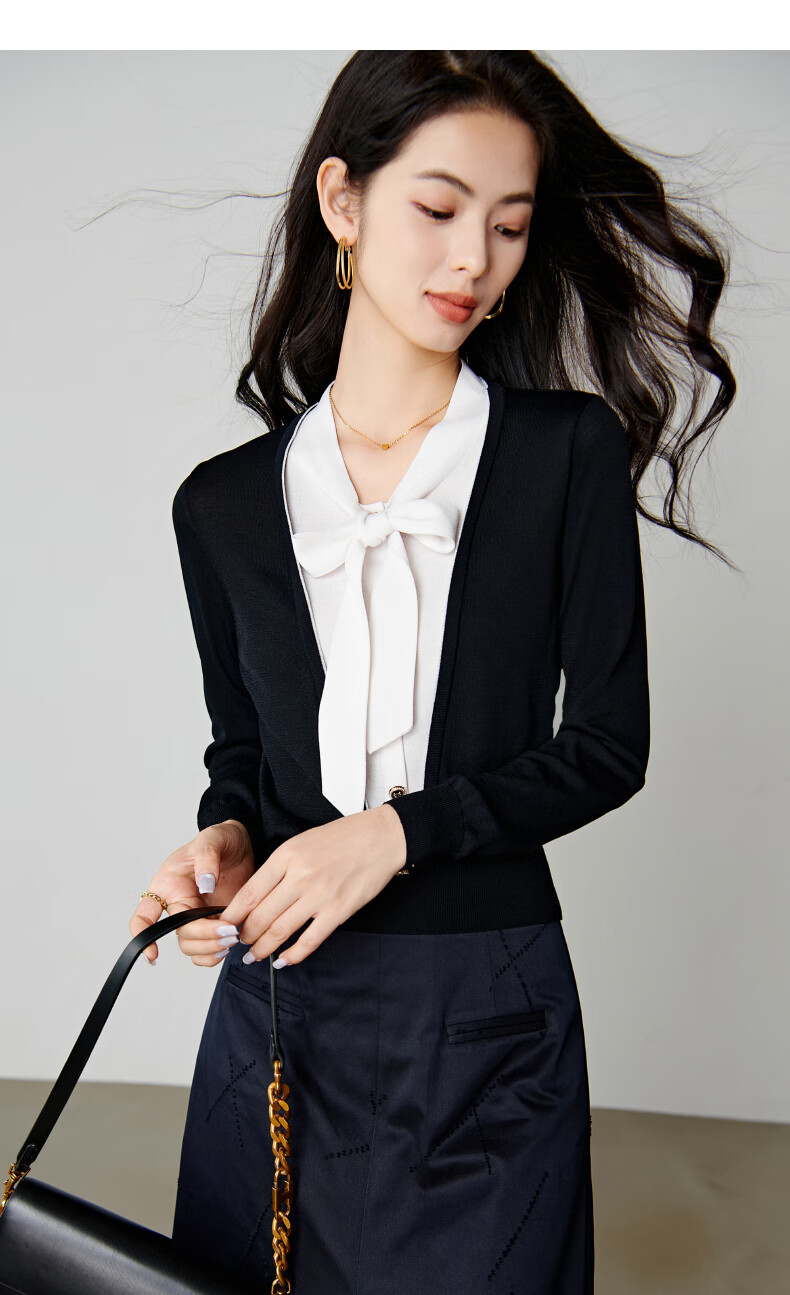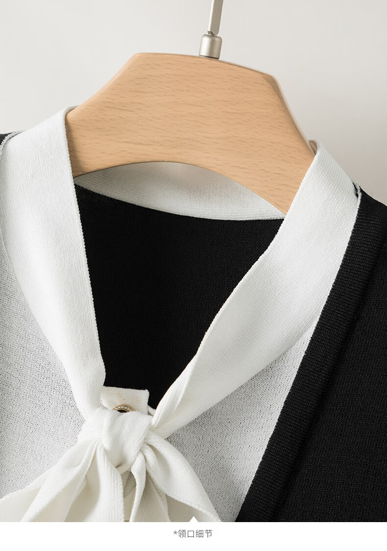 Late White New Product 2025 Autumn Style Elegant Stretch Sweater Age-Reducing Lace-up Fake Two-piece Knitted Sweater Women Black L