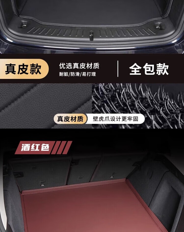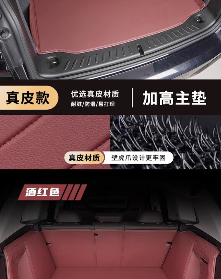 Xingtu LX Zhuifeng Fully Surrounded Genuine Leather Trunk Mat Chery Xingtu Zhuifeng 25 Model Interior Car Trunk Mat Genuine Leather Burgundy Full Surrounded Model