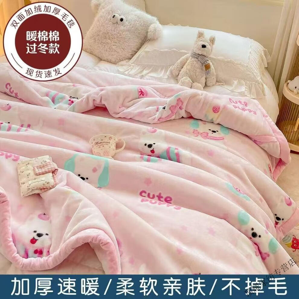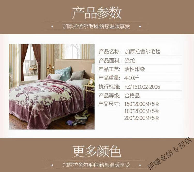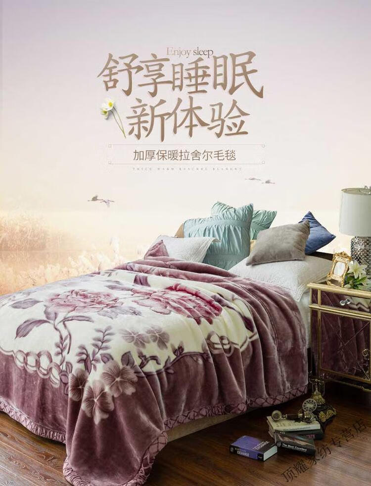 Famous premium autumn and winter thickened double-layer Raschel blanket single double blanket warm student sheets quilt cover blanket ground blue 200cm*225cm about 6Jin Jin equals 0.5kg double-layer thickened