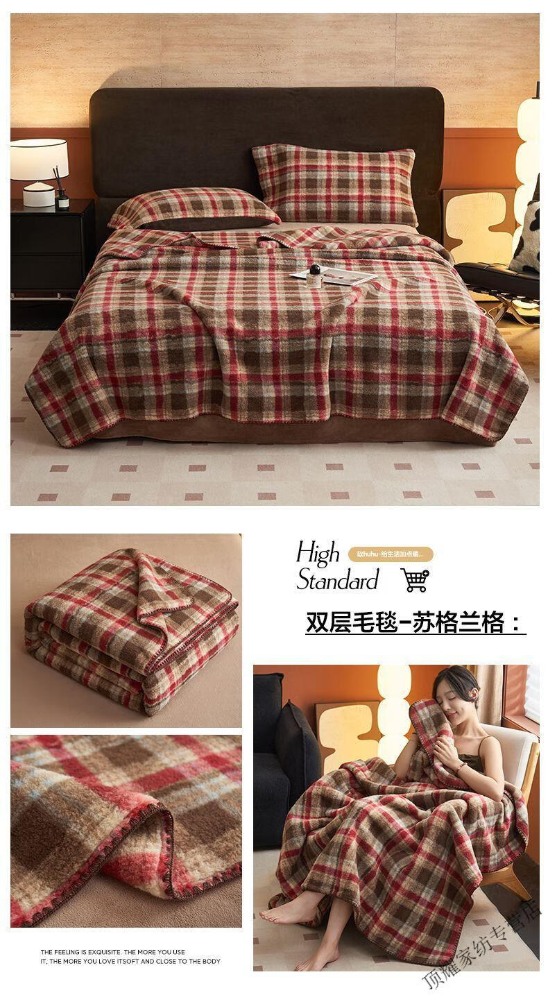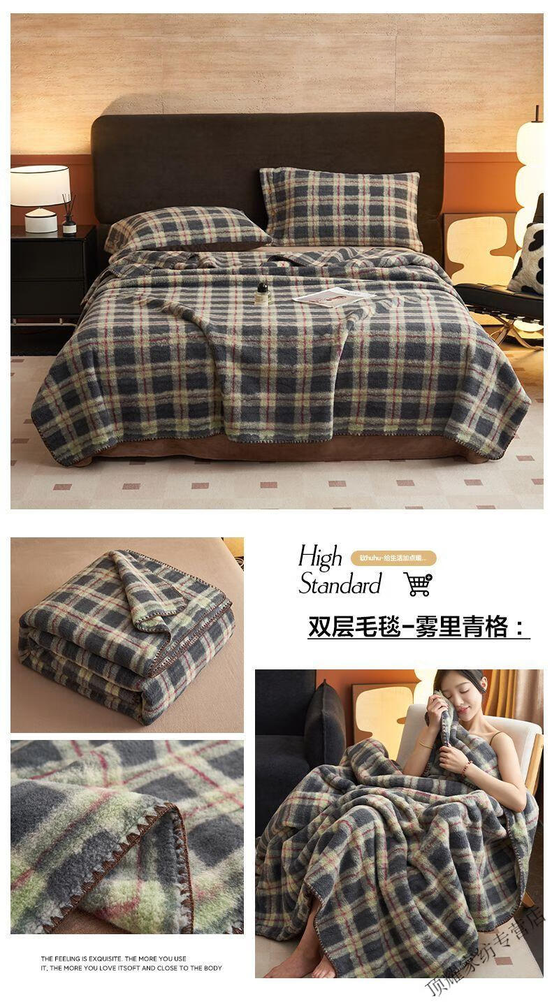 Mingxiang Premium Blanket Winter Thickened Flannel Coral Fleece 2025 New Blanket Lamb Milk Velvet Autumn and Winter Quilt Napping Blanket Double Layer Blanket-Babaoge 200cm*230cm Double Layer Blanket