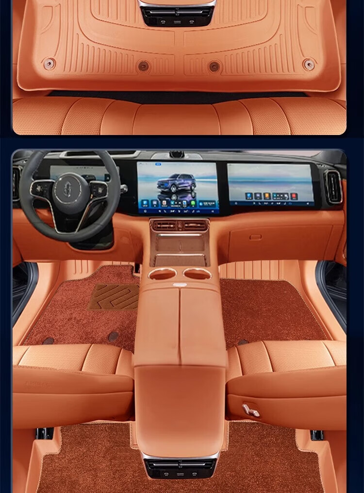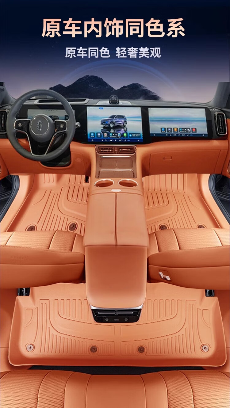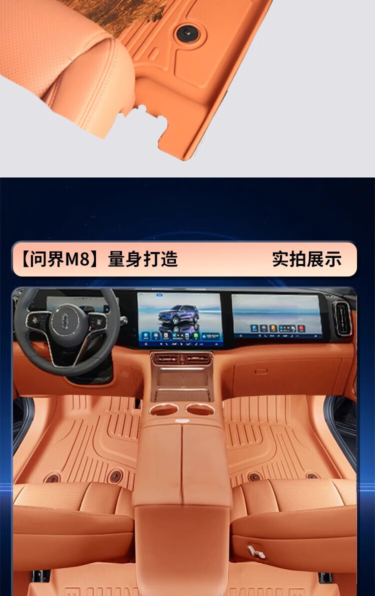 Dedicated Wenjie M8 five-seater dedicated fully surrounded TPE floor mats trunk mat interior supplies modified accessories trunk double layer - orange TPE + orange galaxy blanket + trunk mat