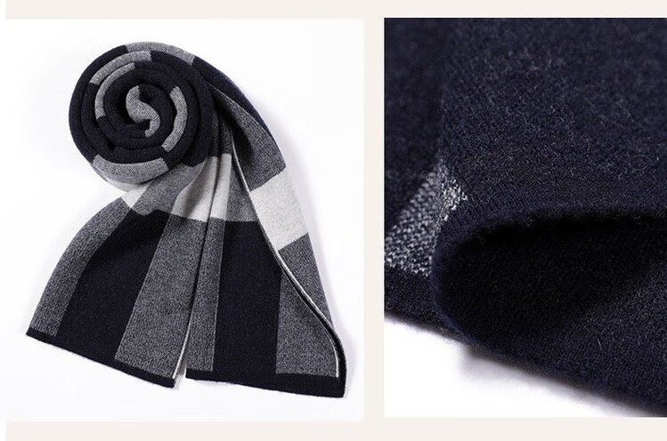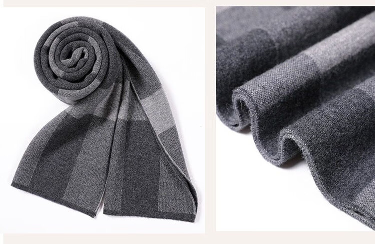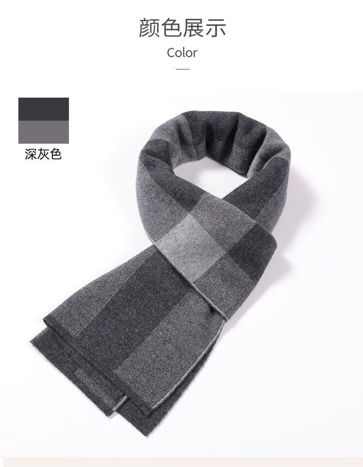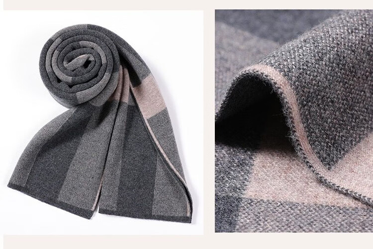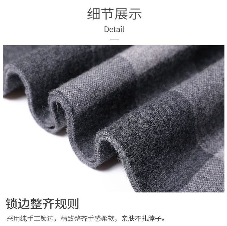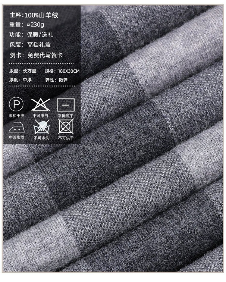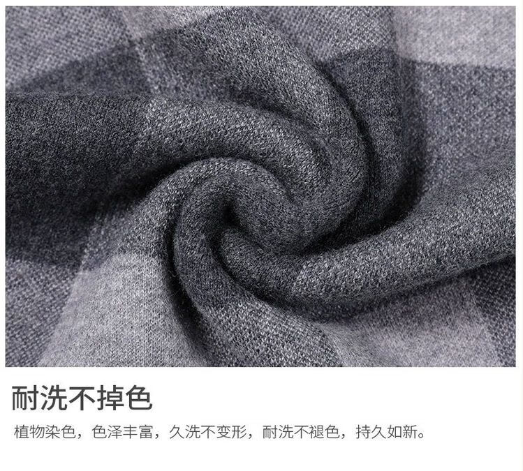 Ordos cashmere scarf men's winter plaid thickened Korean style knitted scarf birthday gift box dark gray