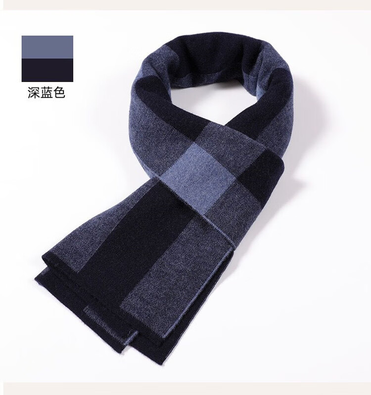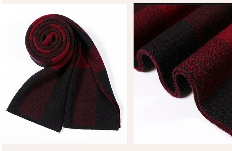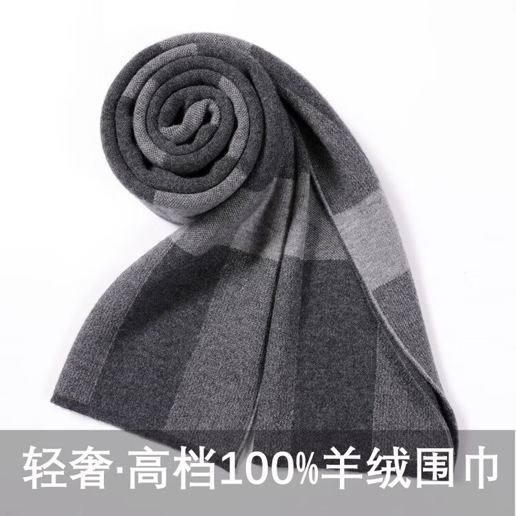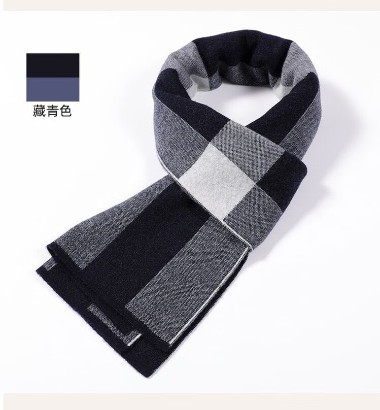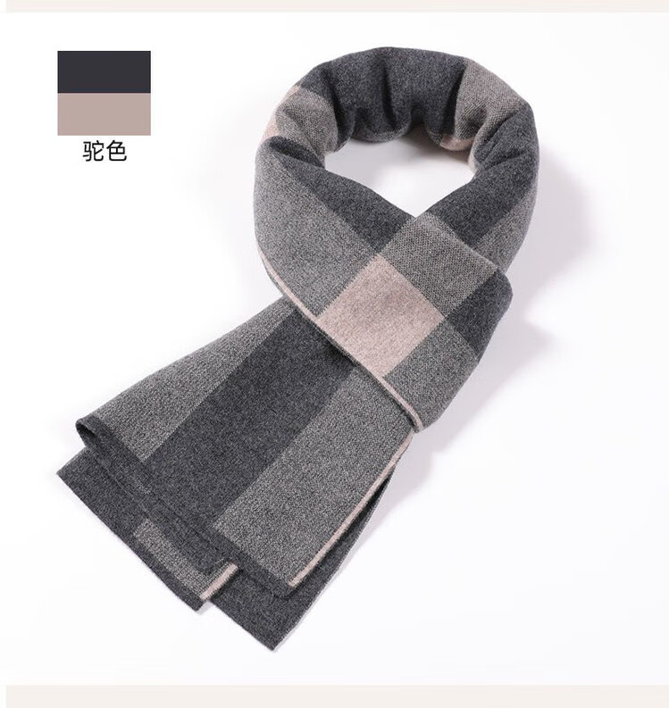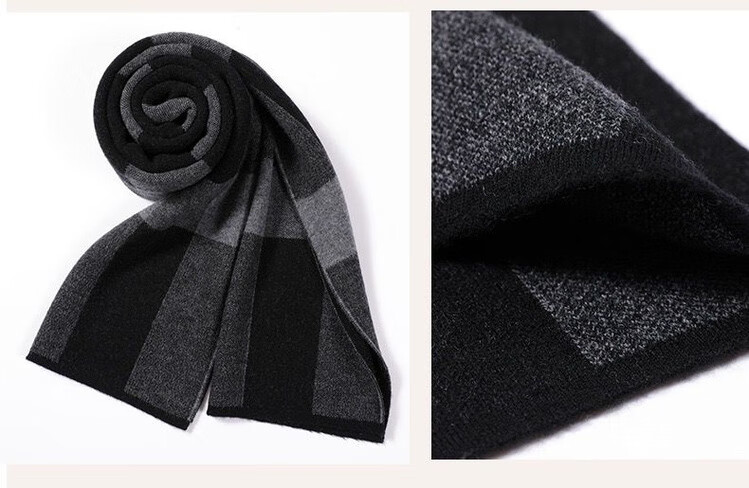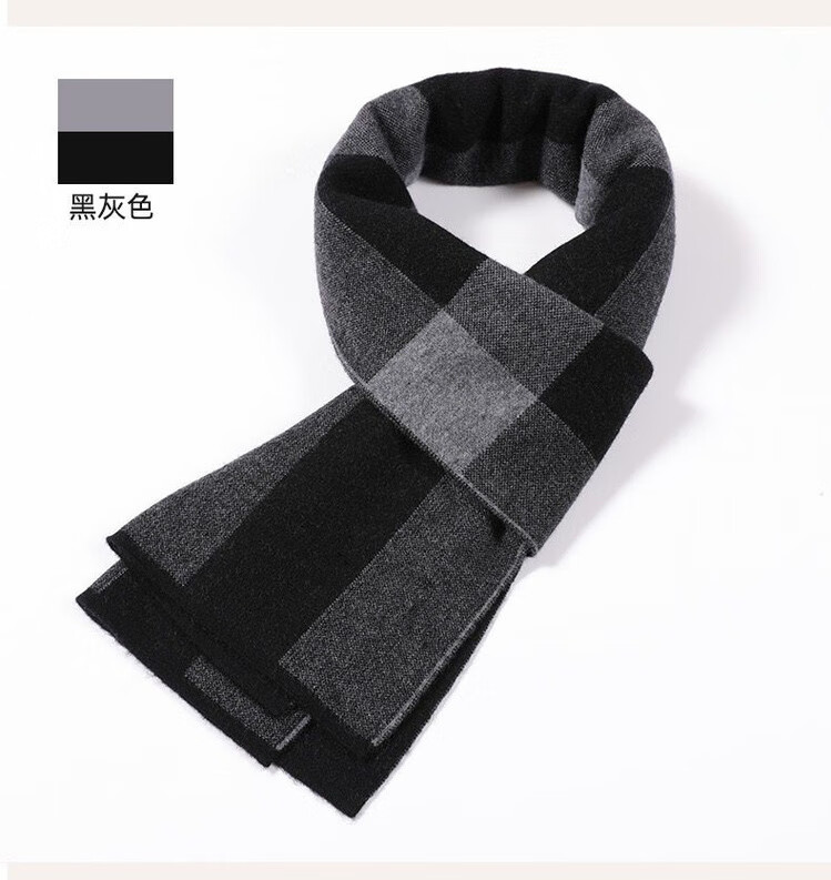 Ordos cashmere scarf men's winter plaid thickened Korean style knitted scarf birthday gift box dark gray
