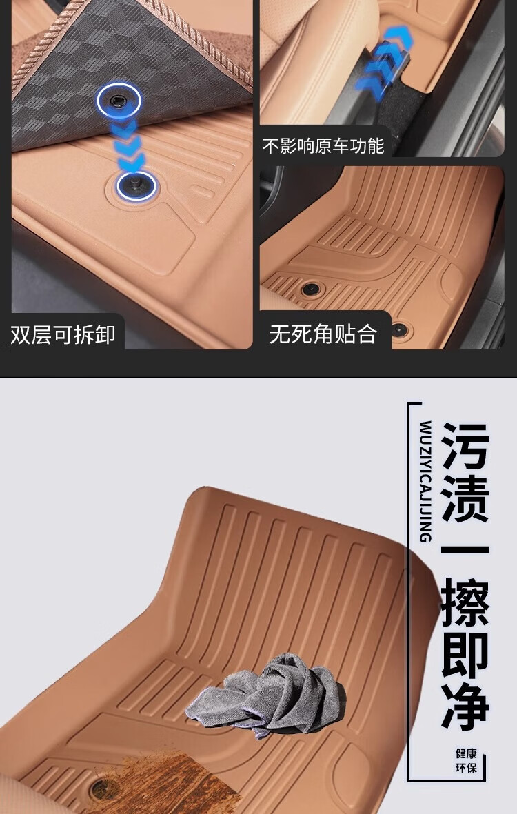 Suitable for NIO ES6/EC6 fully surrounded TPE floor mats, trunk mat, interior modification supplies, trunk carpet, double layer - black TPE + black galaxy blanket + trunk mat