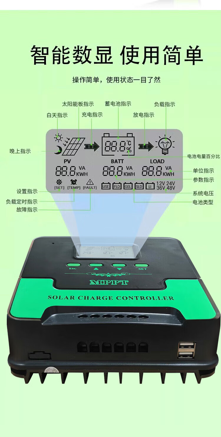 MPPT solar controller 12V24V36V48V fully automatic universal rechargeable lithium battery lead-acid photovoltaic panel power generation MPPT 12V24V36V48V universal 50A upgrade