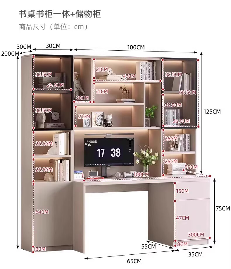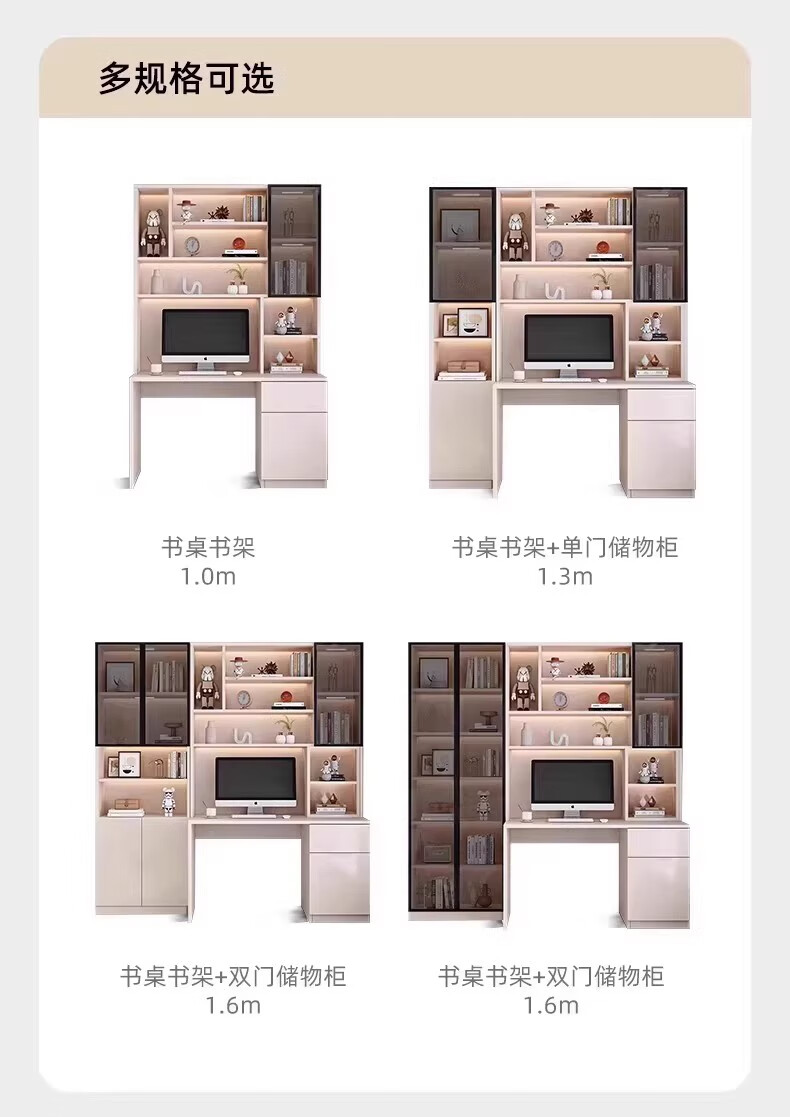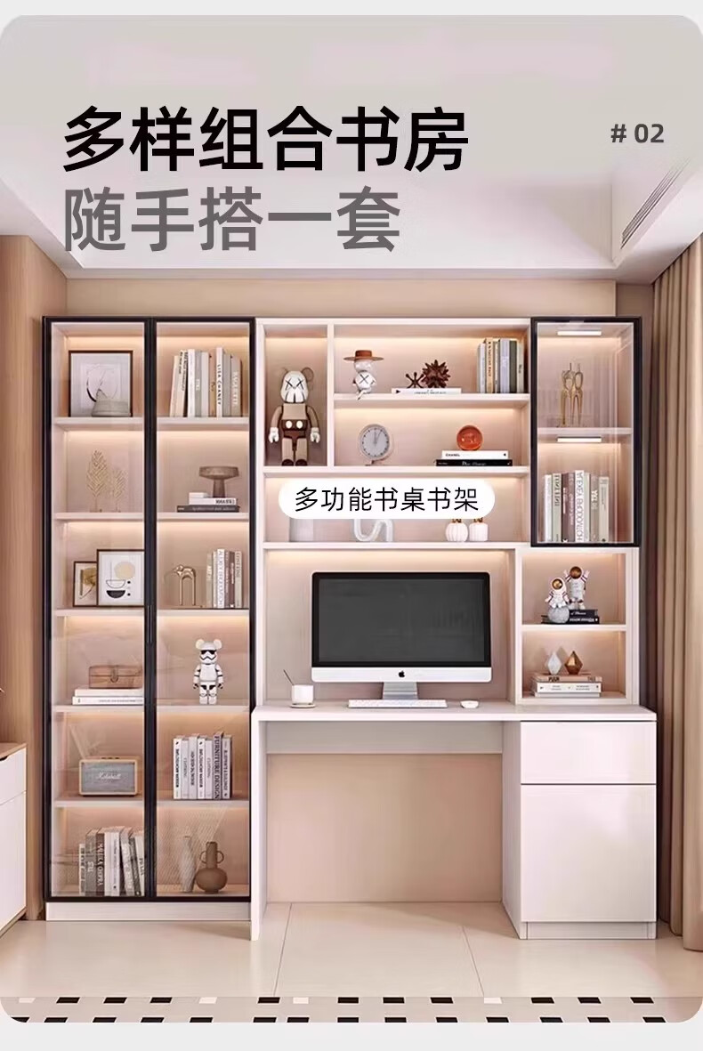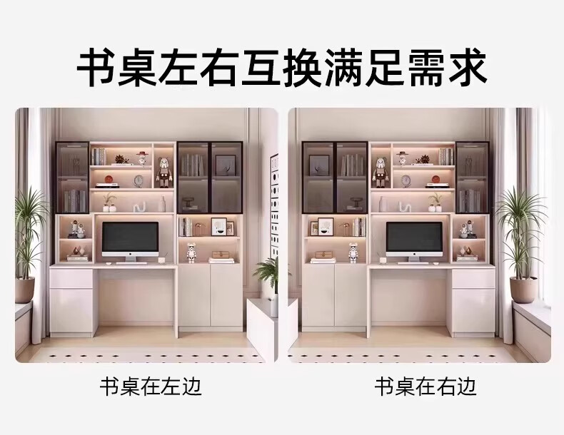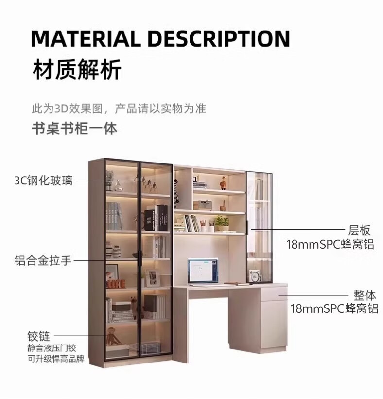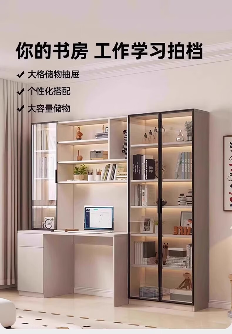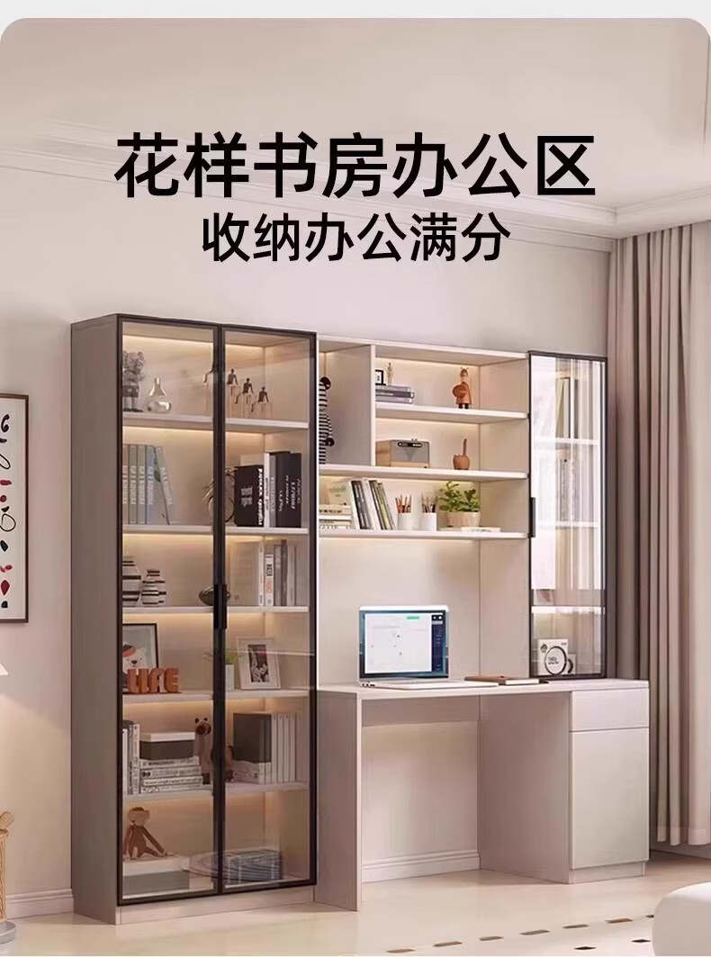 Aluminum alloy desk bookcase integrated study room office computer desk bedroom student home study table children's customization length 100*width 55*height 200cm