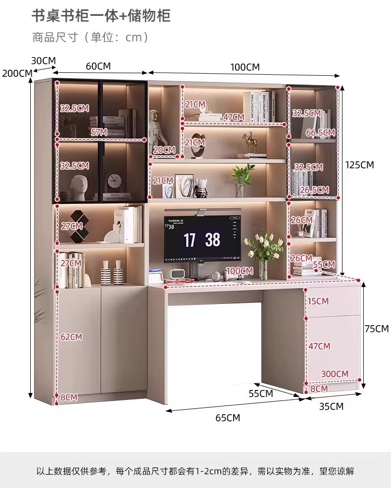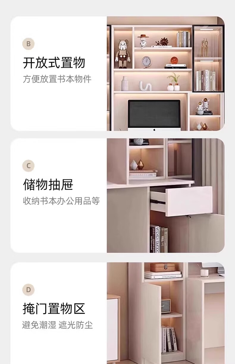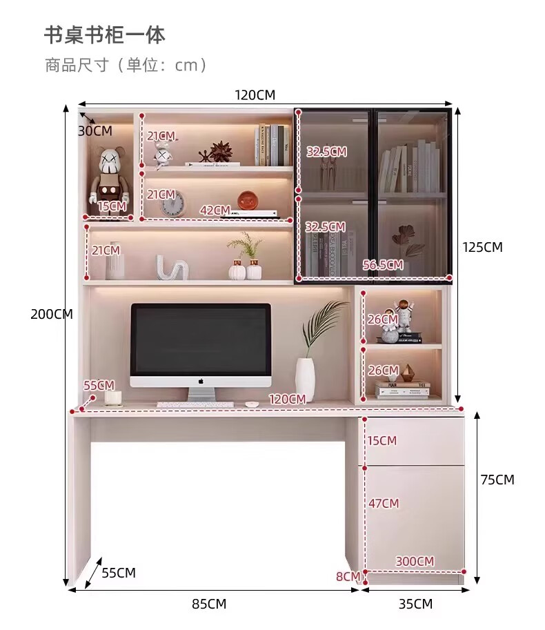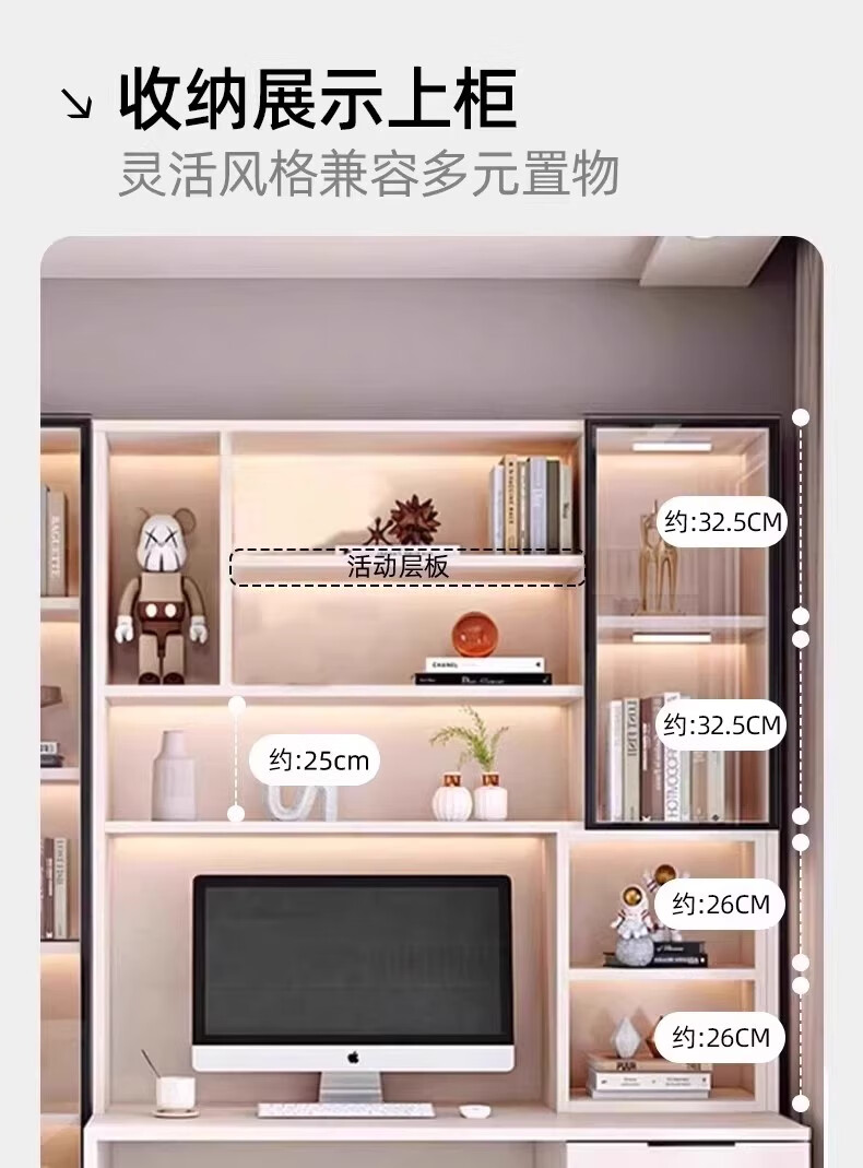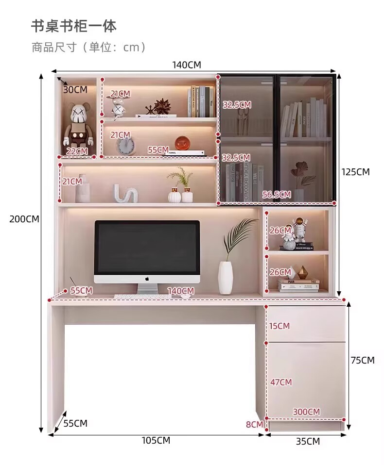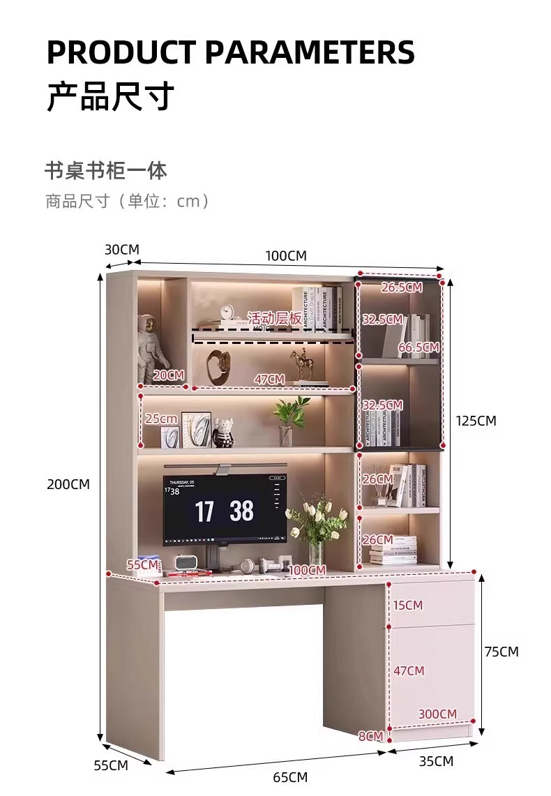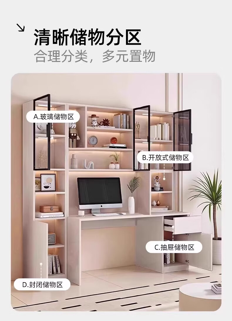 Aluminum alloy desk bookcase integrated study room office computer desk bedroom student home study table children's customization length 100*width 55*height 200cm