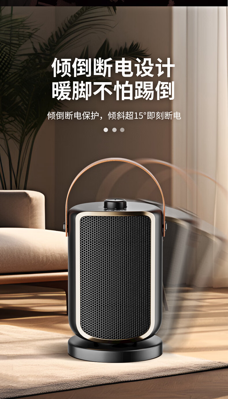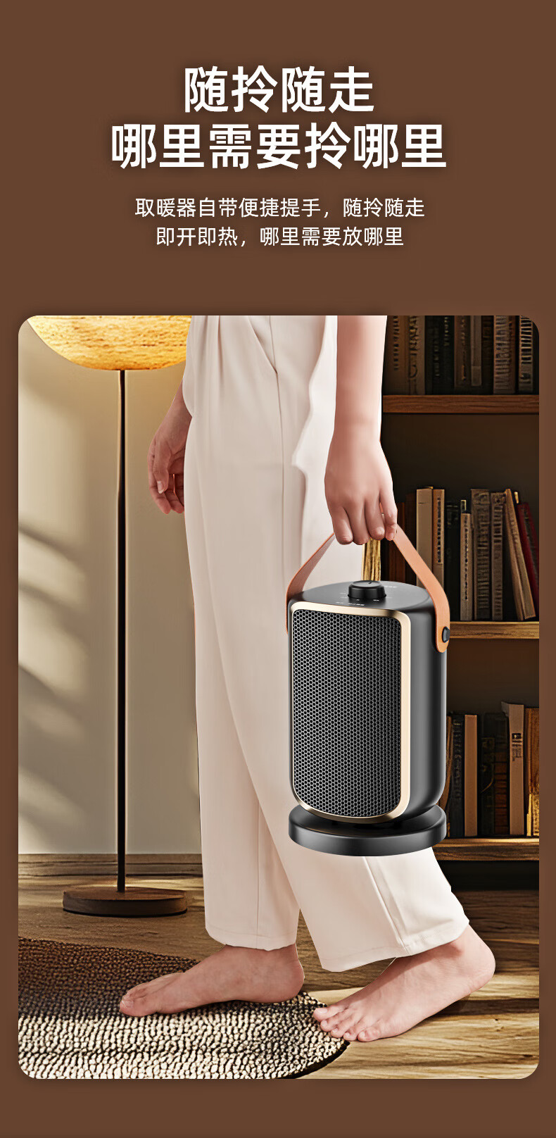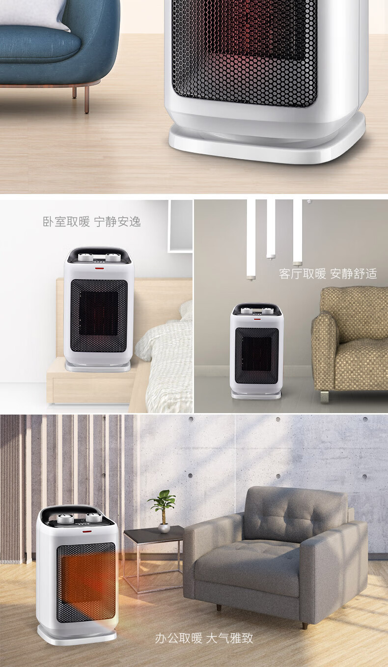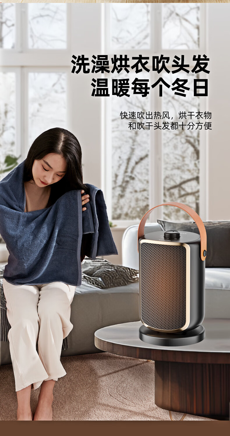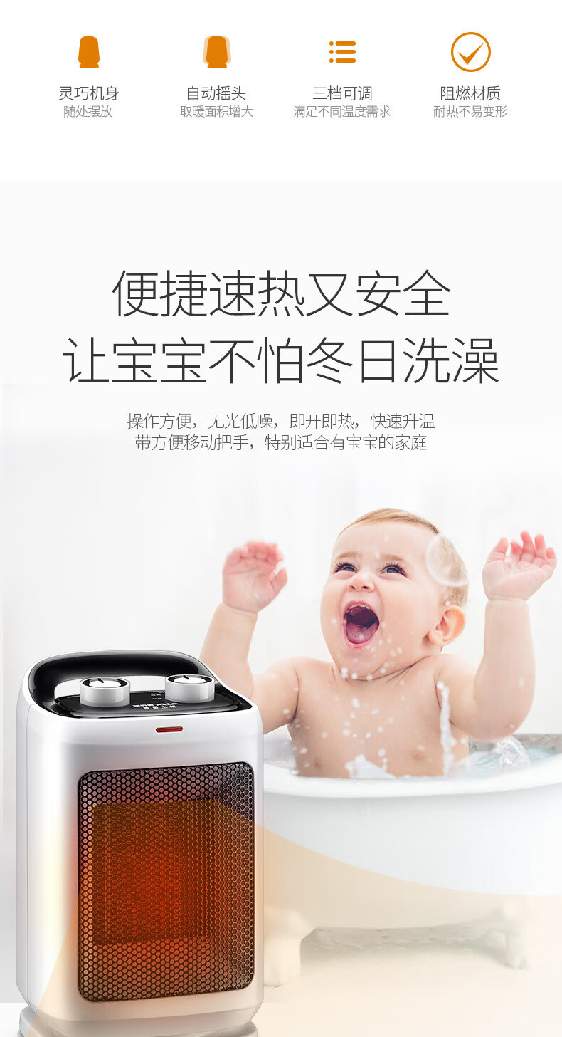 Oaks heater household electric power-saving heater small sun living room bathroom hot air small heater 150L black shaking head heater PTC