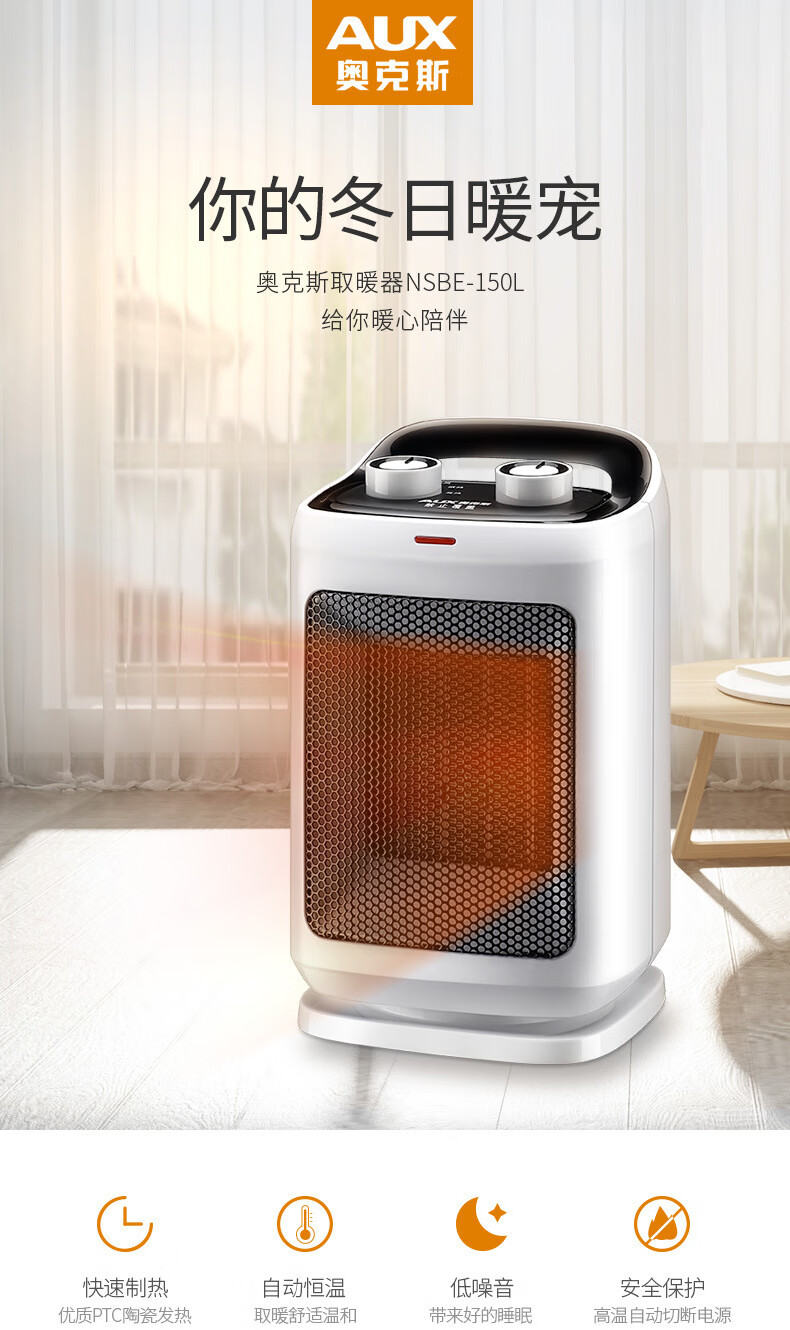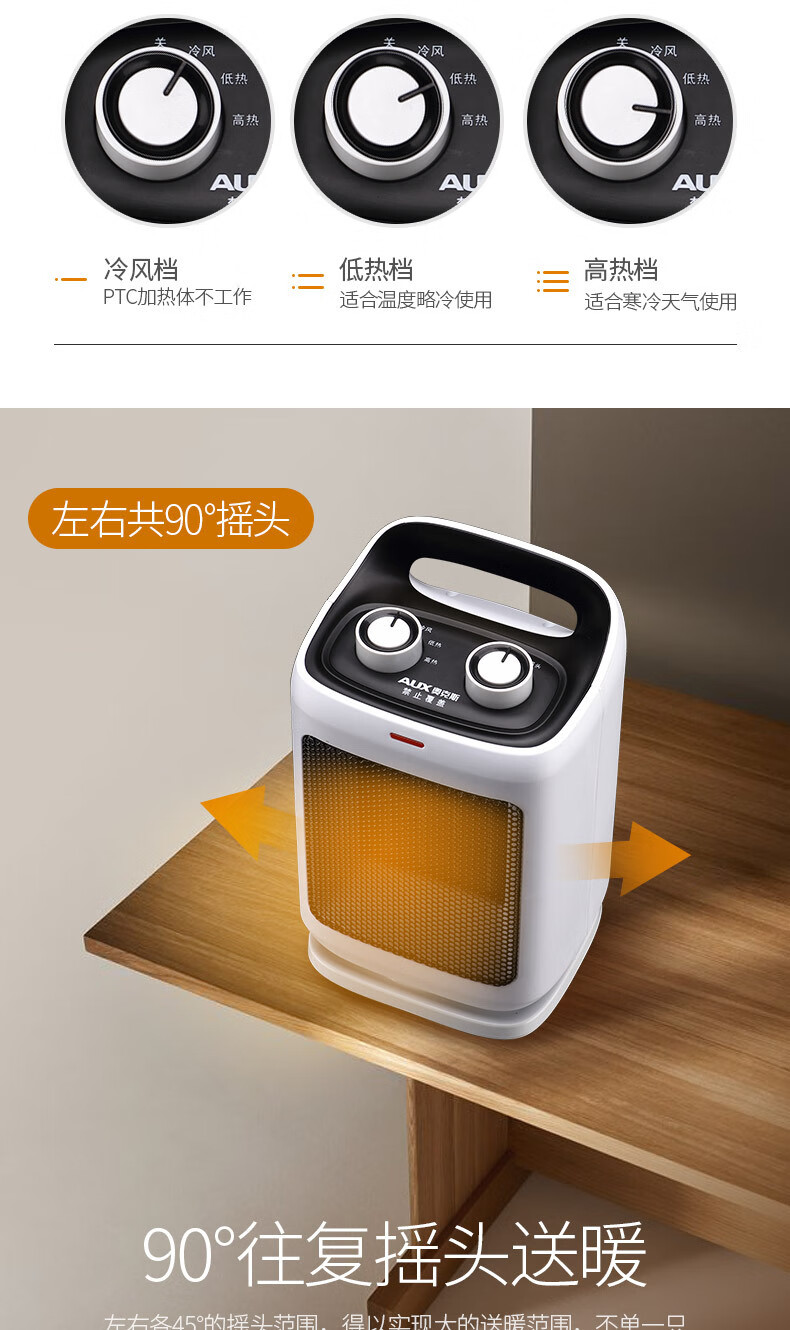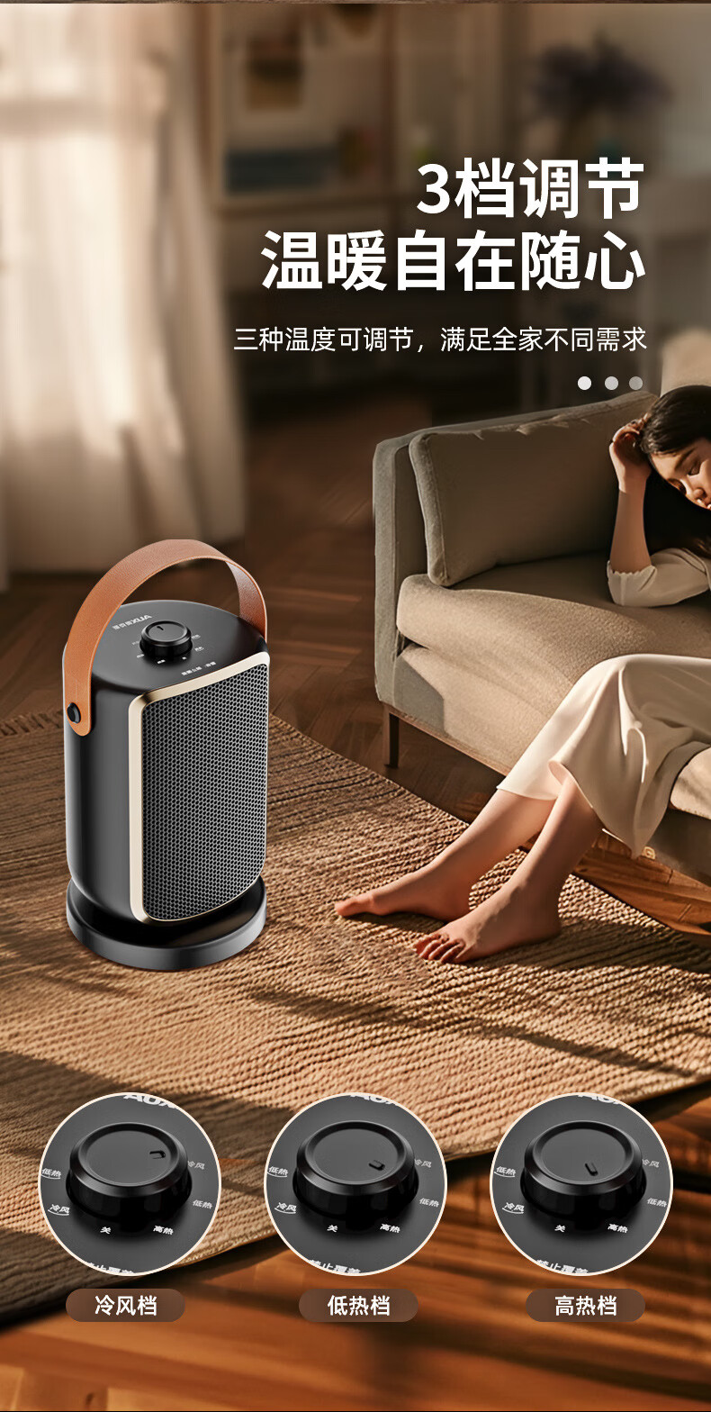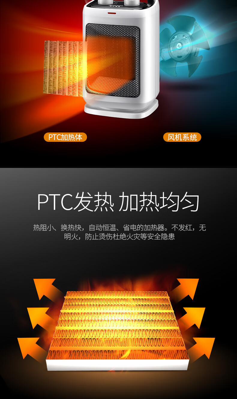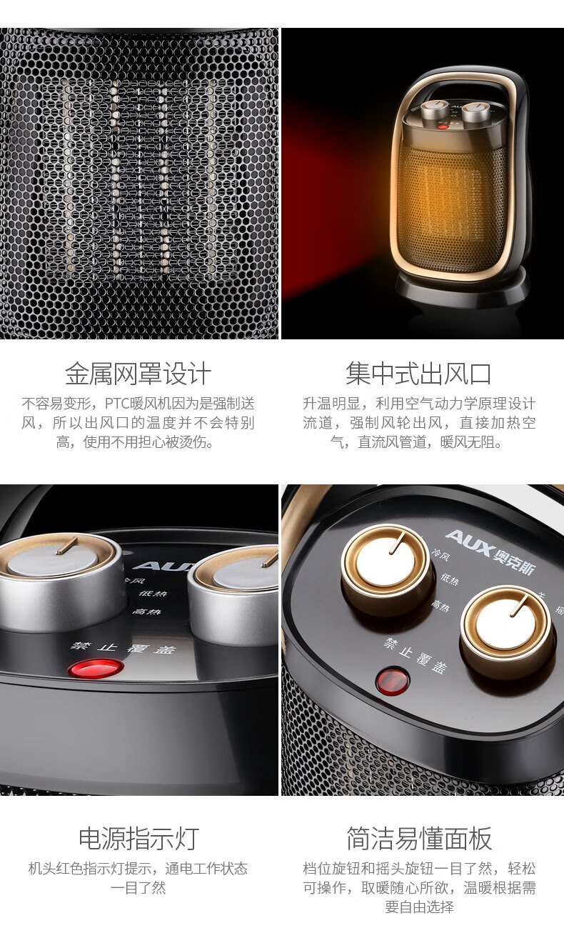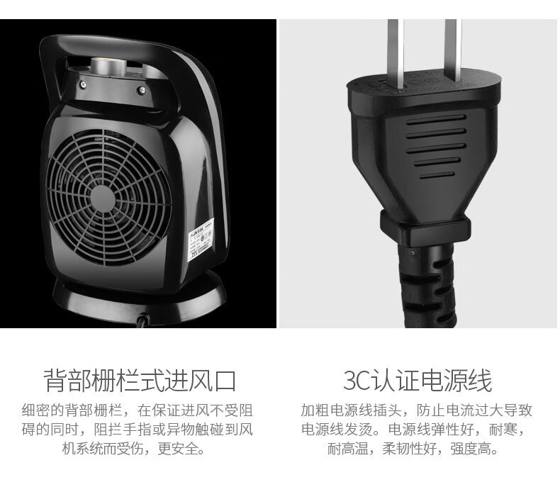 Oaks heater household electric power-saving heater small sun living room bathroom hot air small heater 150L black shaking head heater PTC