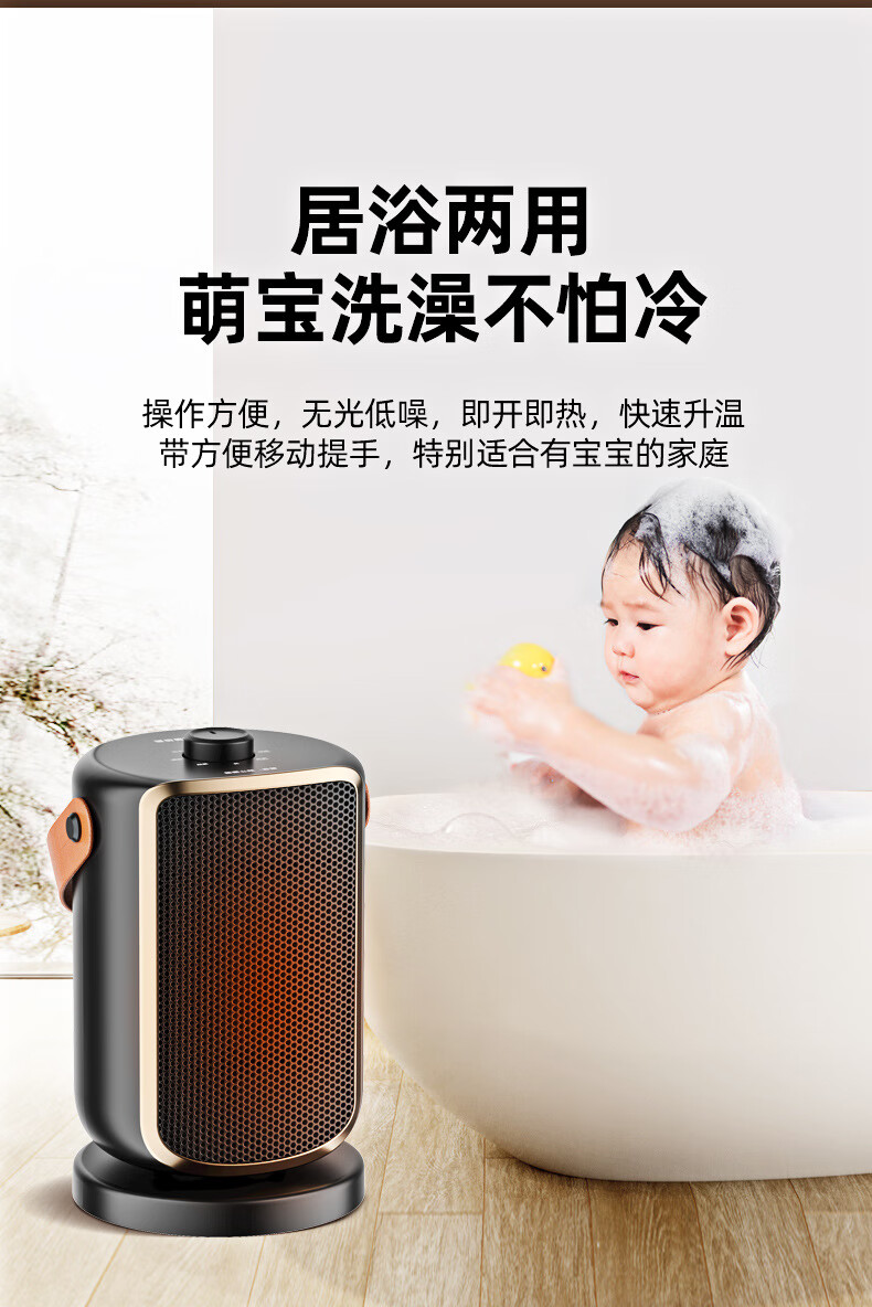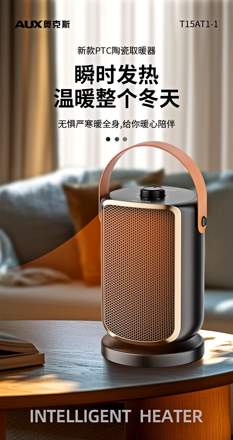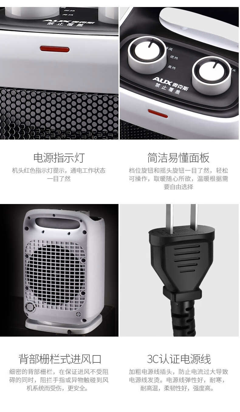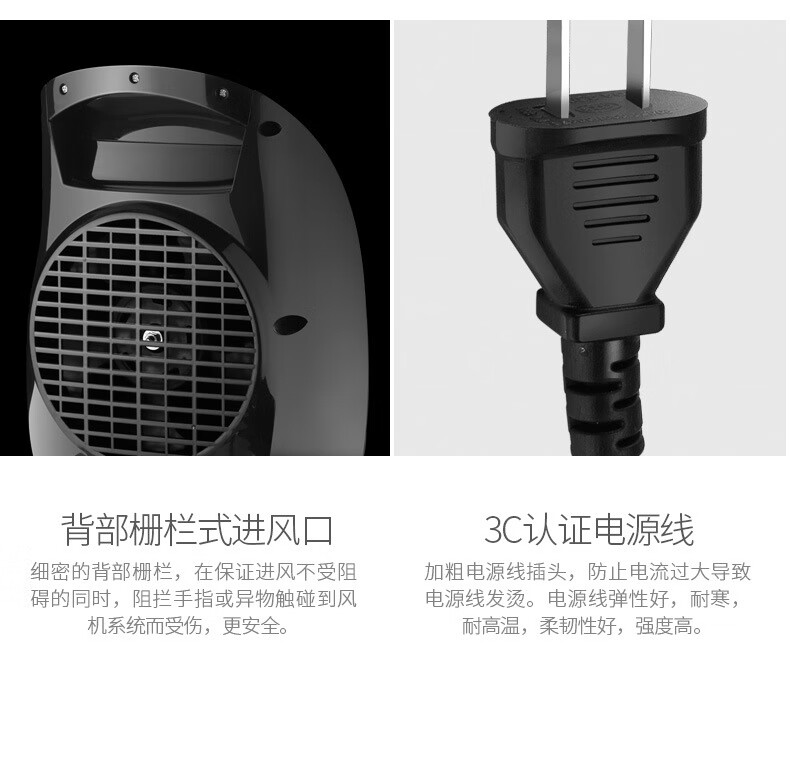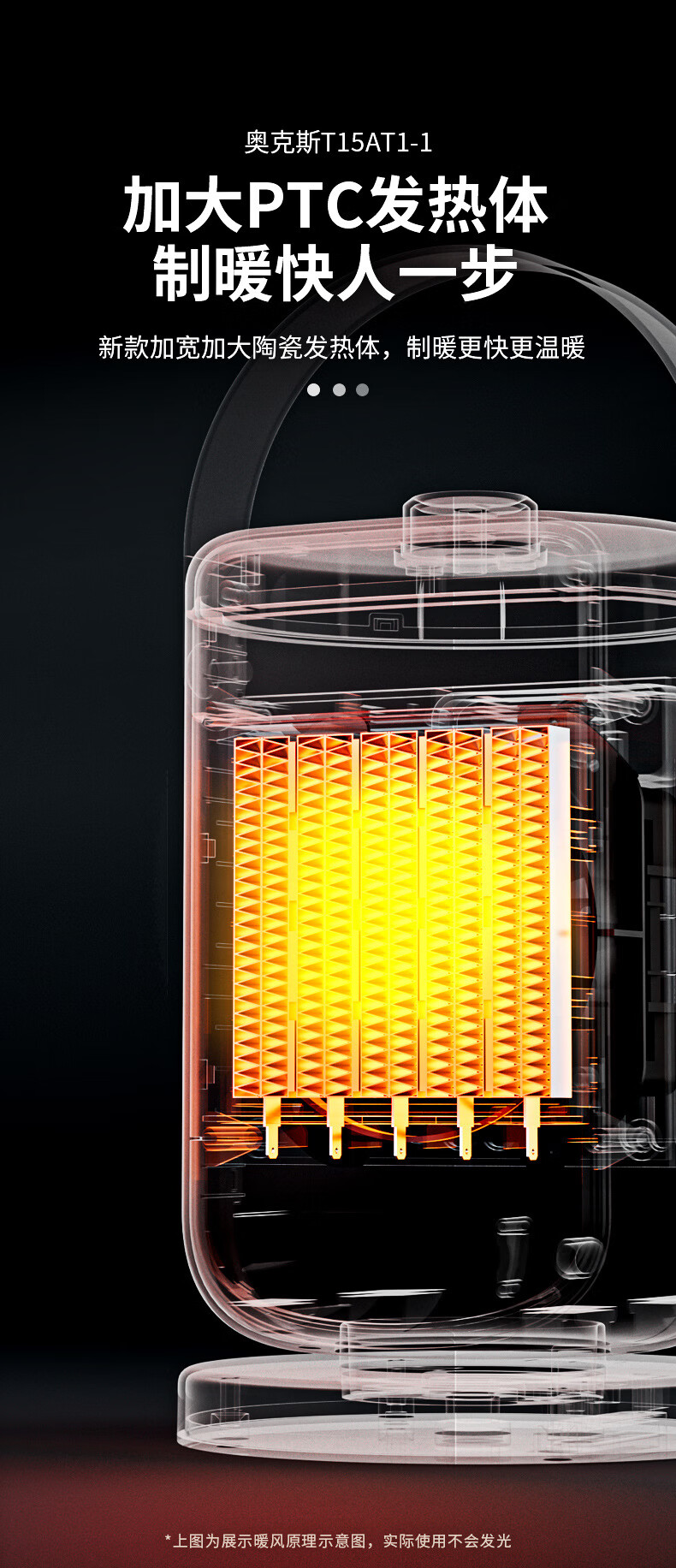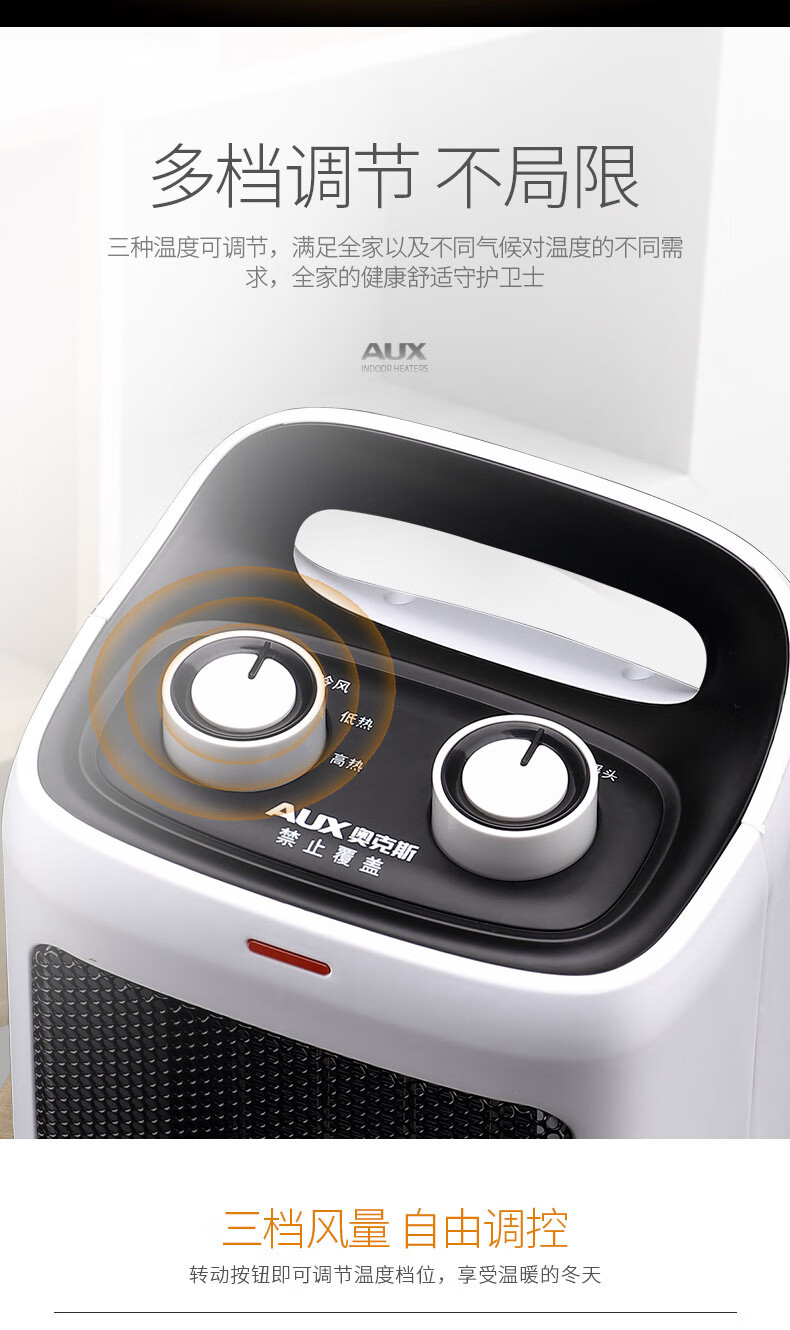 Oaks heater household electric power-saving heater small sun living room bathroom hot air small heater 150L black shaking head heater PTC
