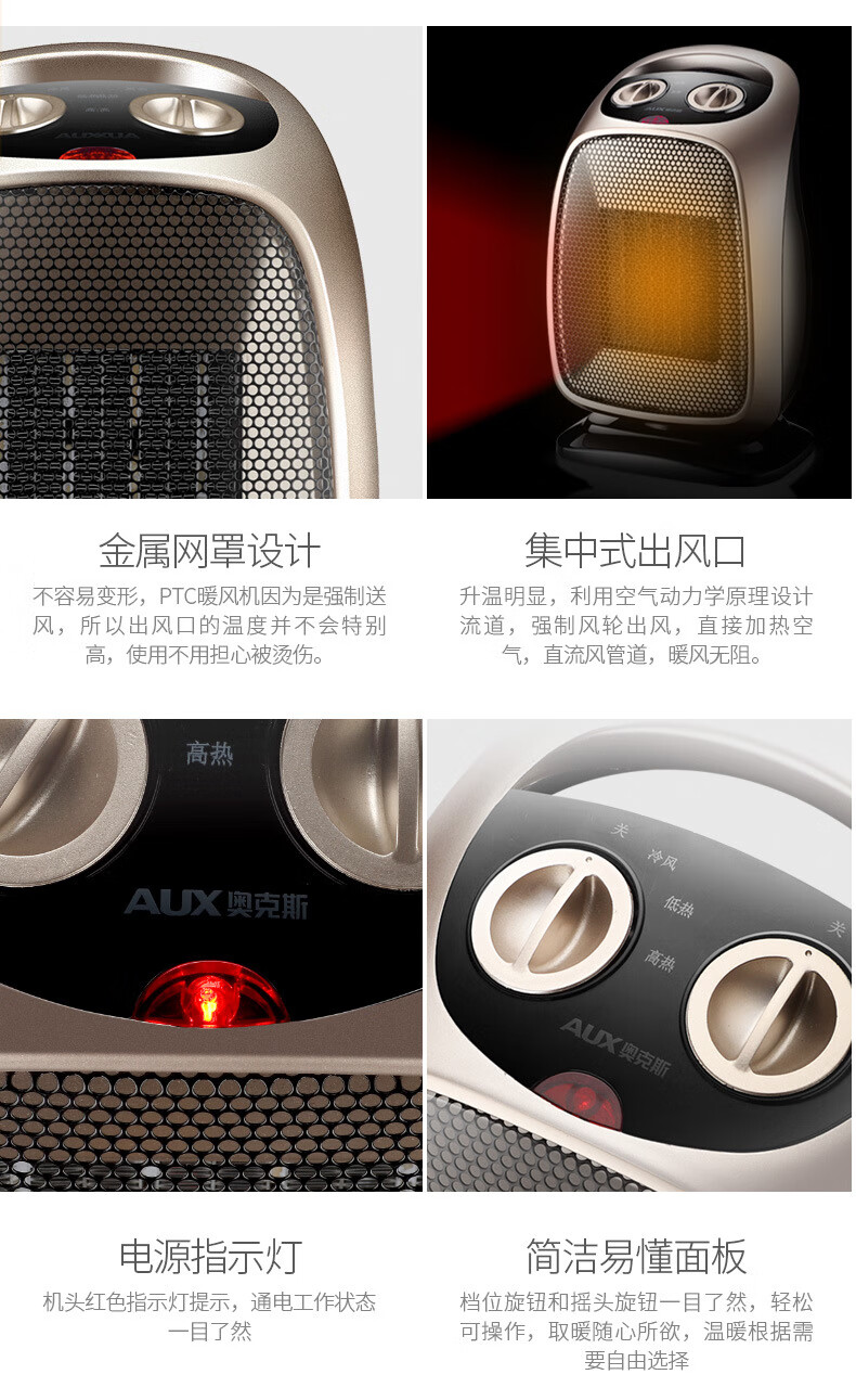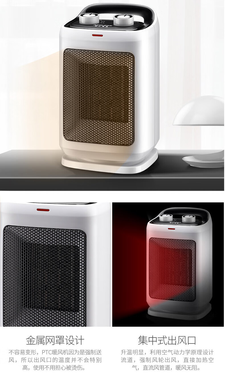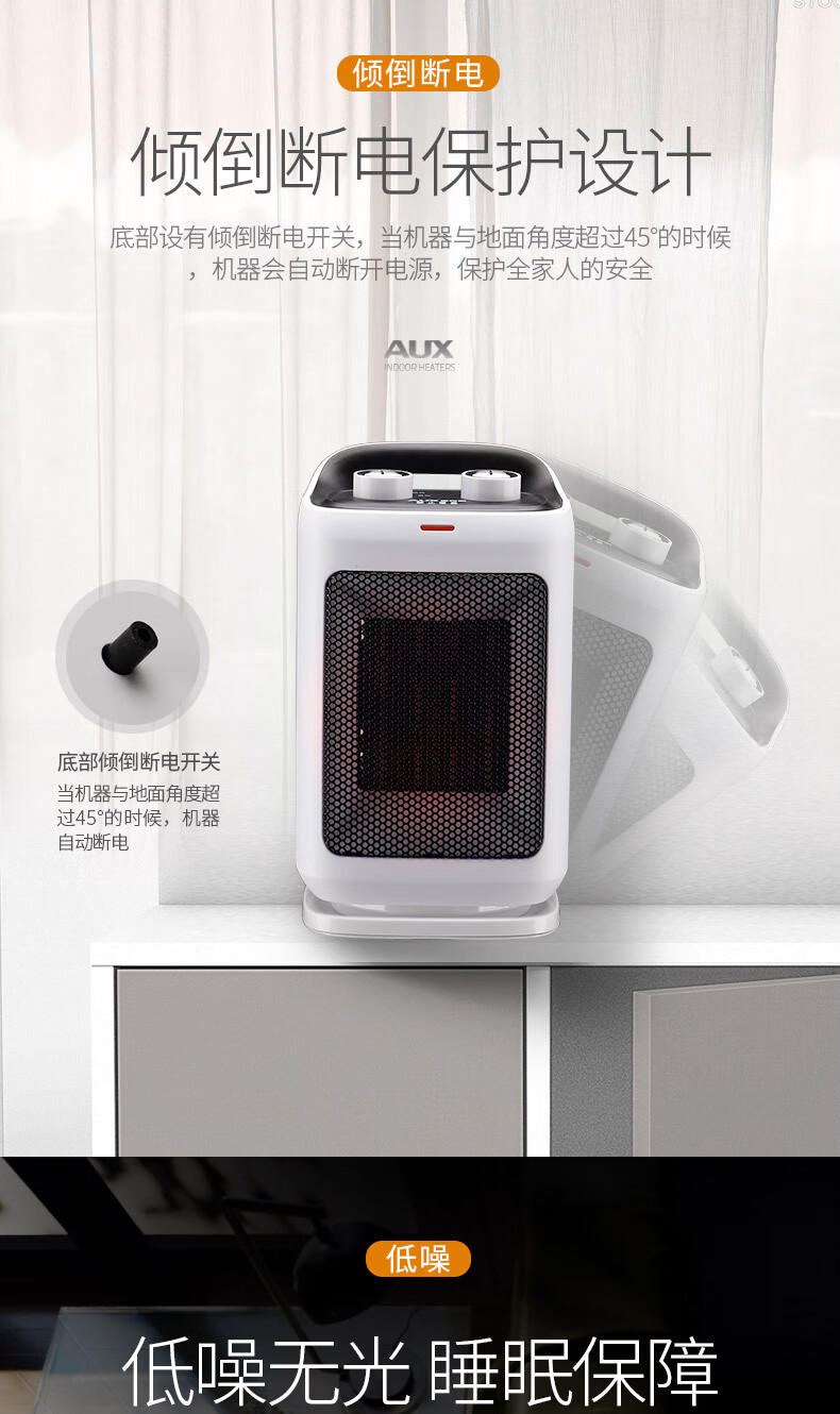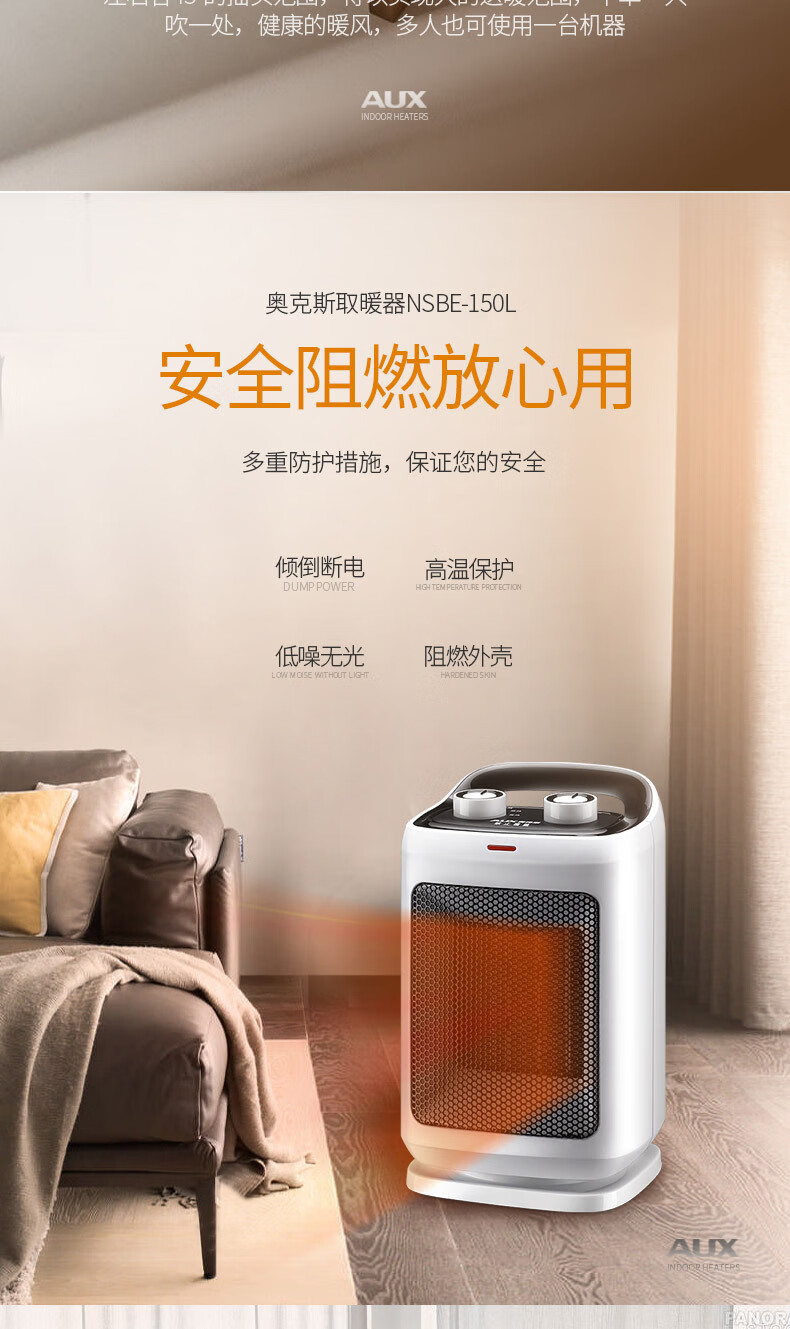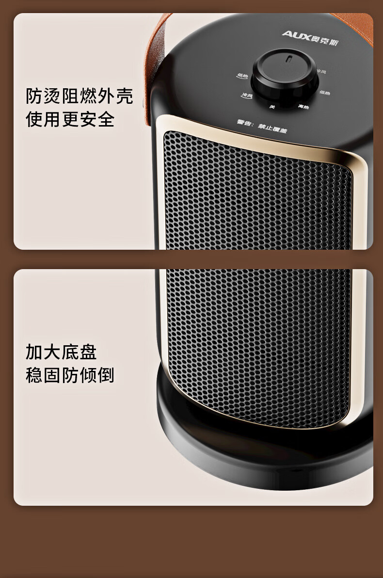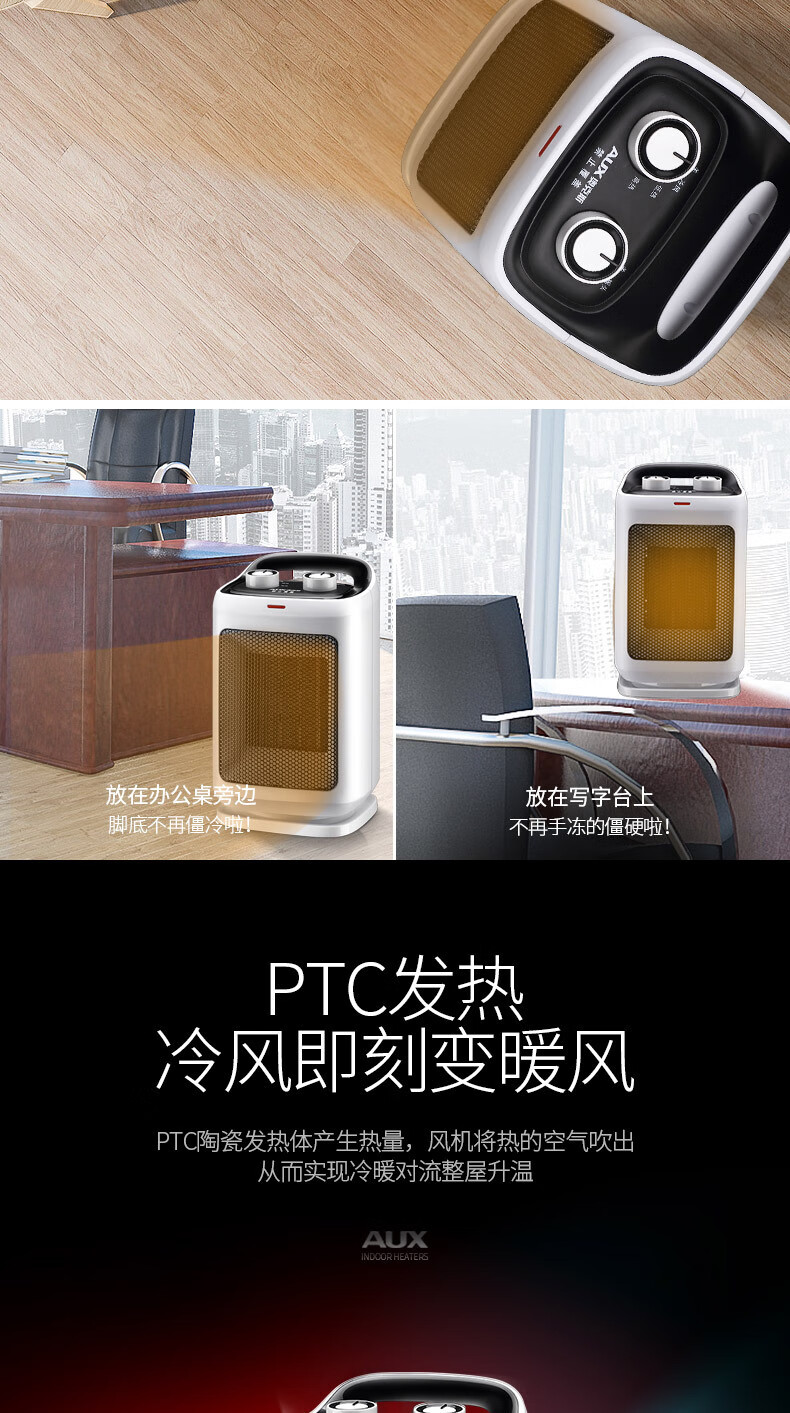 Oaks heater household electric power-saving heater small sun living room bathroom hot air small heater 150L black shaking head heater PTC