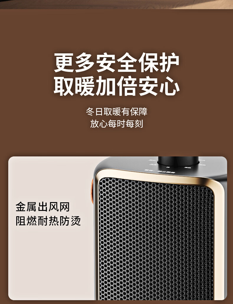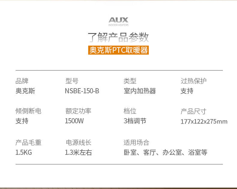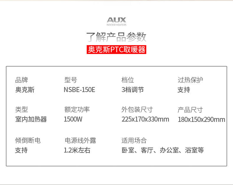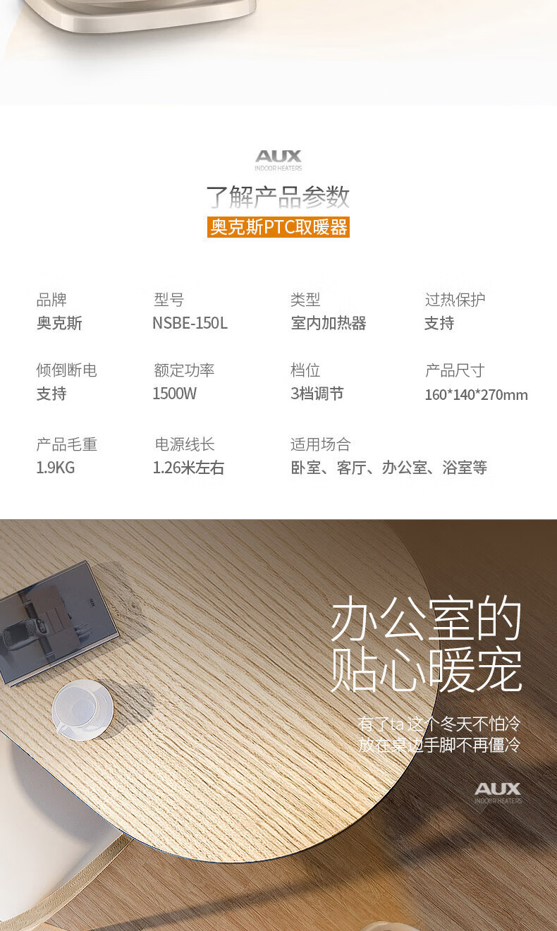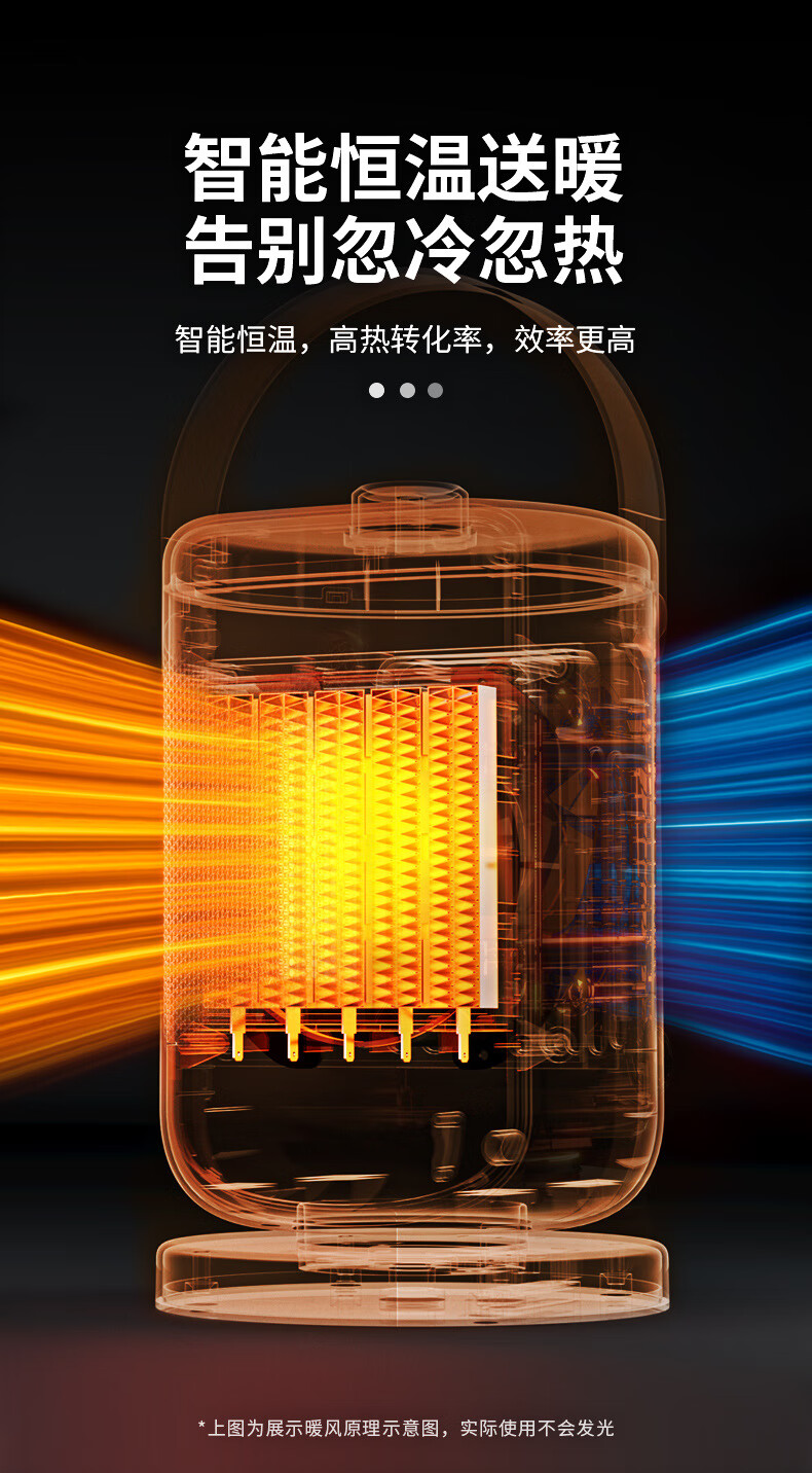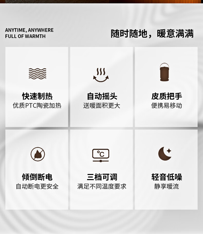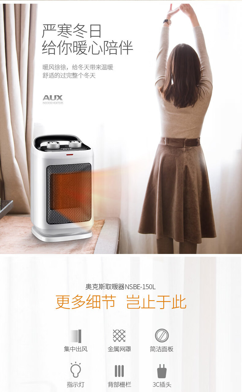 Oaks heater household electric power-saving heater small sun living room bathroom hot air small heater 150L black shaking head heater PTC