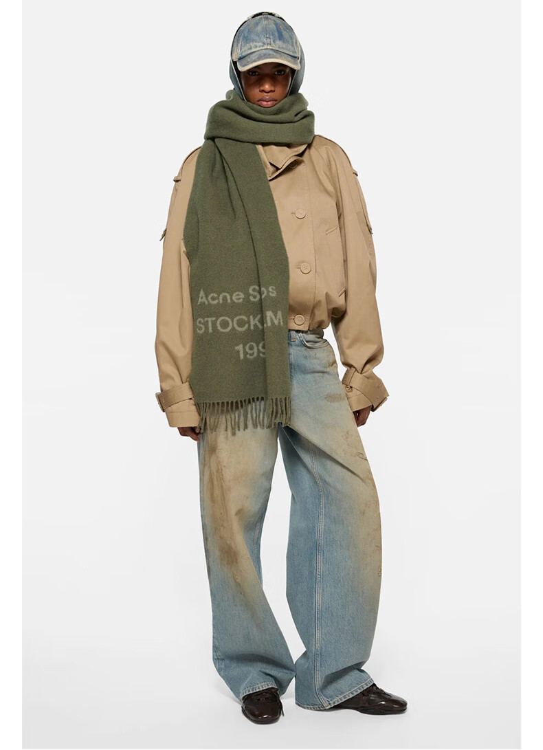 Acne Studios Gift 1996 Logo Wool Tassel Scarf Shawl Black/White