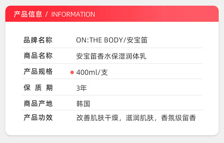 LG Amber Di Perfume Body Lotion 400ml bottle of Korean imported floral moisturizing body lotion Sweet Love Body Lotion Pink 400ml