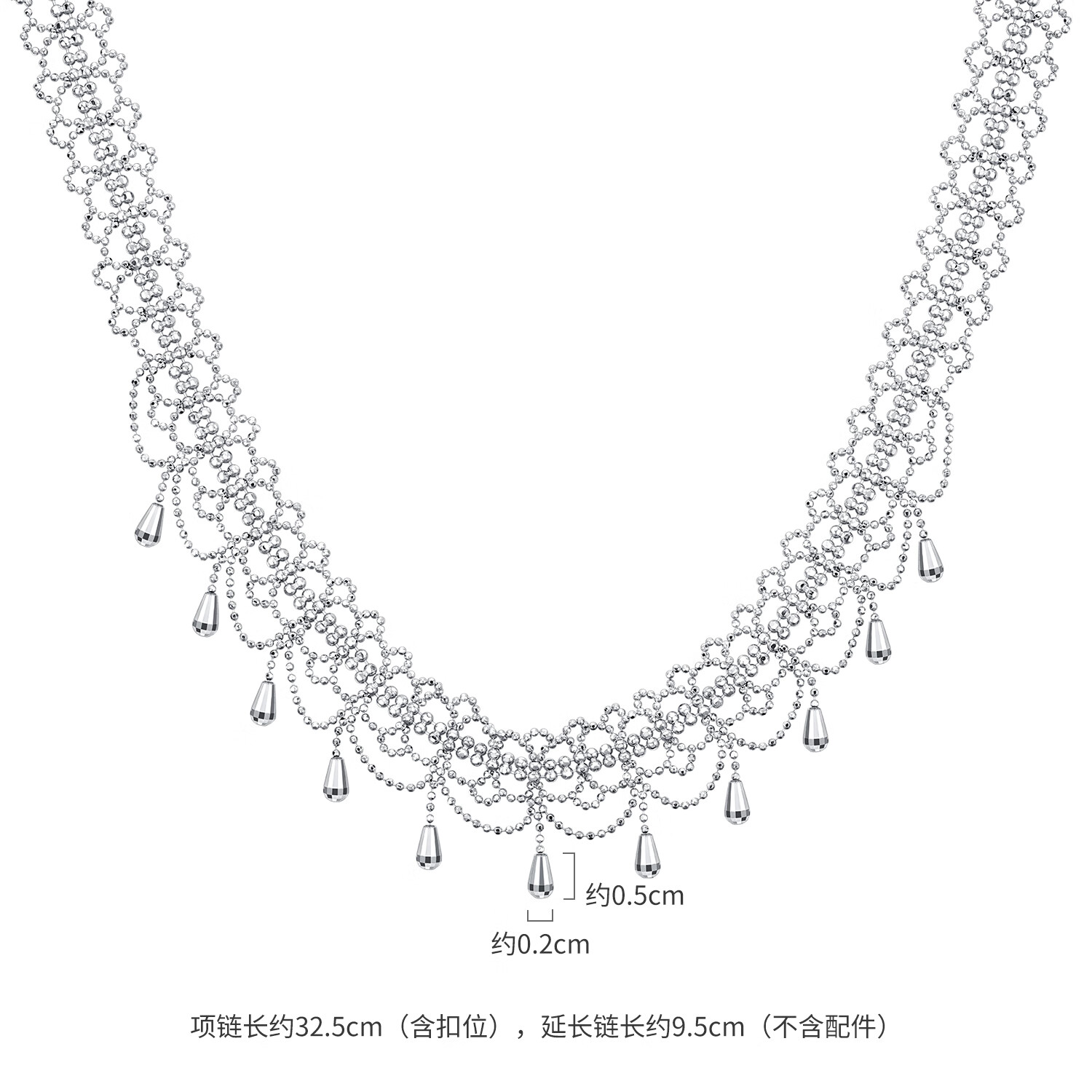 Lukfook Jewelry Platinum 950 Lace Droplet Choker Chain CNC Craft Platinum Necklace Set Chain for Gift Price GJP0017DS 22.11g (including labor cost 3339 yuan)
