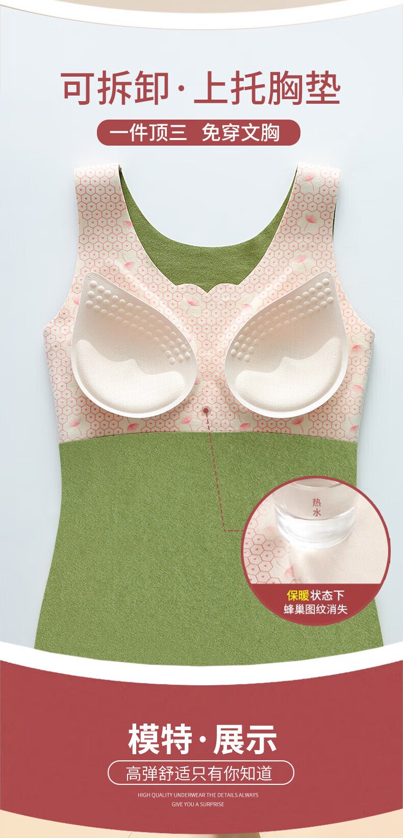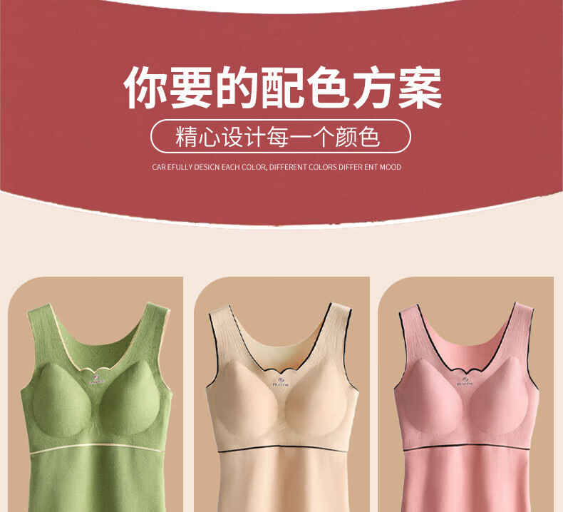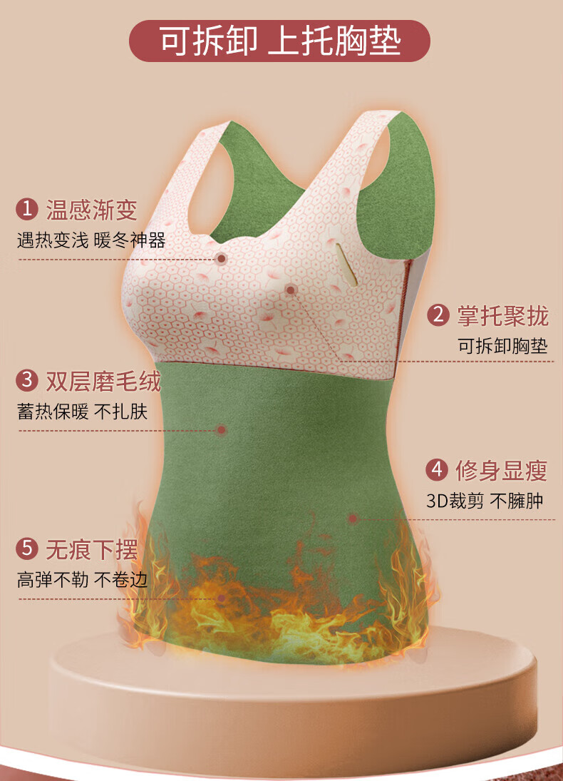 Kangzhi Mao Seamless Warm Vest Women's Velvet Thickened Plus Size Underwear All-in-One with Breast Pads for Bottoming Wear Winter German Velvet Apricot Wool + German Velvet Hair + No Wear Wear L 80-95Jin Jin is equal to 0.5 kg