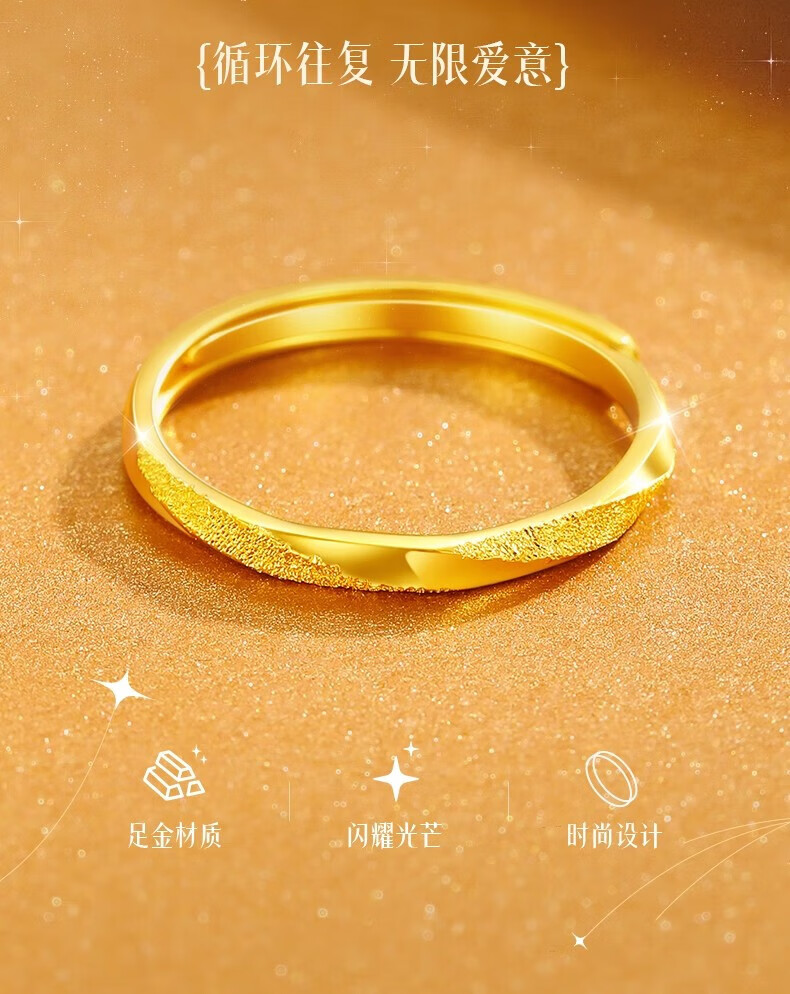 Chinese Jewelry Möbius Ring Gold Ring Women's 999 Pure Gold Open Ring Birthday Gift for Girlfriend and Wife Gold Weight Approximately 1.8g Pure Gold Ring