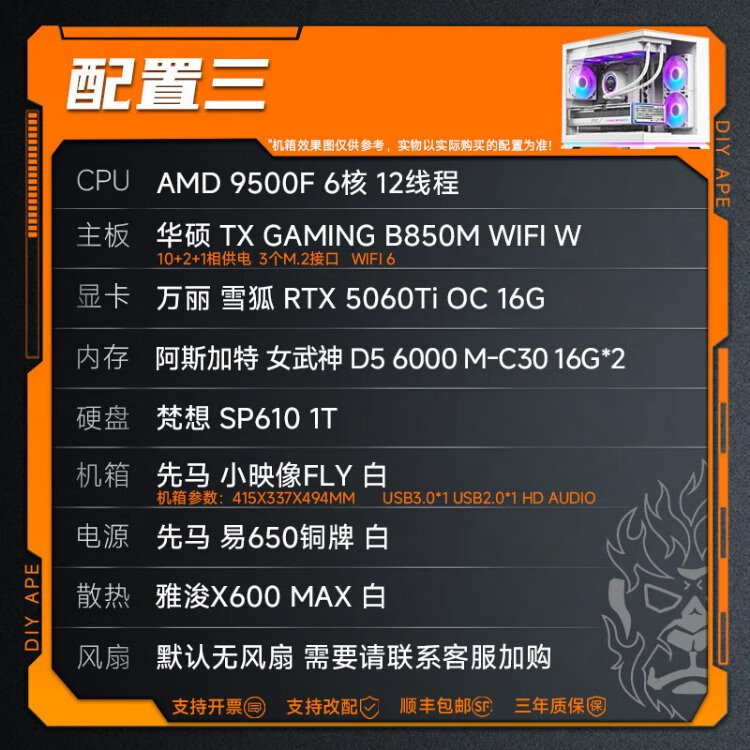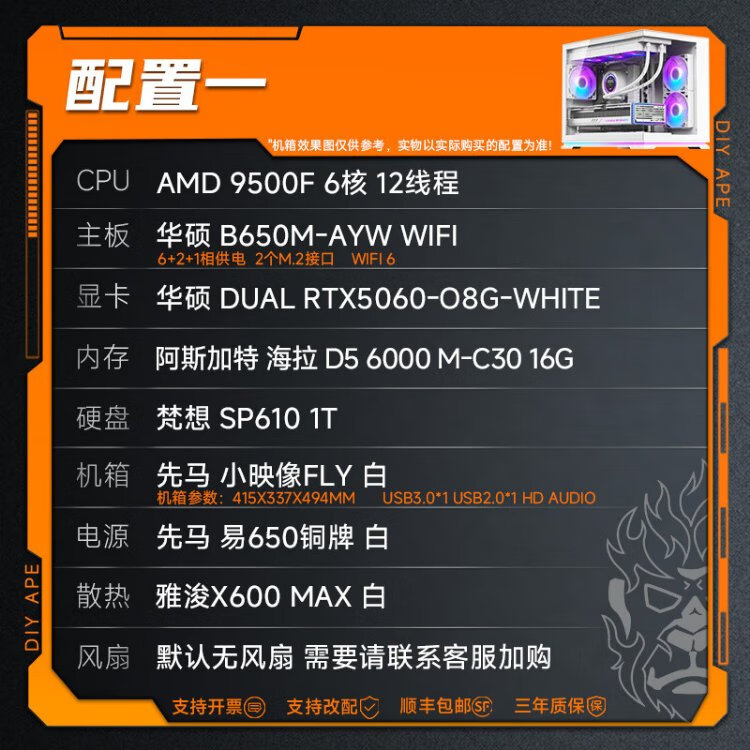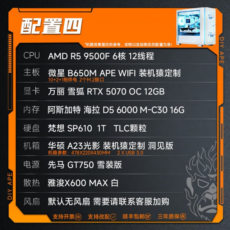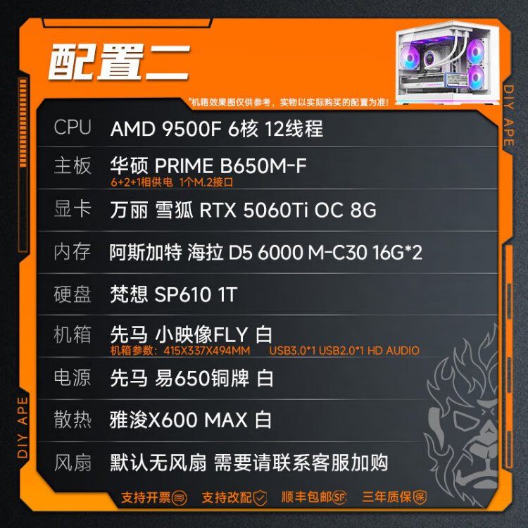 DIY APE ancient era installation ape 9500F host 5060/5070 graphics card Wanli Snow Fox Delta game e-sports live broadcast DIY complete machine design desktop assembly computer configuration one 9500F+RTX5060