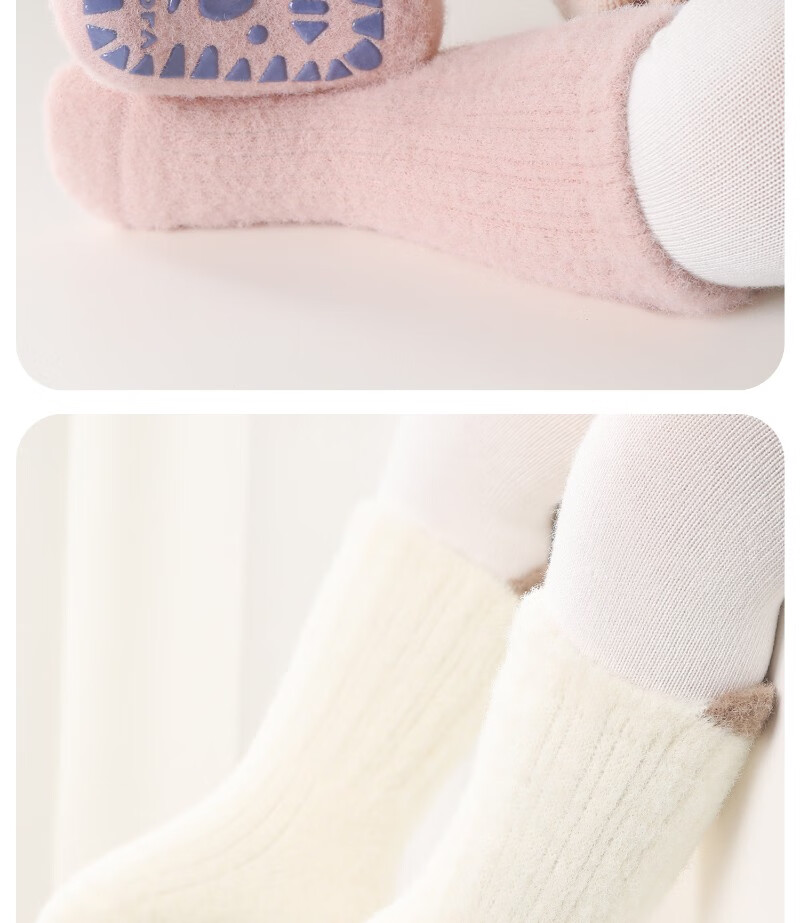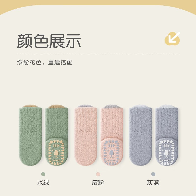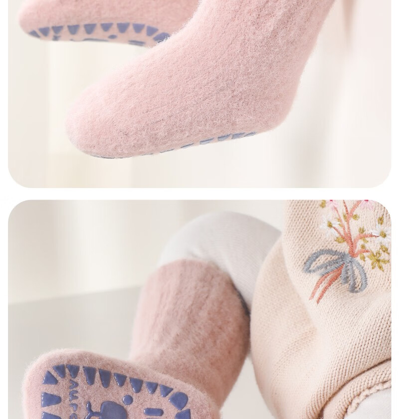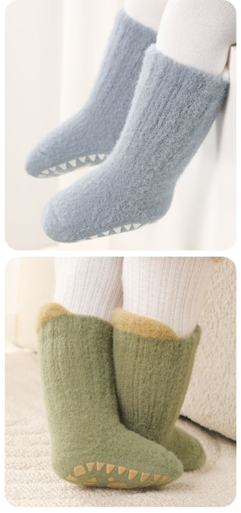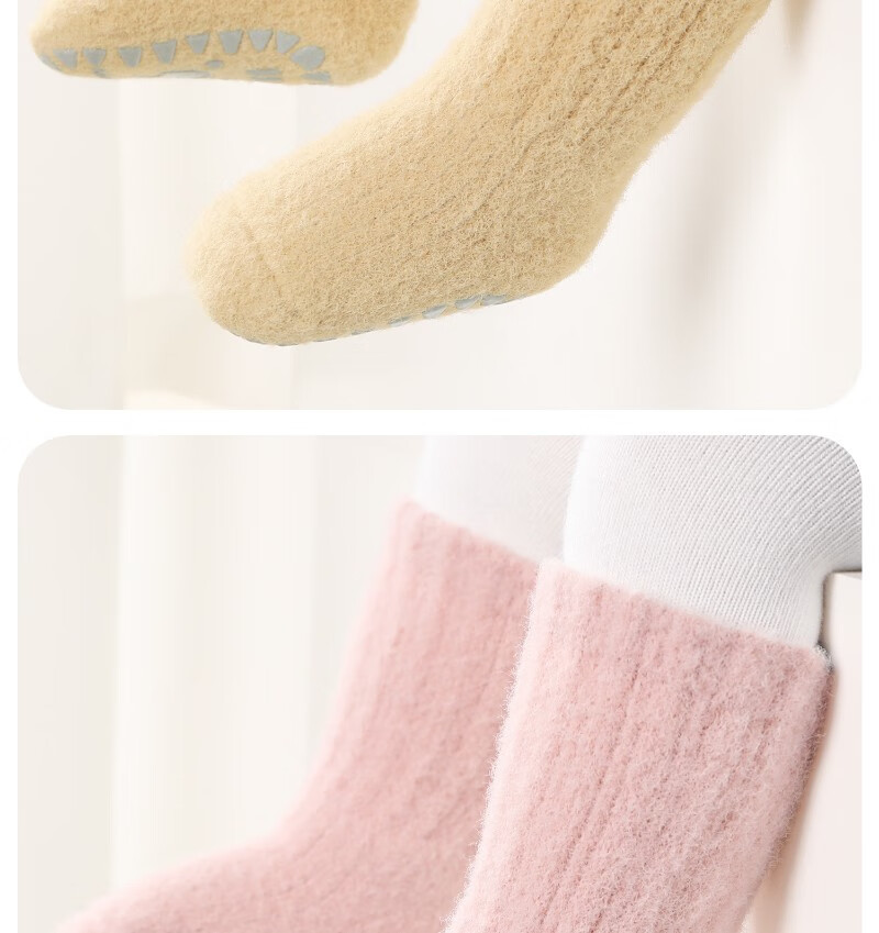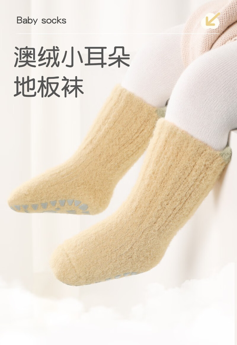 Autumn and winter velvet thickened baby floor socks solid color Australian velvet small ear mid-calf socks children's anti-slip glue socks MY2512 aqua 1 pair one size fits all L (suitable for 3-5 years old) recommended foot length 13-15cm