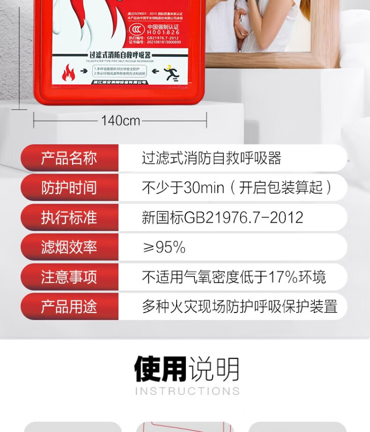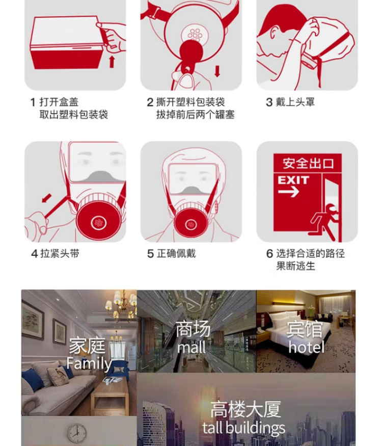 Fire mask anti-smoke mask anti-virus filter type fire self-rescue respirator escape TZL30