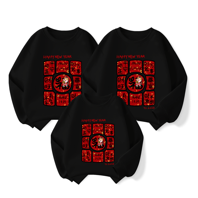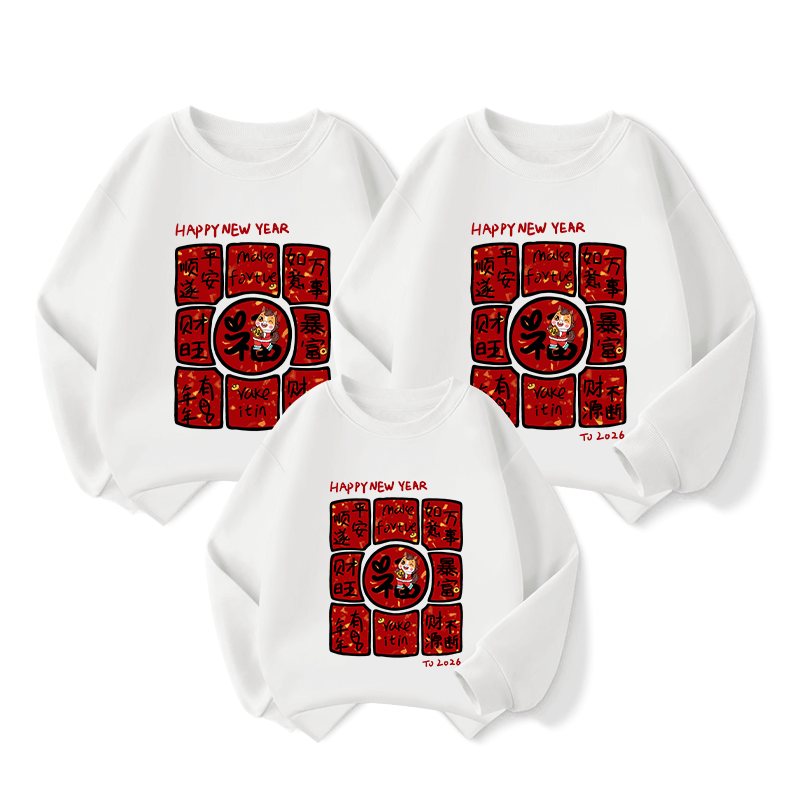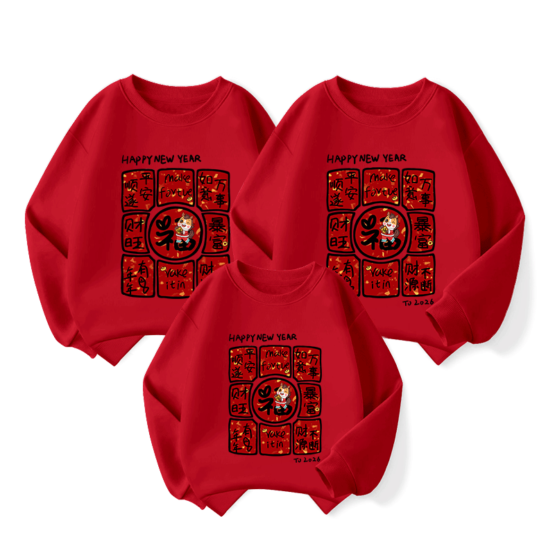 WASSUP WKENG red sweatshirt parent-child outfit for a family of three or four New Year's greetings clothes 2026 year of the horse and animal year clothes mother and daughter family outfit red spring and autumn 140 recommended 62-70Jin Jin equals 0.5 kg
