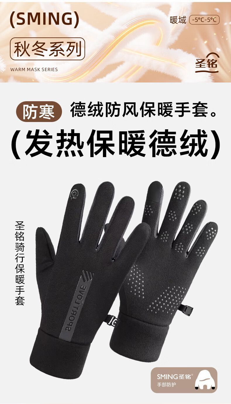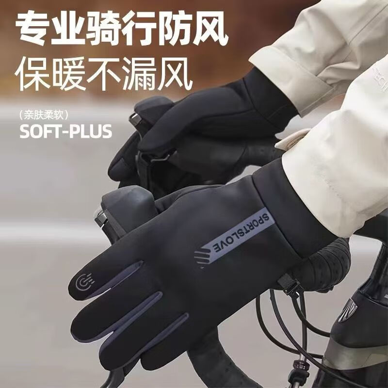 Gloves Fishing Gloves Autumn and Winter Windproof Plus Velvet Warm Touch Screen Waterproof and Coldproof Outdoor Electric Vehicle Cycling Gloves Vertical Label Style - Gray Pink One Size