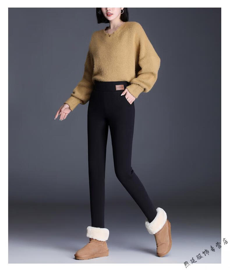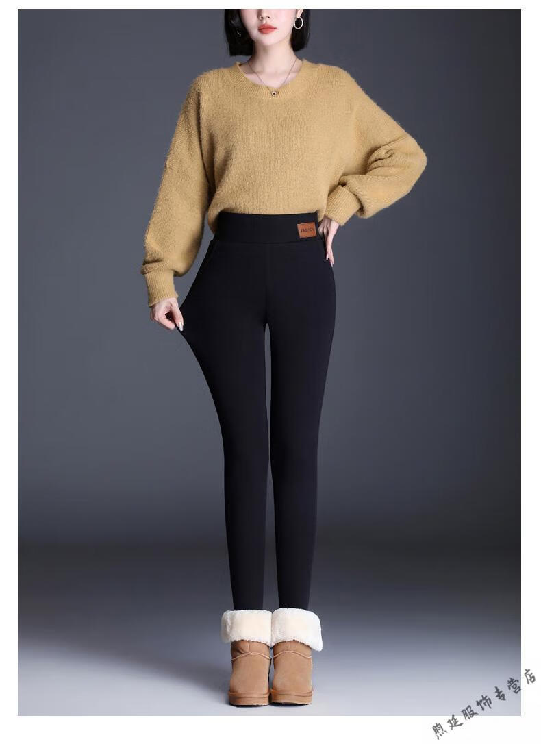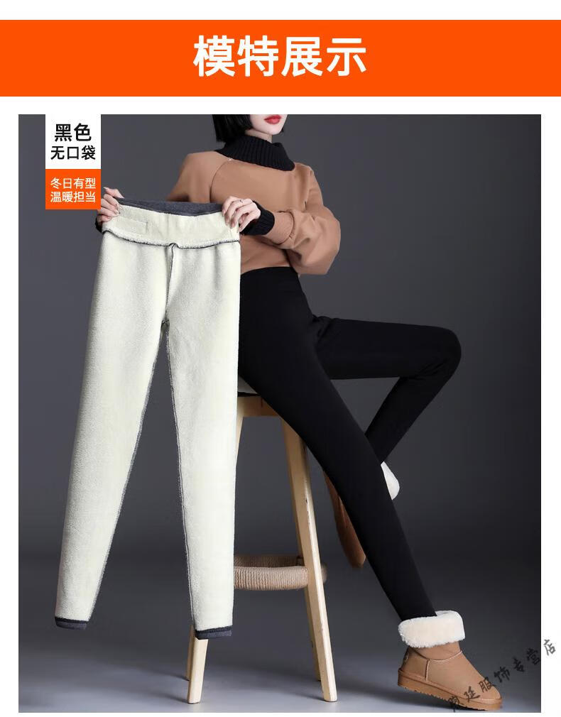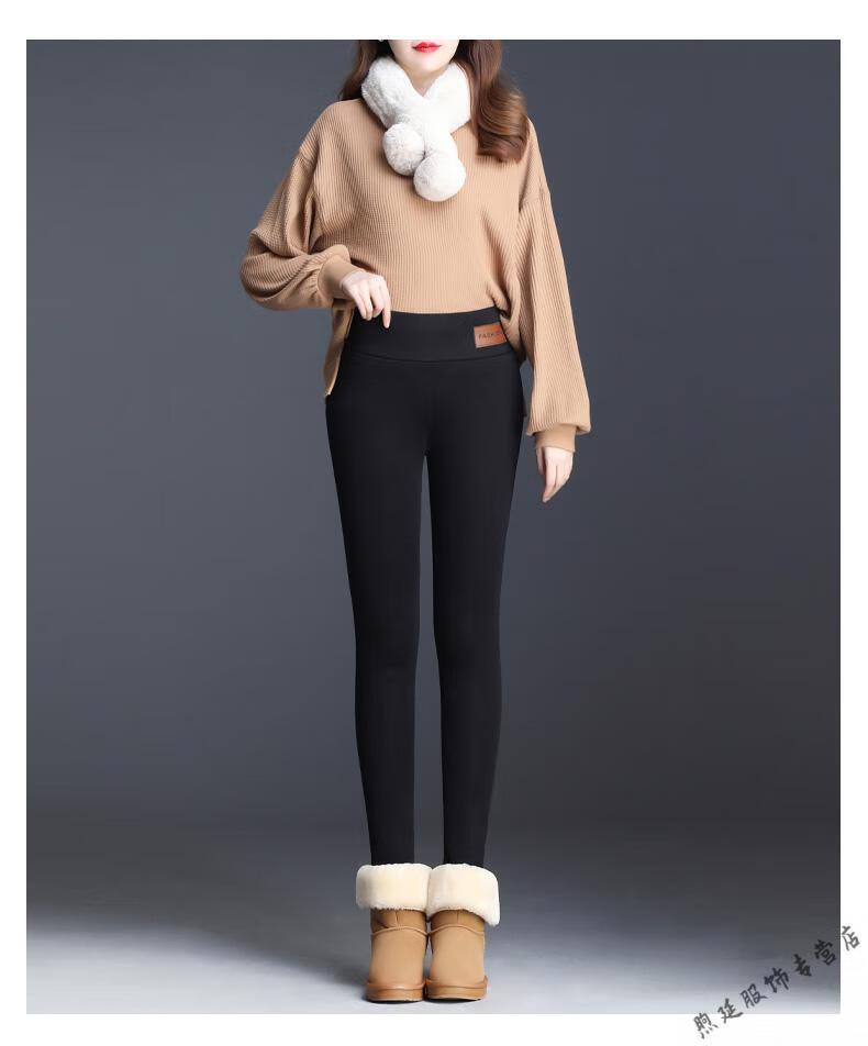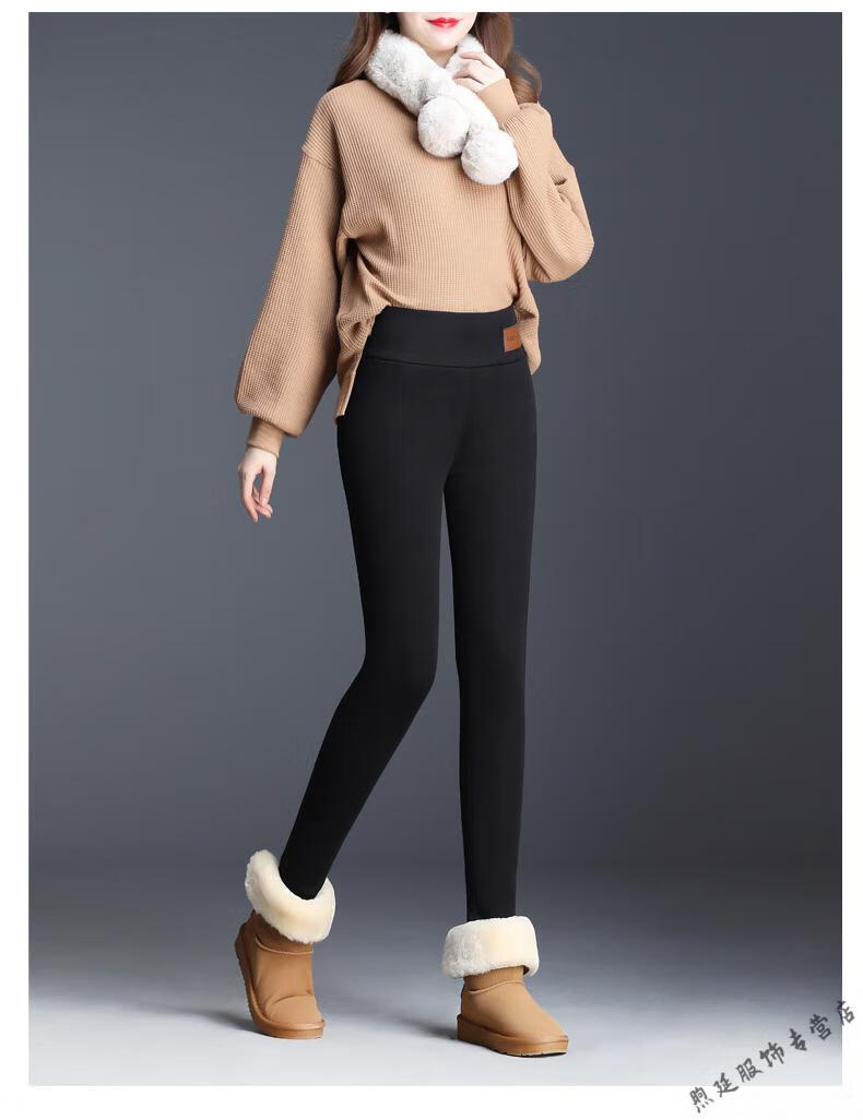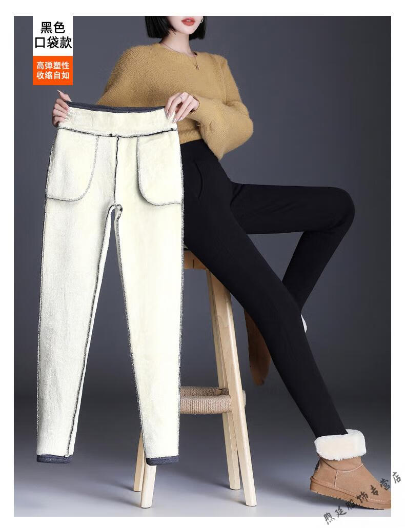 Woodpecker (TUCANO) extra thick sherpa pants for outer wear high-waisted plus velvet thickened leggings for women autumn and winter all-in-one black thermal pants and cotton pants black - thickened (no pockets) pants length 91CM S recommended weight 80-95Jin Jin is equal to 0.5 kg