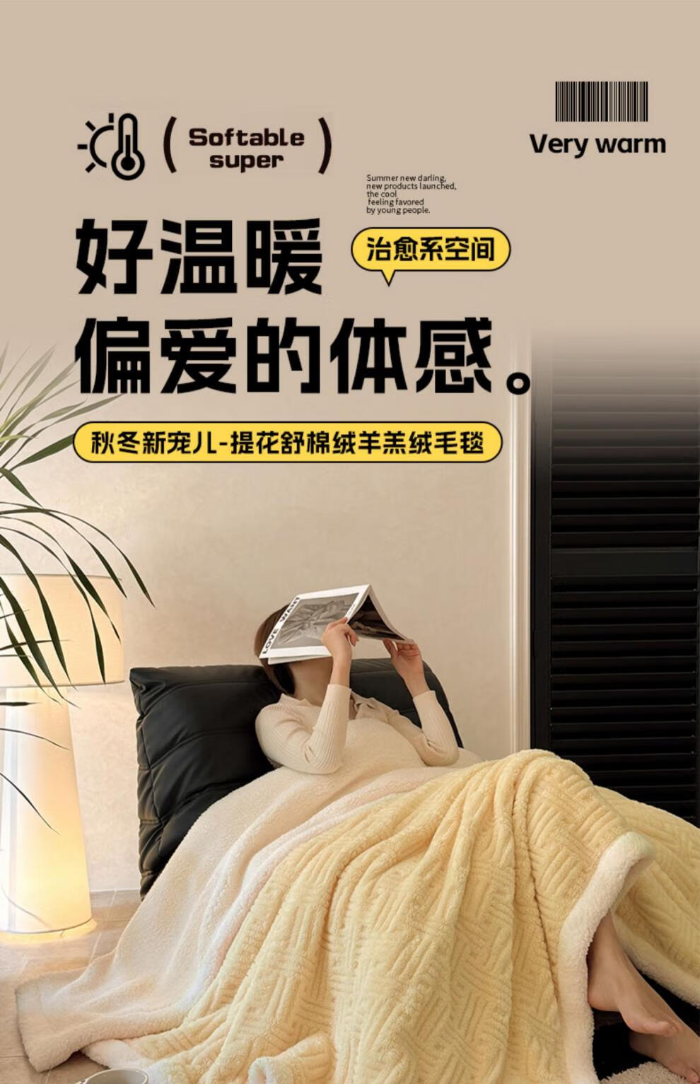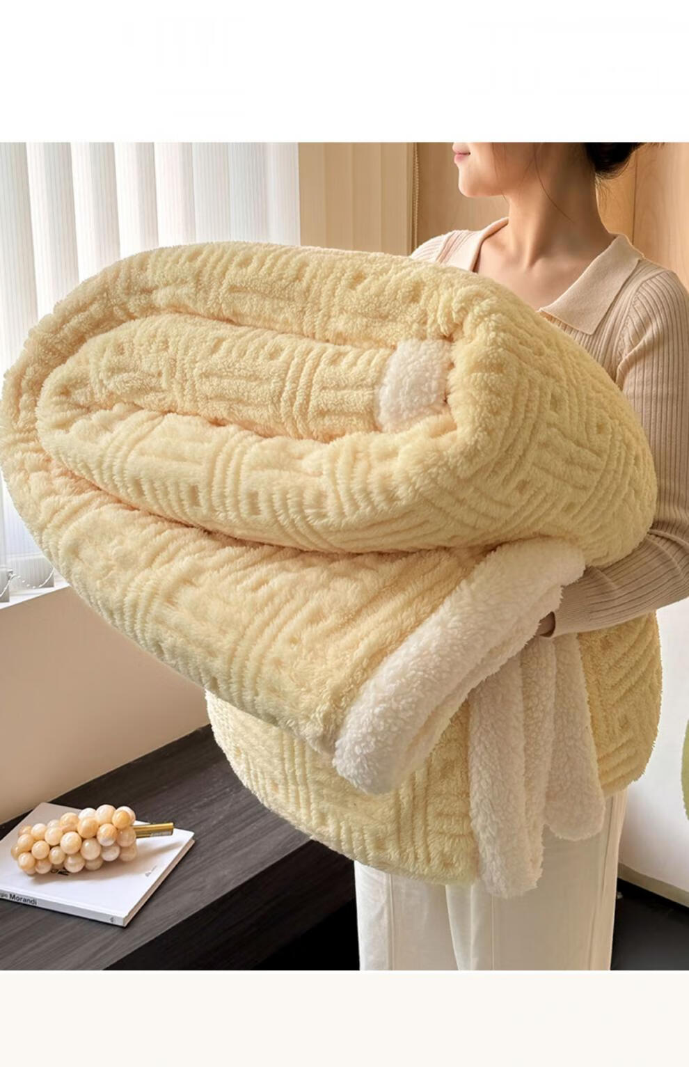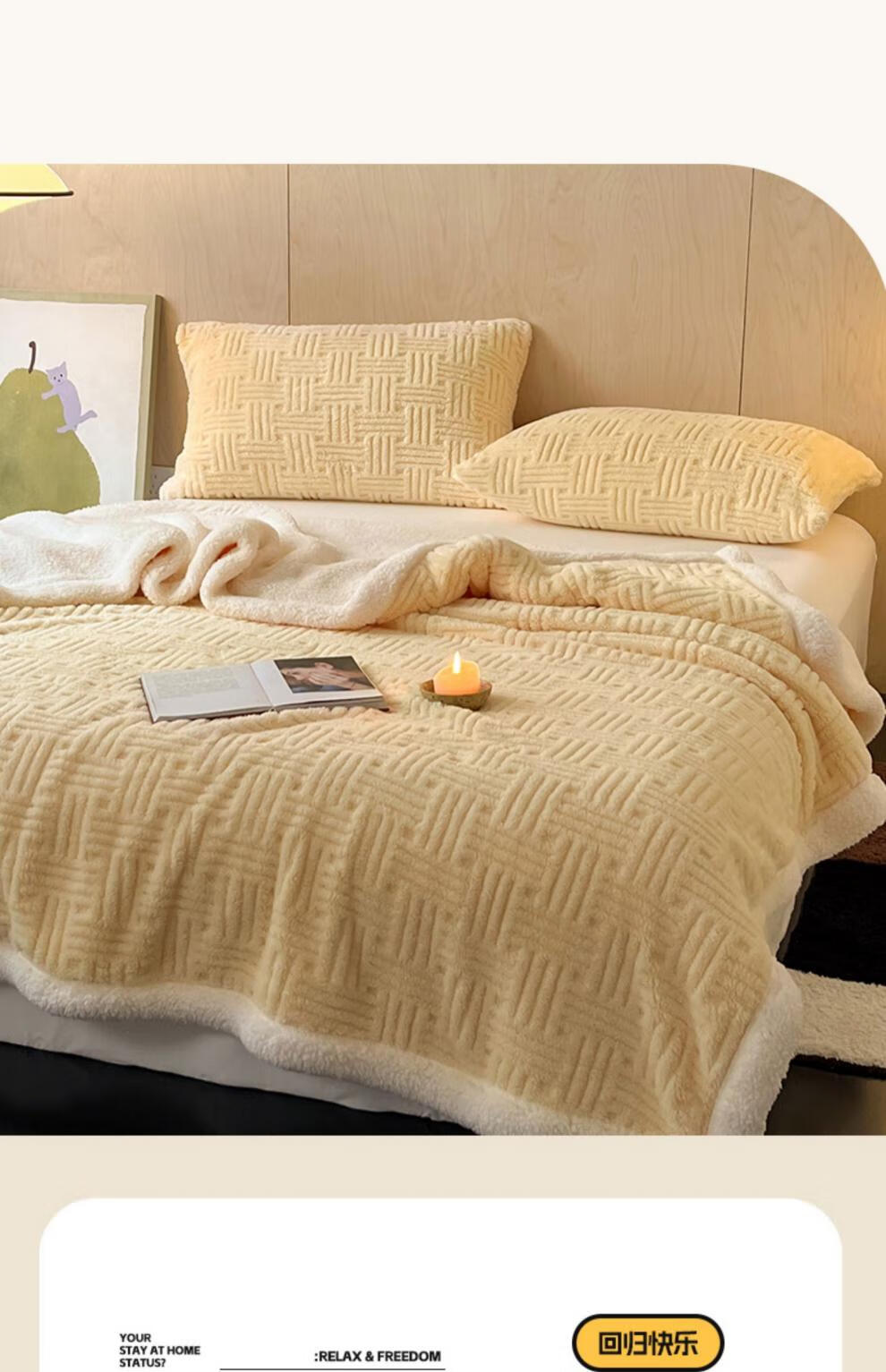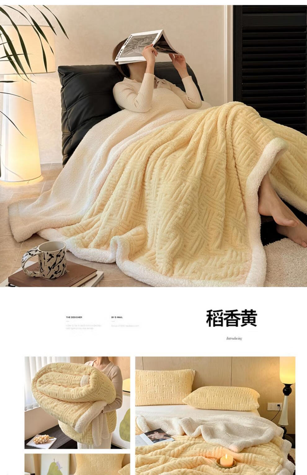 Yusenyi winter thickened lamb velvet blanket cover blanket milk velvet office nap coral velvet shawl sofa blanket small quilt rice fragrant yellow double layer thickened lamb velvet_super soft and waxy super warm 120x200cm children's blanket