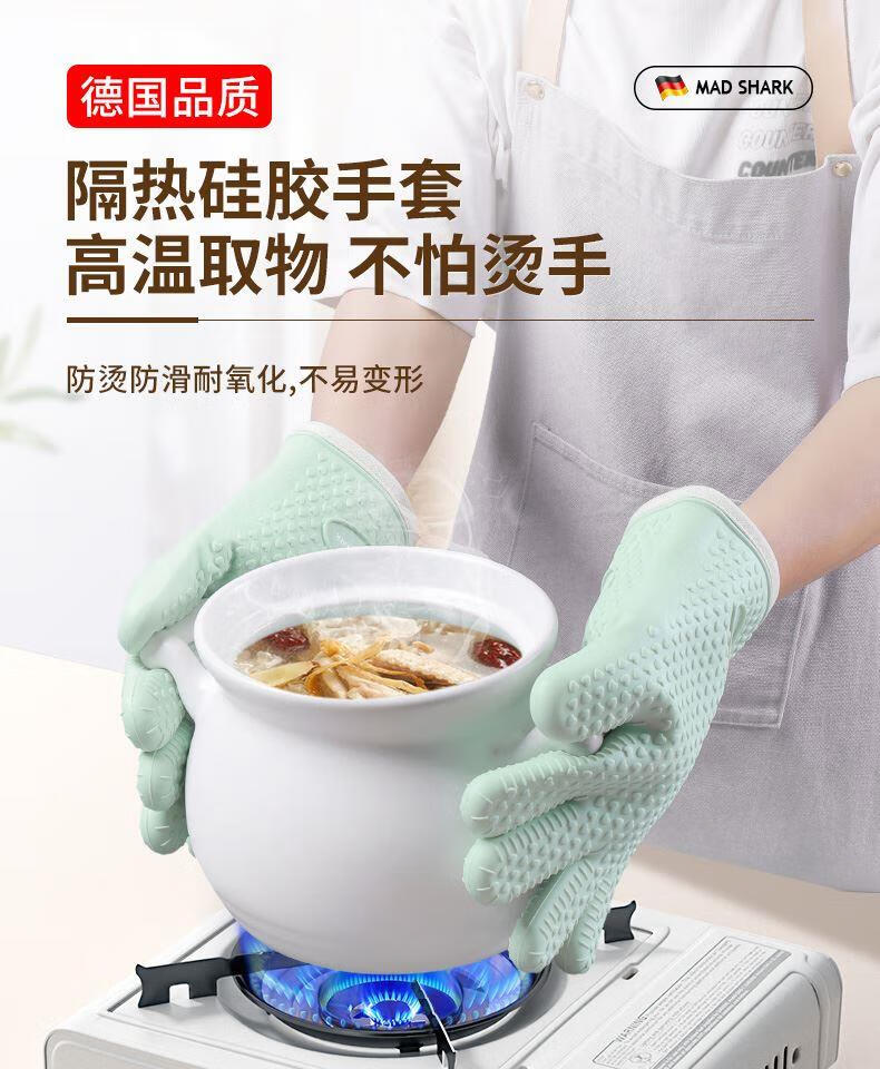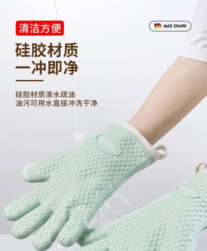 KINGXIAOJING German quality silicone heat-insulating anti-scalding gloves for kitchen, microwave, baking and oven, high temperature resistant, thickened and non-slip, spruce green, 2 pack, lightweight, flexible, unisex