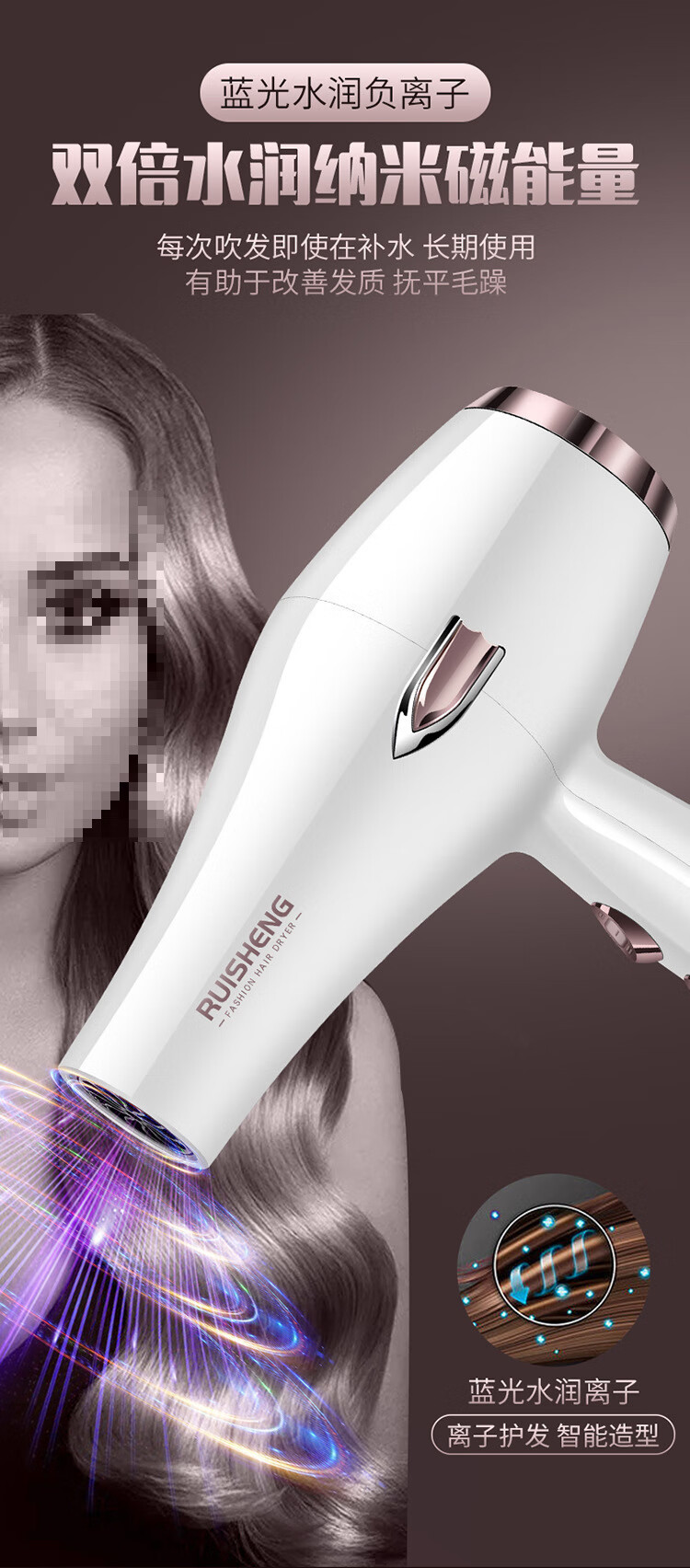 Philips (PHILPS) same German quality personal care home appliance hair dryer high power household strong air hot and cold air blue light negative ion hair dryer fashion white 35000 strong air free three plus manicure quick drying styling quality assurance