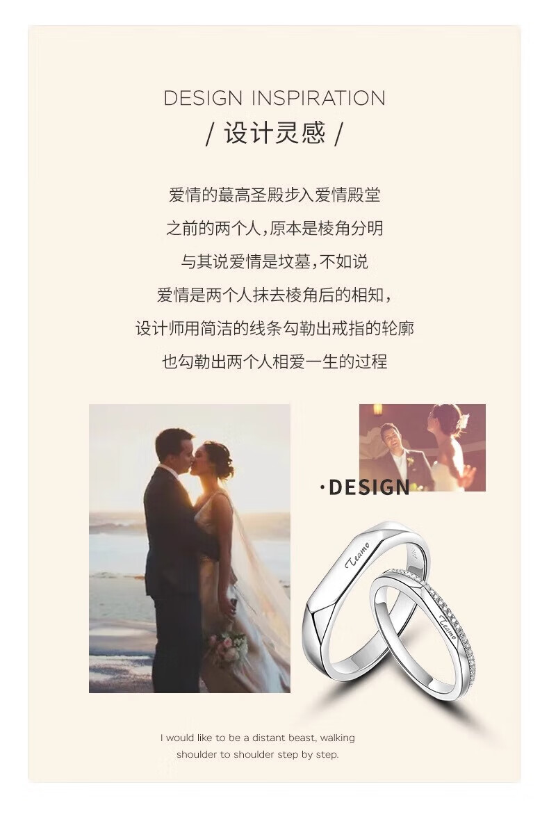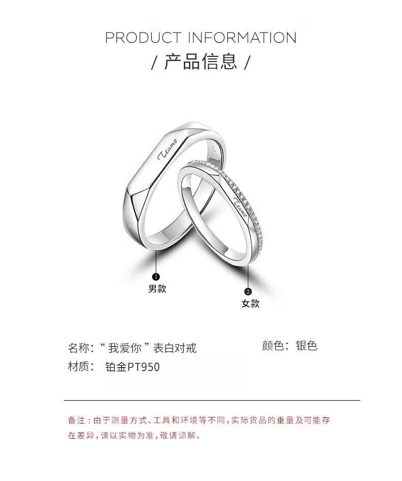 Ji Sifan's light luxury platinum couple ring, fashion jewelry, proposal and confession, high-end Valentine's Day birthday gift for wife and girlfriend, lifelong love, platinum ring, live design, custom engraving