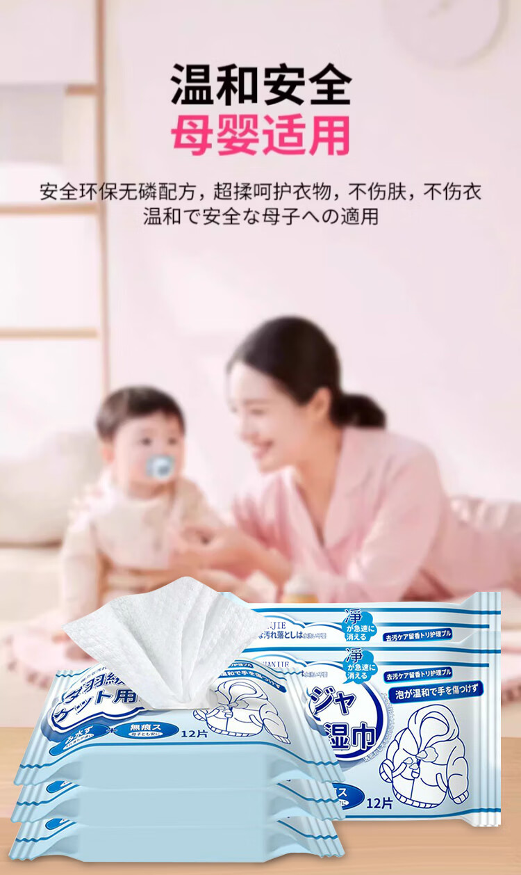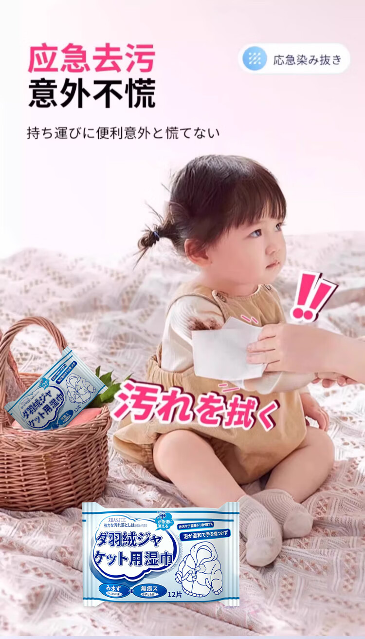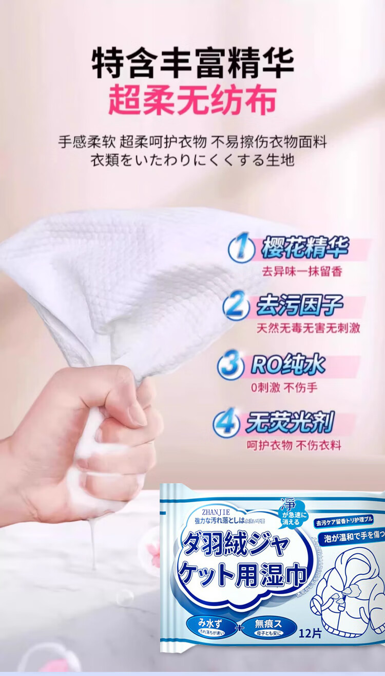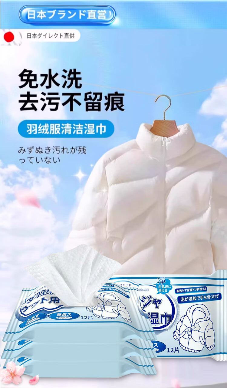 ZHANJIE Japan imported down jacket cleaning wipes clothing stain-free washable powerful oil stain artifact cleaning and drying agent 5 packs Japan imported down jacket cleaning wipes